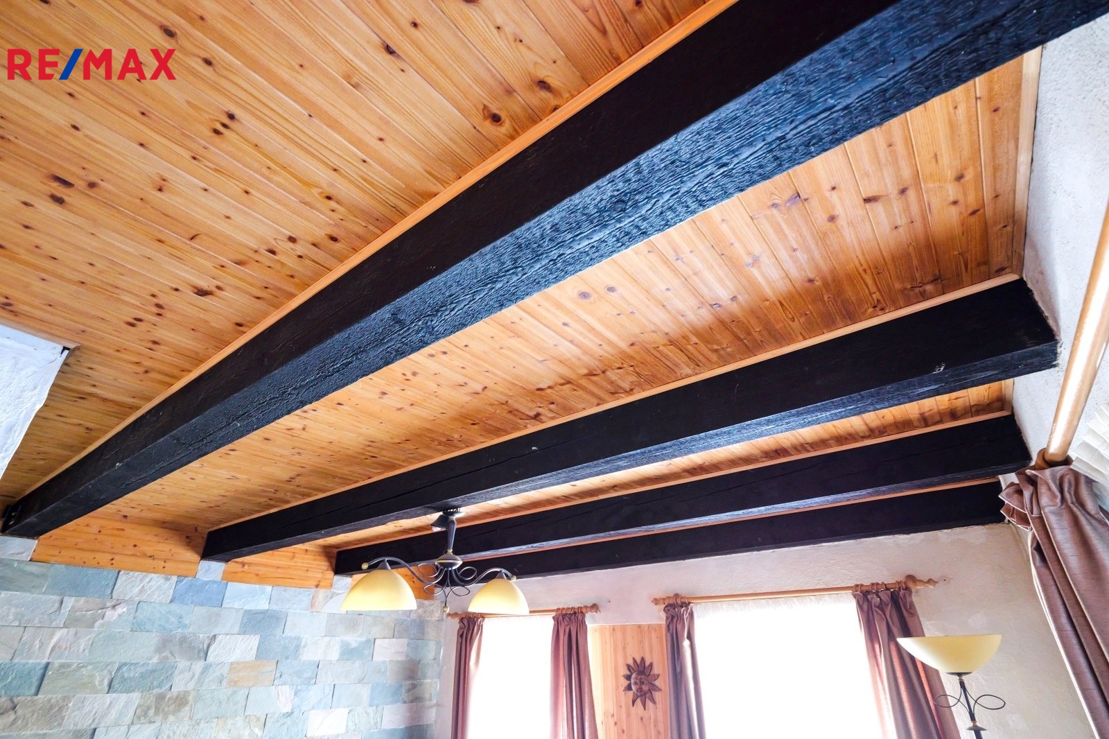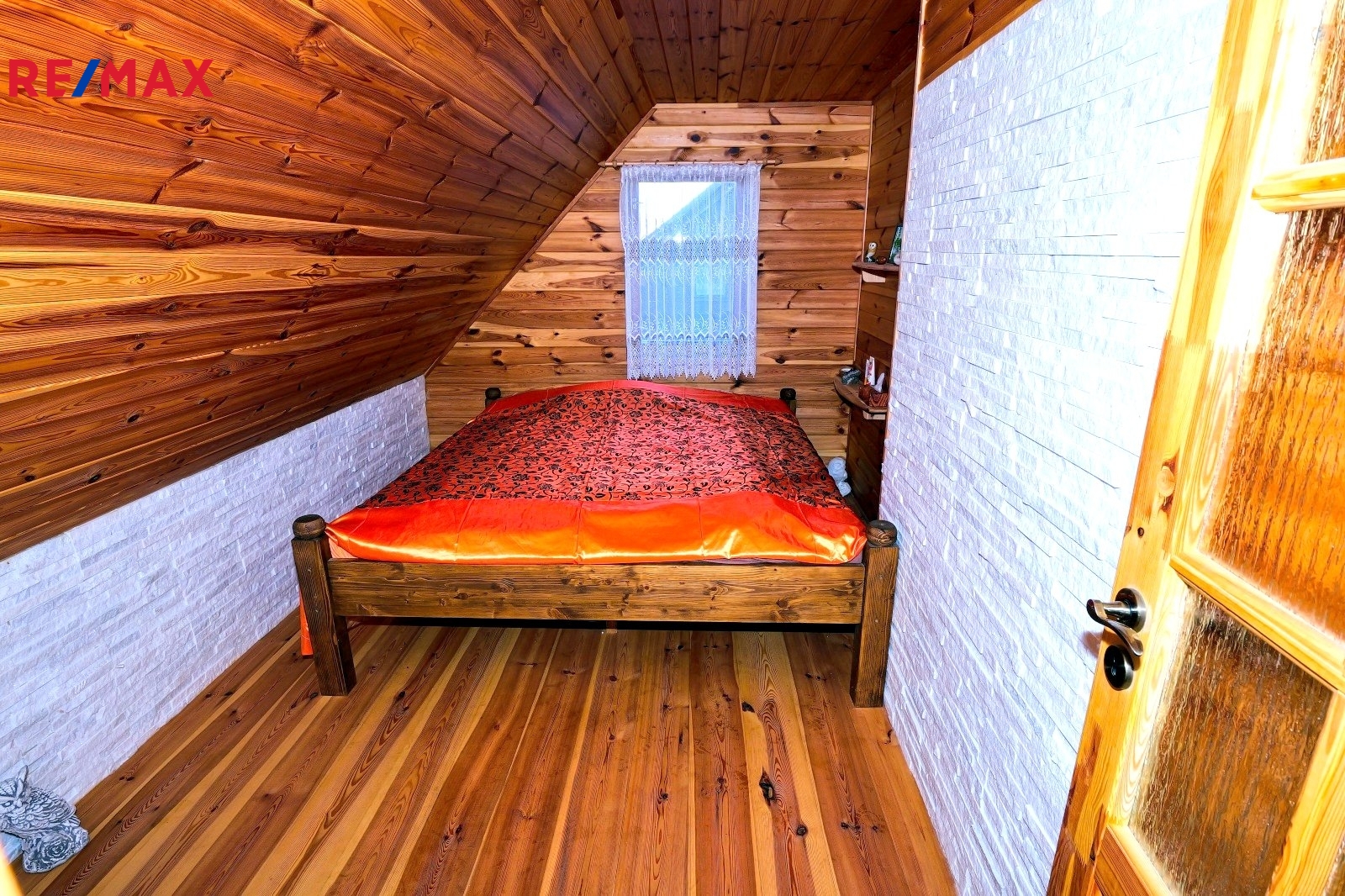 Podkroví zaujme výrazným dřevěným obložením stěn nebo luxusním kameným obložením komínového průchodu a má celkově velmi příjemnou atmosféru.