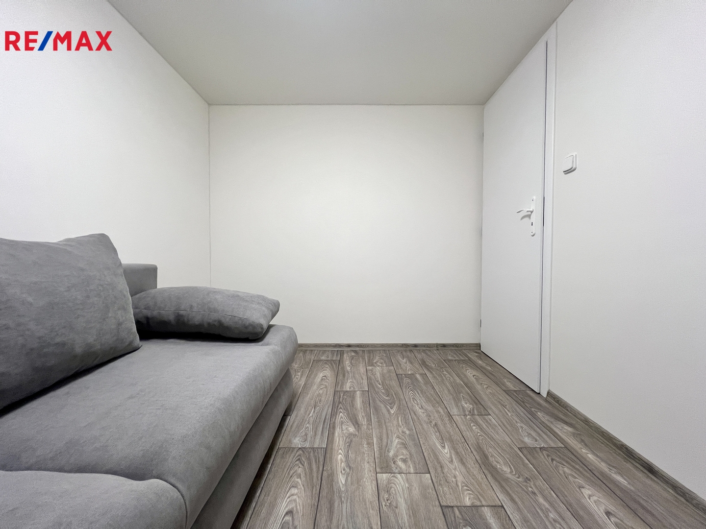 Obytný prostor je členěný na obývací pokoj s kuchyňským koutem, ložnici, pokoj a koupelnu.