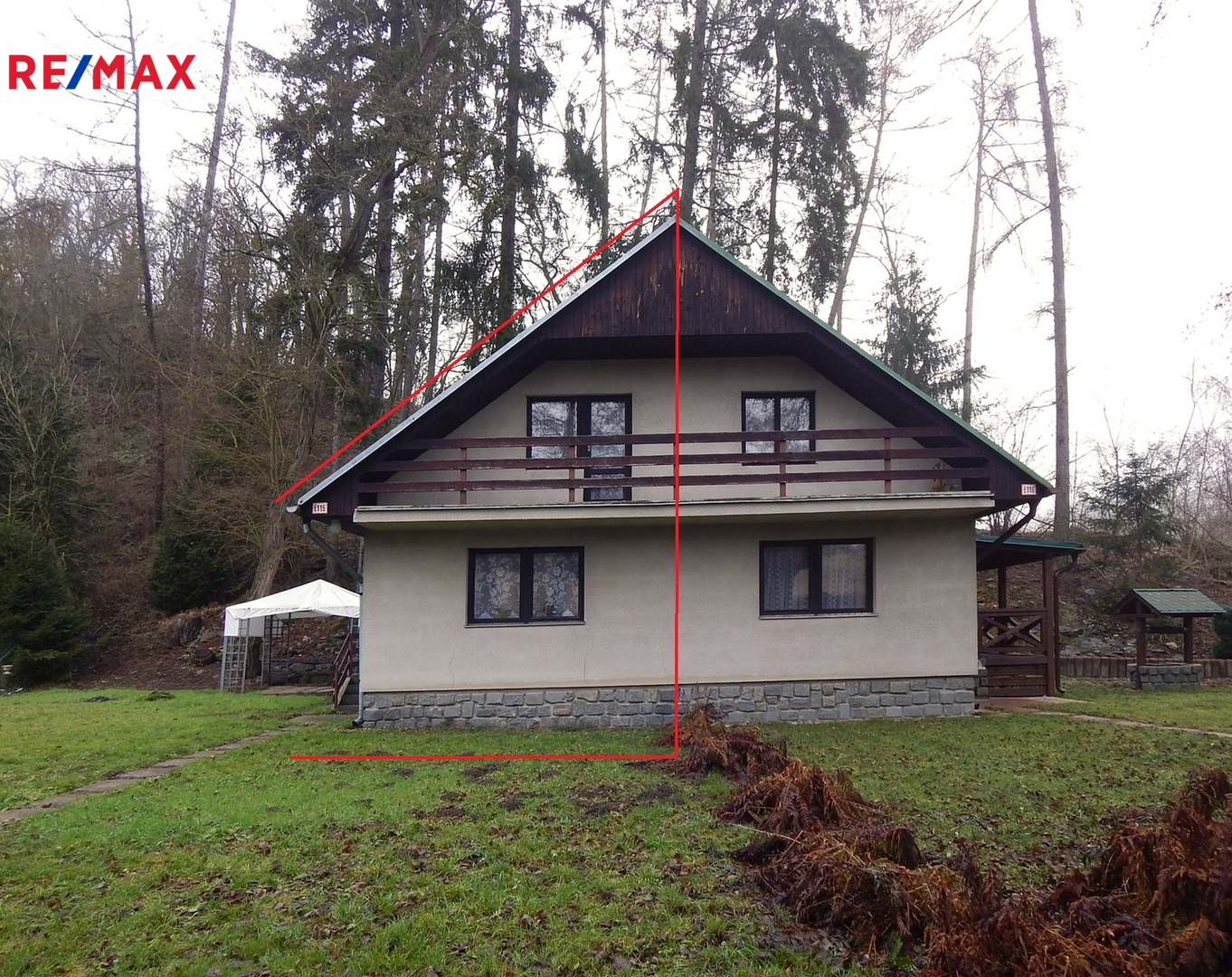 Nabízíme k prodeji chatu se zastavěnou plochou 44 m2, která se nachází v malé chatové osadě u rybníka Vožehák, přímo u lesa pod zříceninou hradu Angerbach. Chata je postavená v 80tých letech na vyšší betonové podezdívce, z bílých plynosilikátů, okna i dveře dřevěná, dvě skla. Na střeše je plechová krytina, je vytápěna krbem a Petry v kuchyni. V přízemí je kuchyň, pokoj, spíž a v podkroví dva malé pokojíky a balkon. S vedlejší chatou je společná zeď a balkon. Za chatou je přistavěná kolna a je zde také vchod na záchod, který se spláchne kýblem. Jímku majitelé vyváželi cca jednou za 10 let. Chata je udržovaná, stav velmi pěkný, možné ihned užívat.