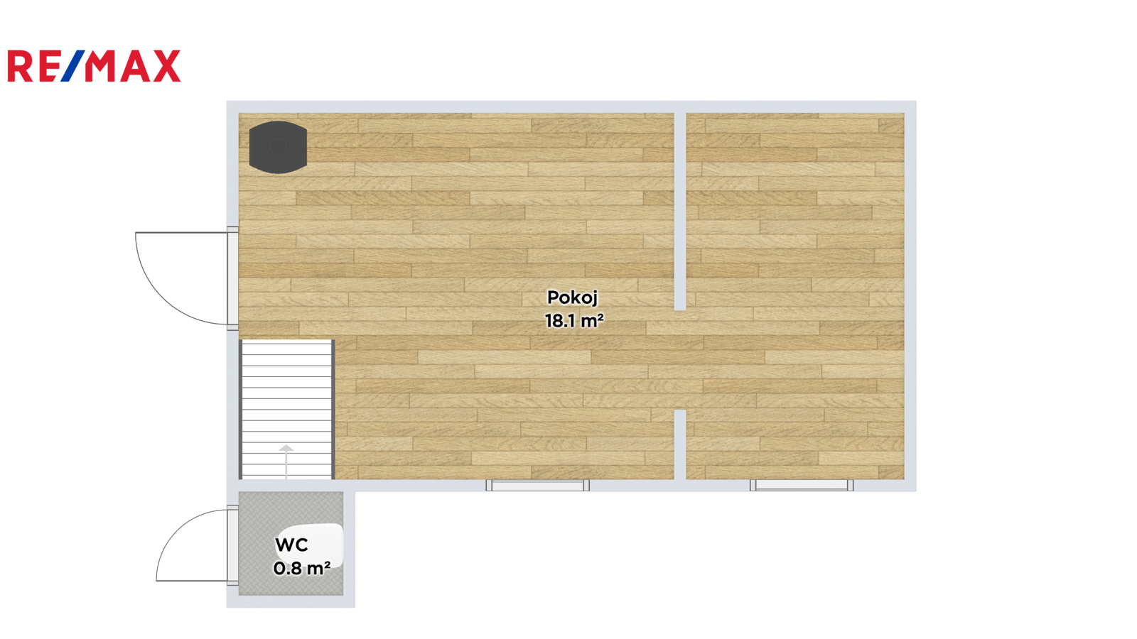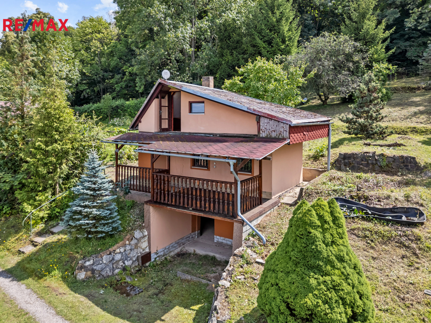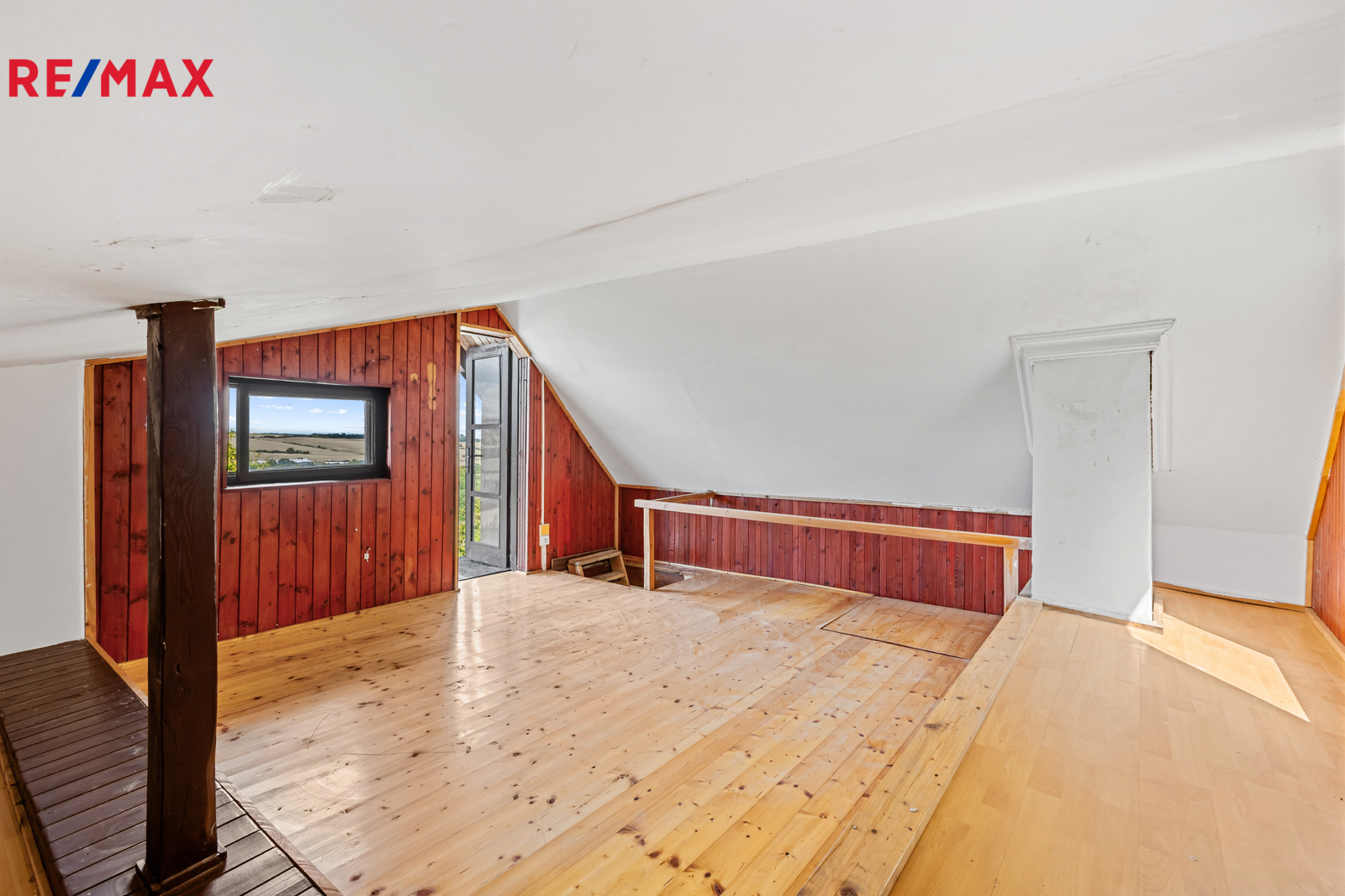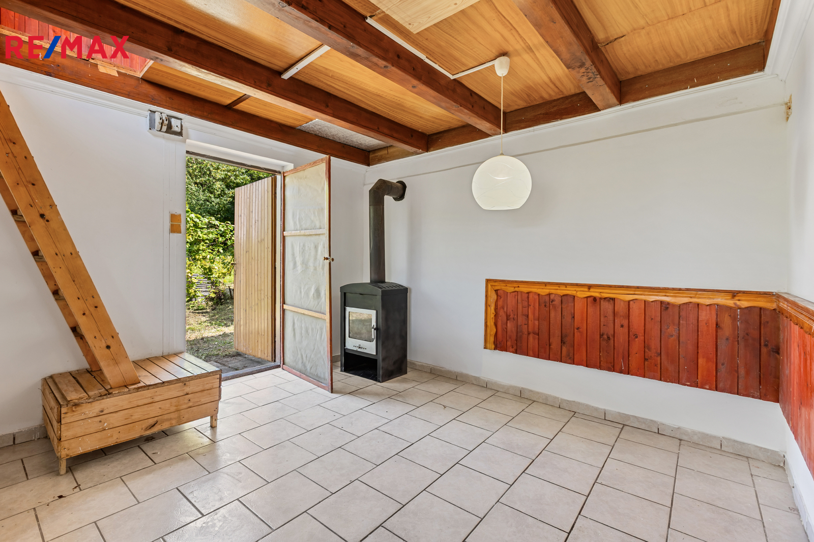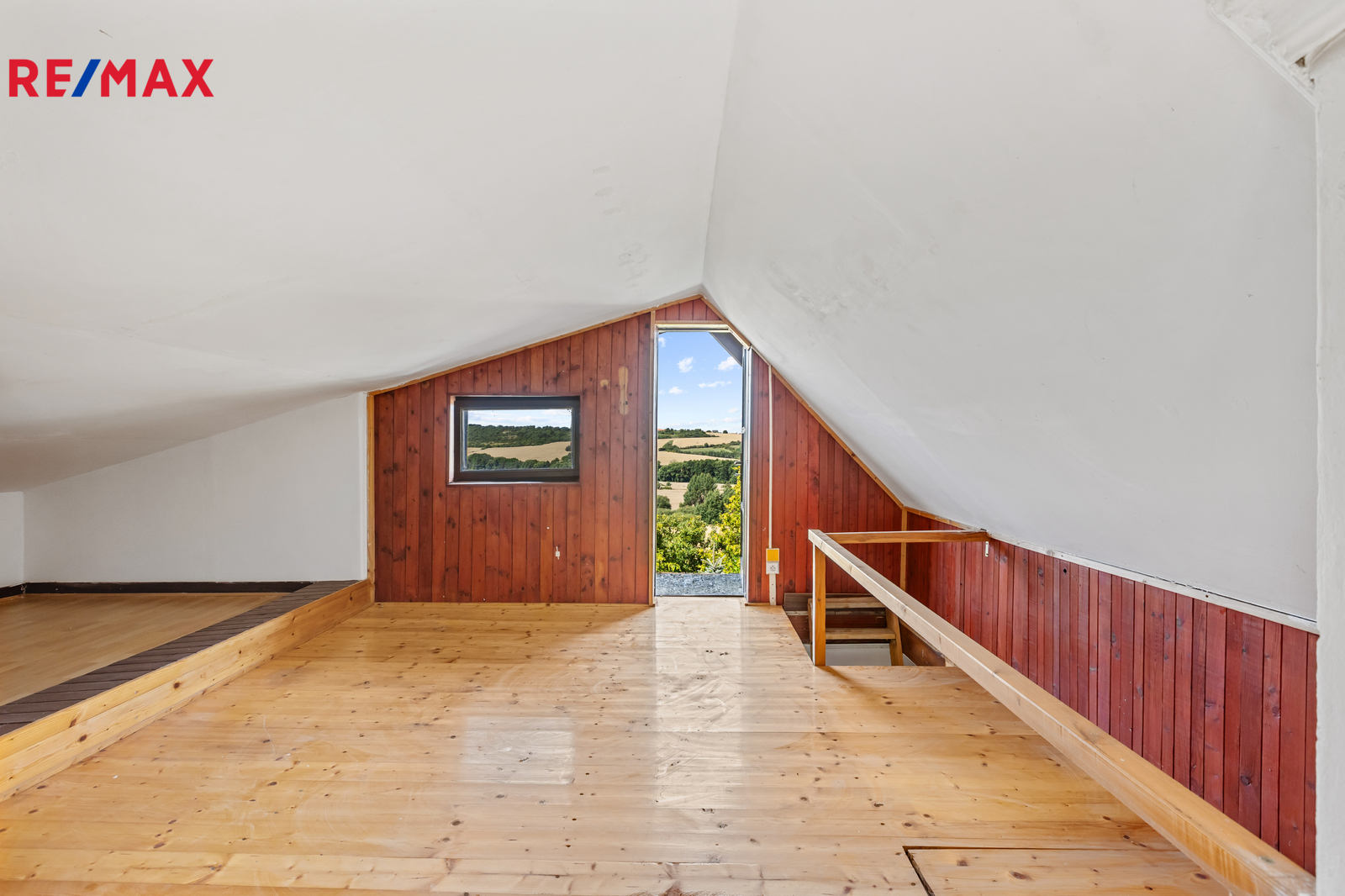 V přízemí se nacházejí dvě místnosti – jednu z nich lze ideálně upravit na plnohodnotnou kuchyň, druhá slouží jako obytný prostor. V podkroví je další pokoj s přímým vstupem na menší otevřenou plošinu, odkud se nabízí krásný výhled na okolní krajinu.
