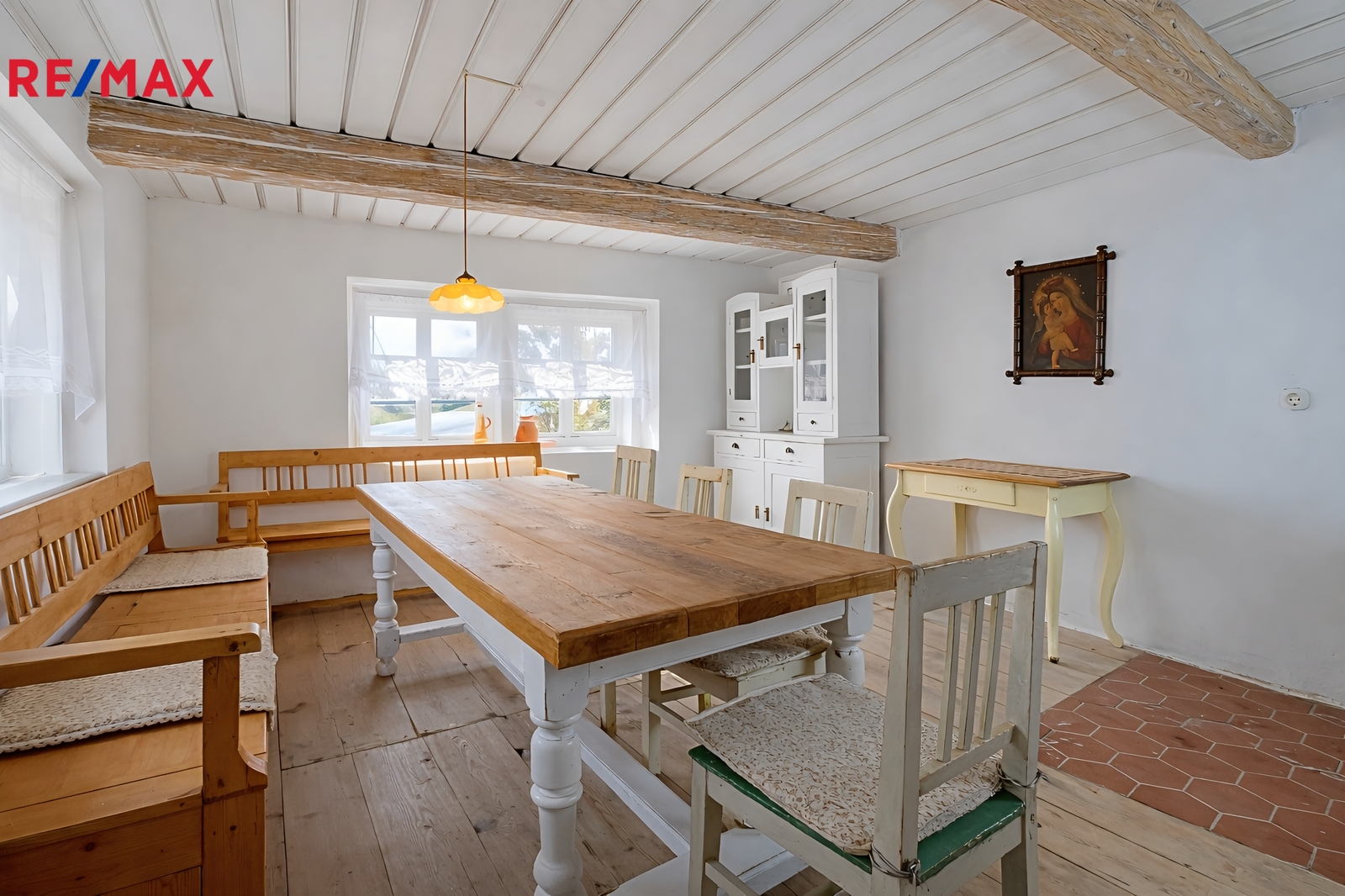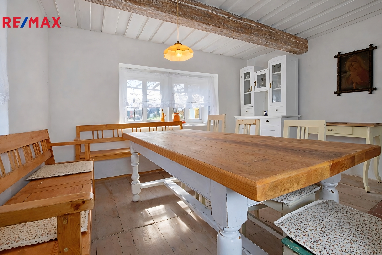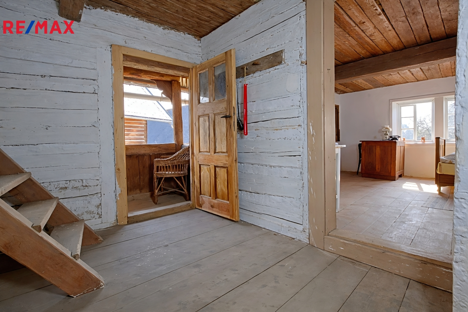 Chalupa si zachovala řadu původních architektonických prvků, které podtrhují její autentický charakter, včetně vzácně dochované původní černé pece. Současná dispozice domu nabízí světnici, koupelnu s toaletou a ložnici v patře. V podkroví se nachází další místnost, která vyžaduje částečnou rekonstrukci. Z půdního prostoru je navíc možné vybudovat další dva pokoje, což poskytuje potenciál pro rozšíření obytné části.
