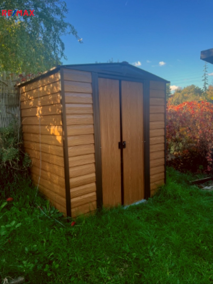Dále zde najdete zahradní domek pro uložení nářadí a vybavení.