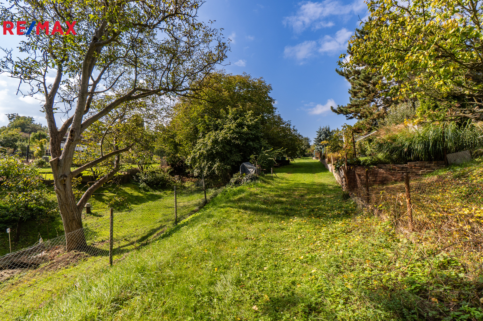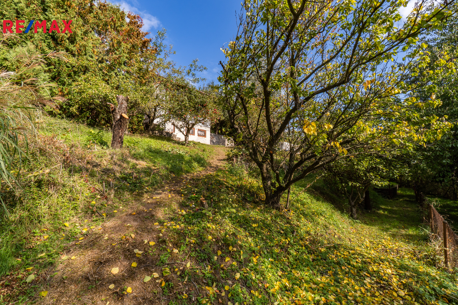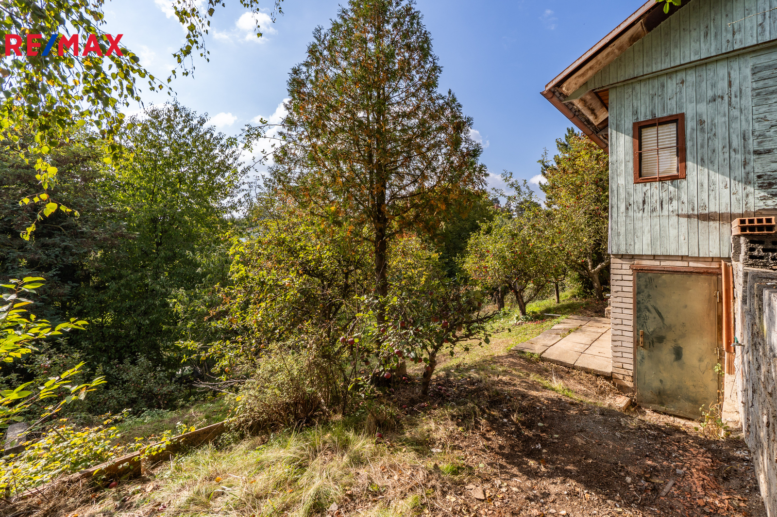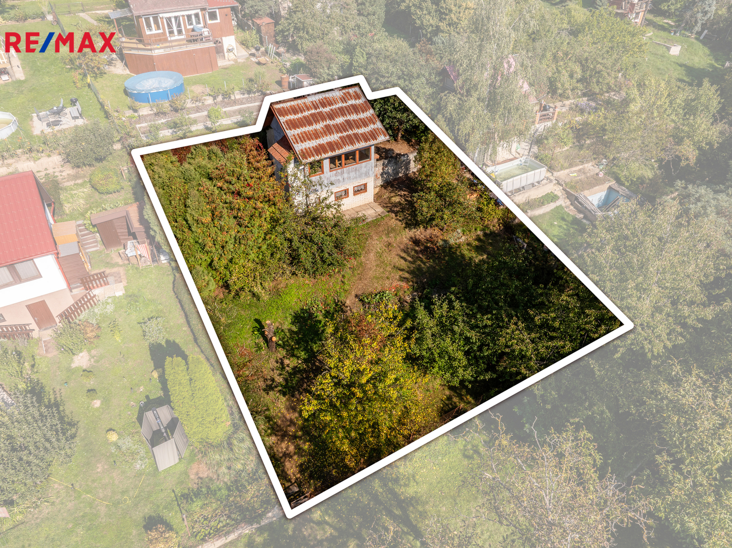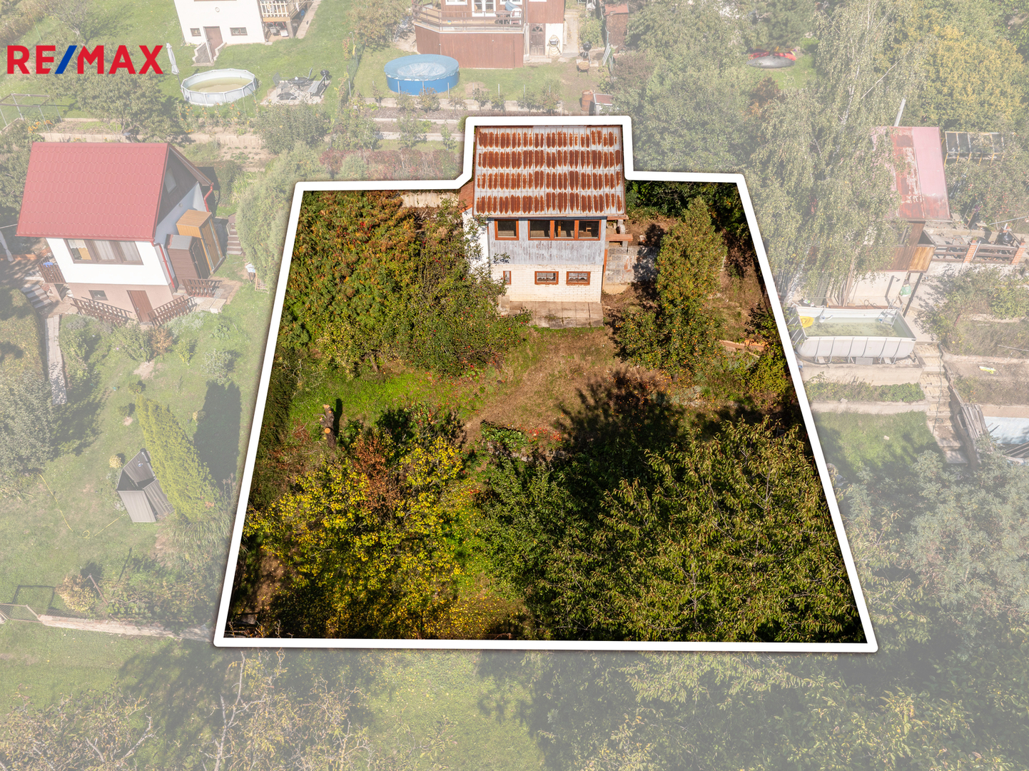 Chata se nachází na pronajatém pozemku o výměře 342 m². Pozemek je svažitý, osázený ovocnými stromy. U chaty je zpevněná rovinatá plocha pro posezení. Možný příjezd autem k pozemku po nezpevněné komunikaci, k dispozici je také parkovací plocha u vjezdu do zahrádkářské osady.