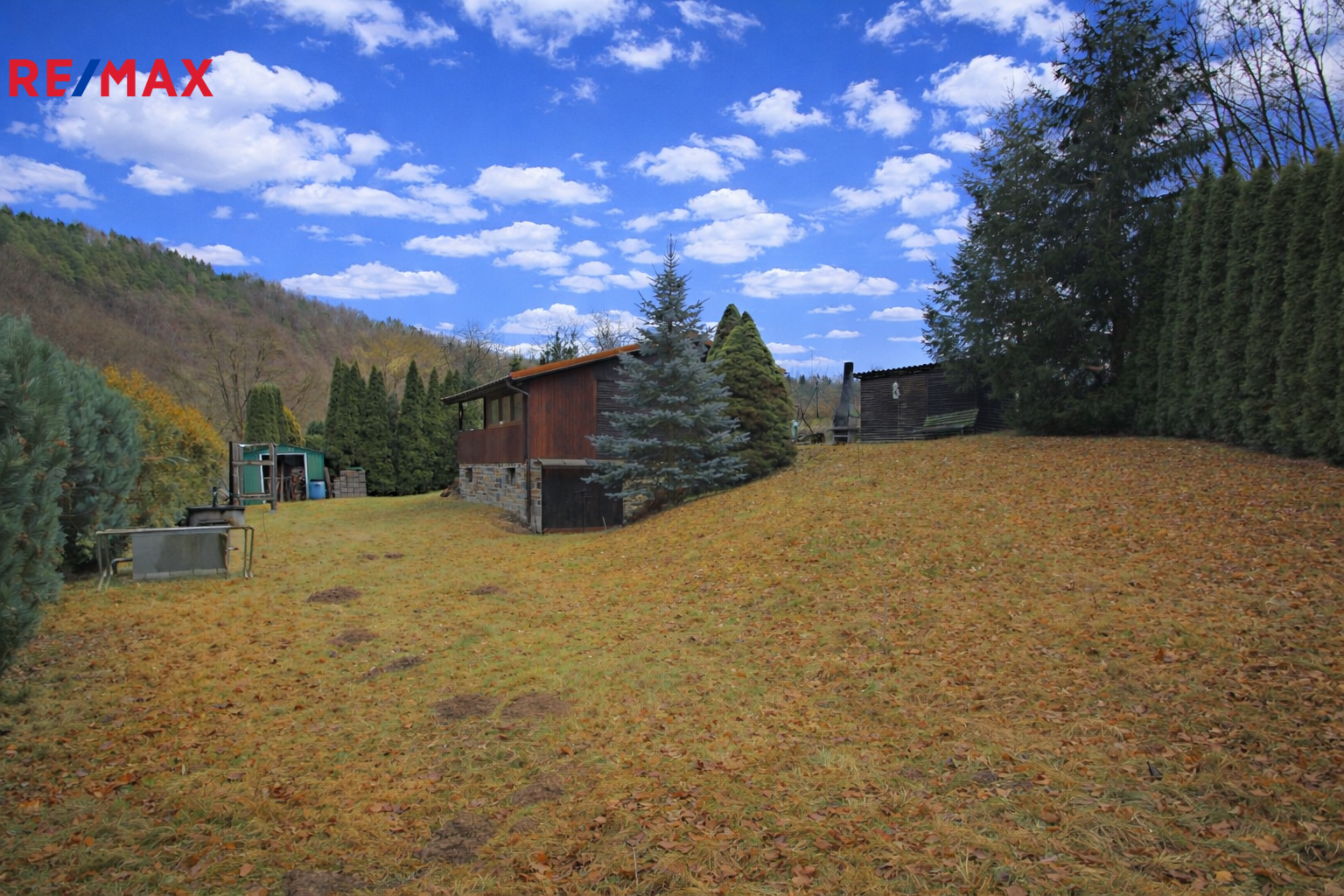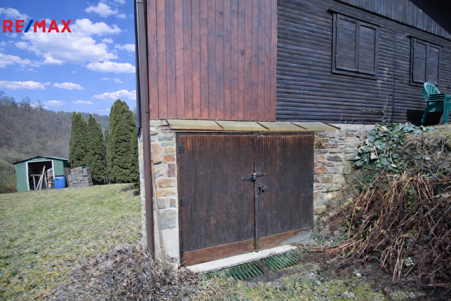 Chata je částečně podsklepená, se zděným betonovým suterénem, ve kterém se nachází garáž o výměře cca 16 m2. Dispozičně nabízí dvě ložnice, obývací pokoj s krbem, samostatnou kuchyň a navazující terasu, ideální pro posezení a relaxaci.