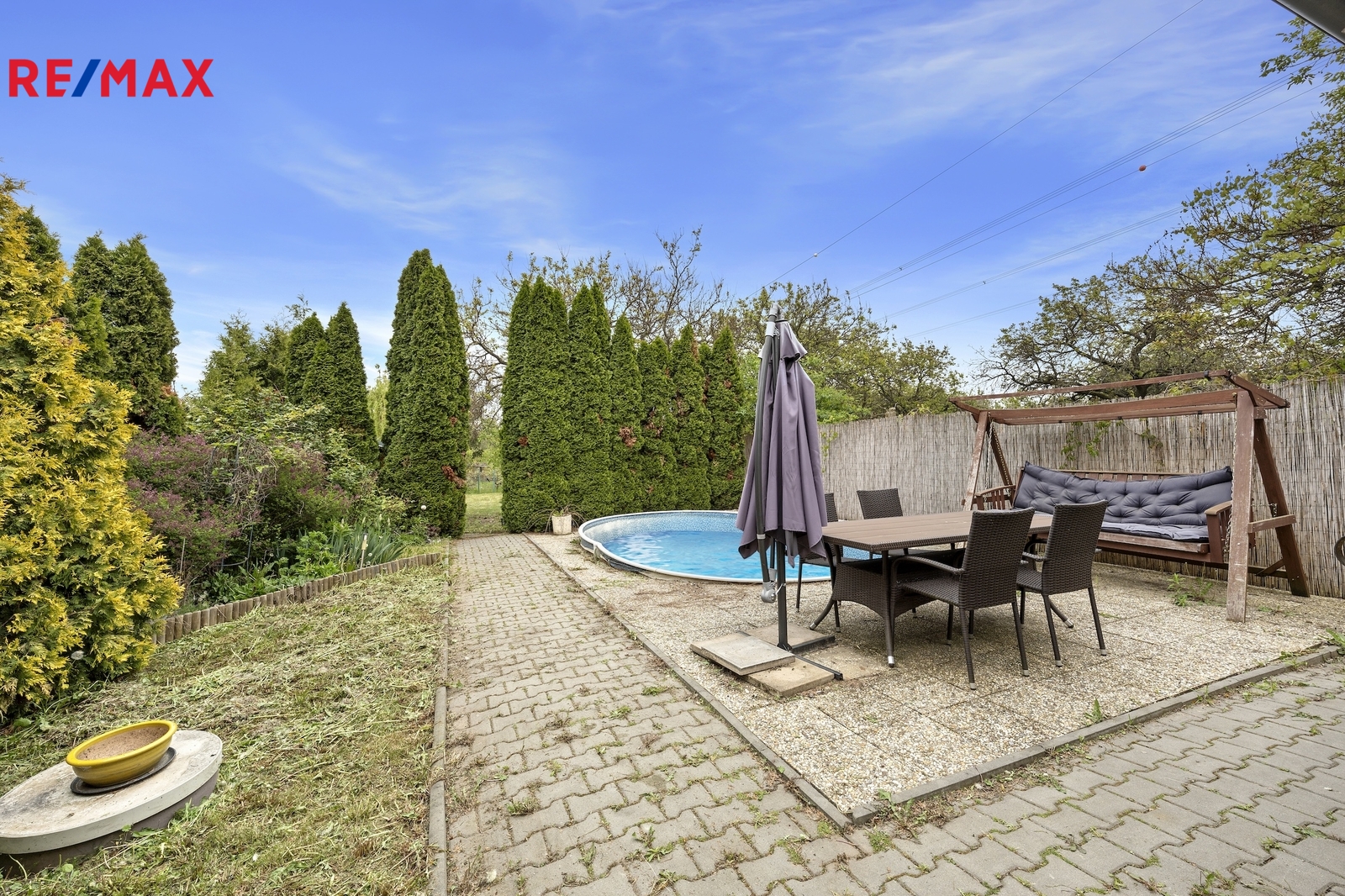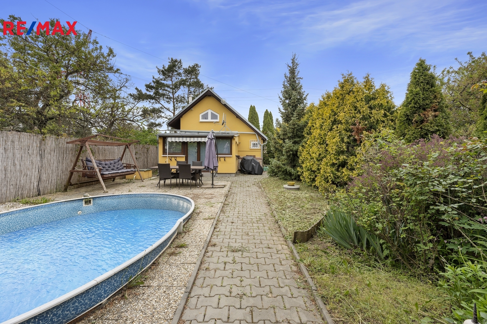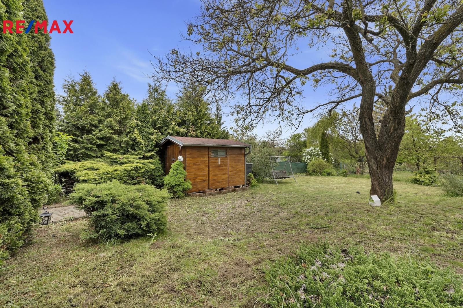 Pozemek je rovinatý, oplocený a umožňuje parkování přímo u chaty za bránou. Na zahradě se nachází venkovní posezení, bazén a okrasné jezírko, které dotváří klidnou atmosféru tohoto místa. Zdrojem vody je vrtaná studna a příjezd k chatě je možný celoročně po zpevněné cestě.