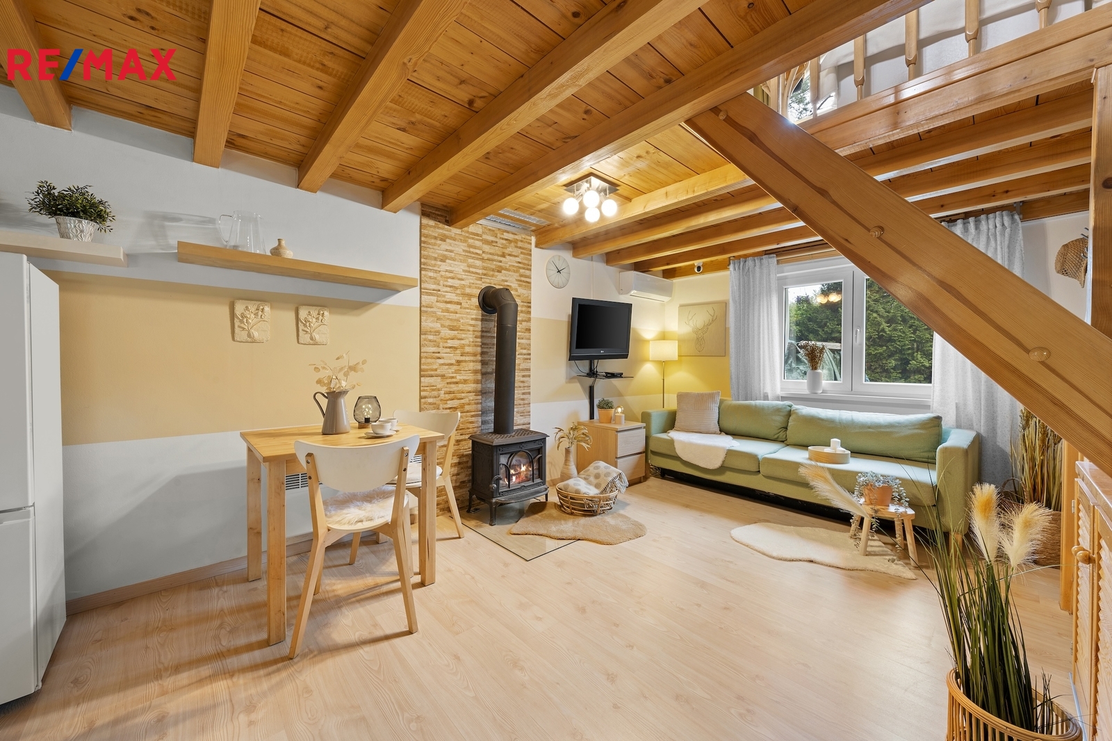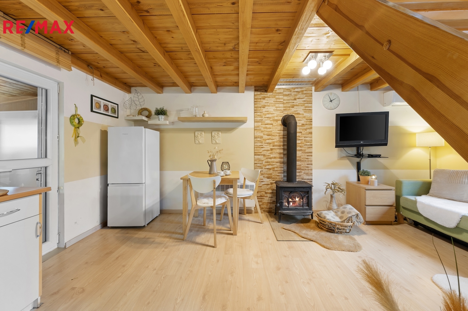 O vytápění se starají elektrické přímotopy, které spolehlivě zajistí teplo v zimních měsících. Doplňkovým zdrojem jsou krbová kamna, která lze využít pro přitápění nebo příjemnou atmosféru. V přechodném období můžete přitápět pomocí klimatizace a v létě si díky ní příjemně vychladit prostor.