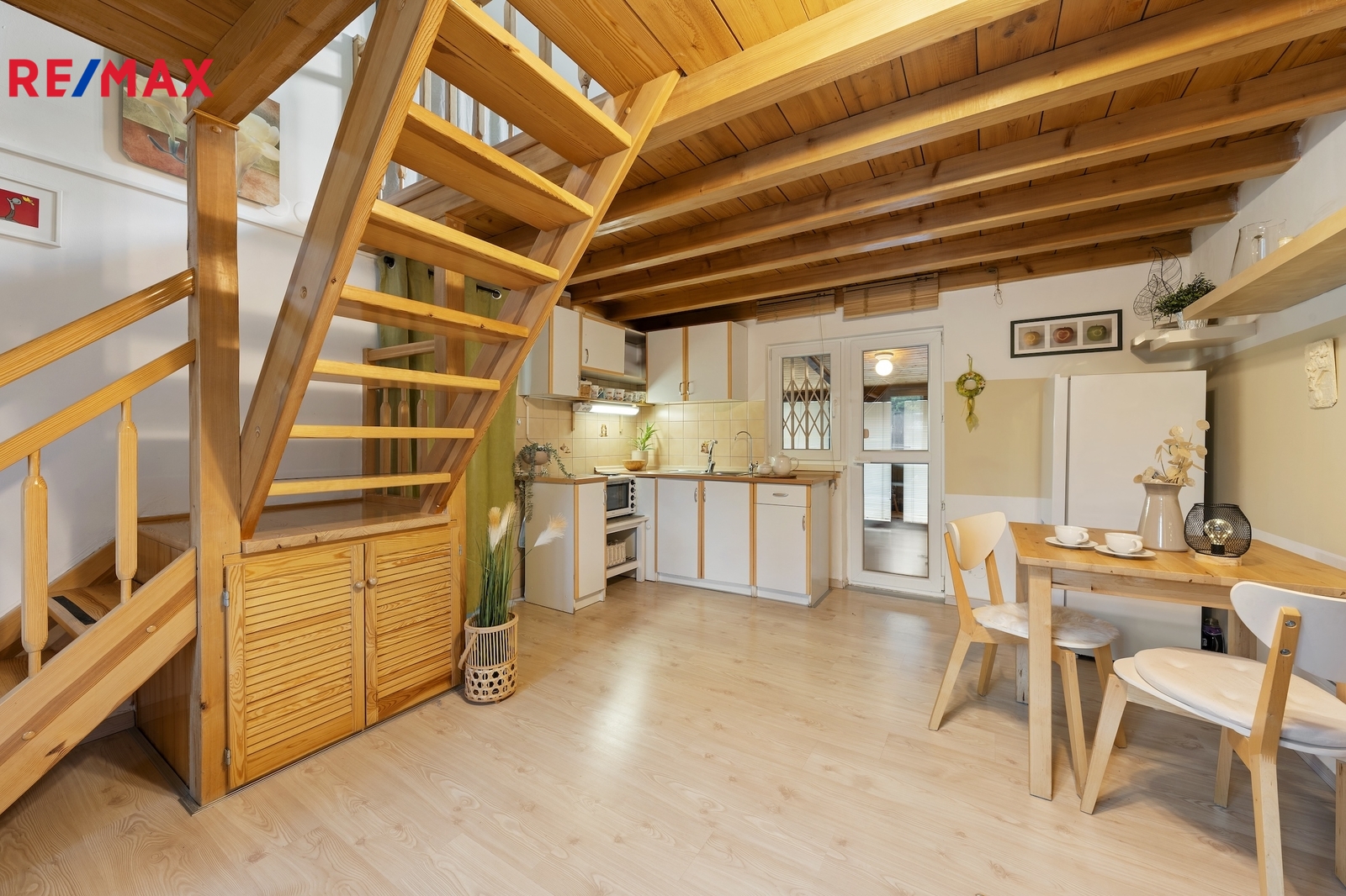 V přízemí se nachází obývací pokoj s kuchyňským koutem, koupelna se sprchovým koutem a toaletou a vstupní chodba. Z obývací části je přímý vstup na zastřešenou terasu, která navazuje na zahradu. V patře se nachází ložnice s dostatkem prostoru pro klidný odpočinek.