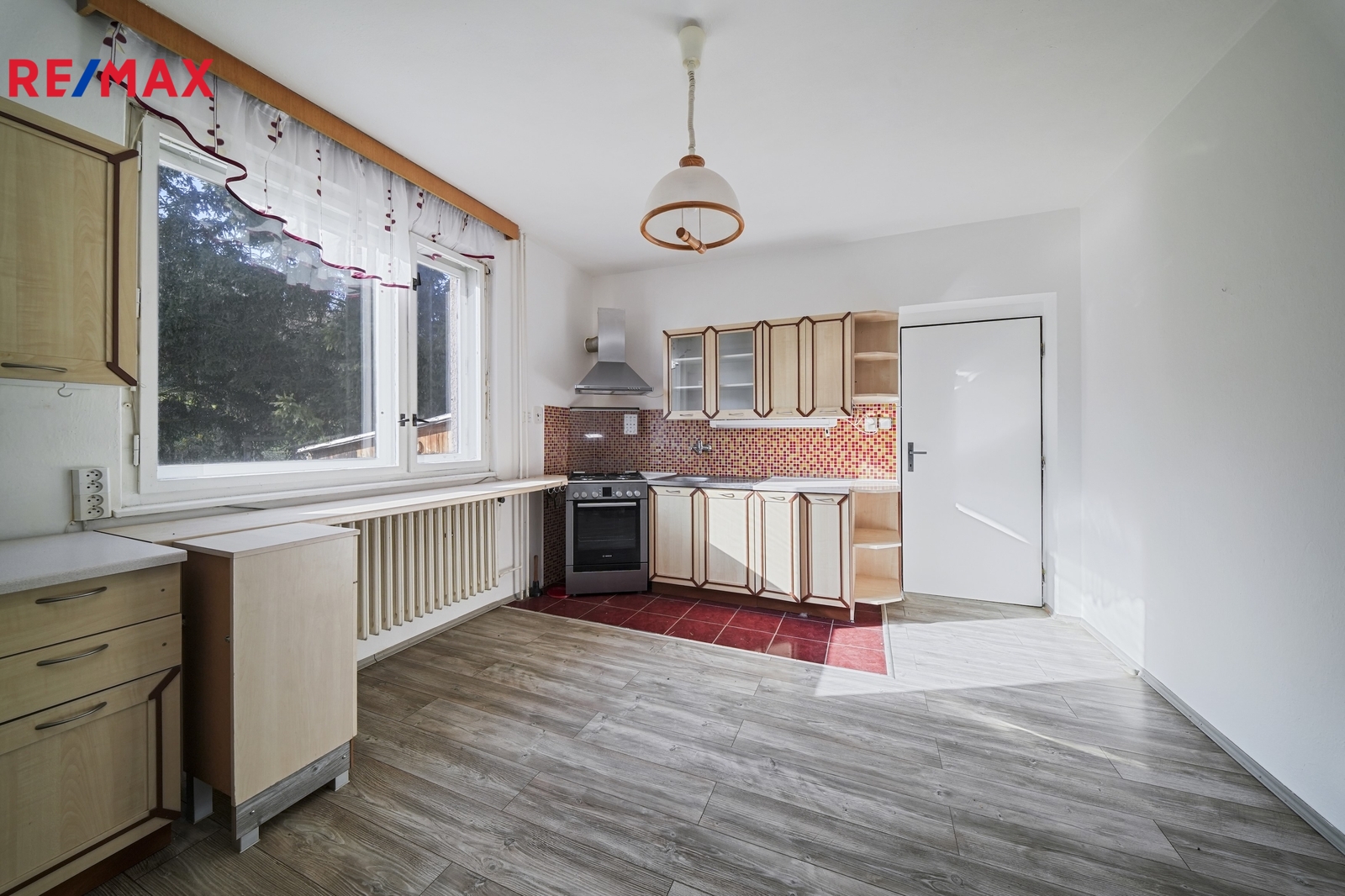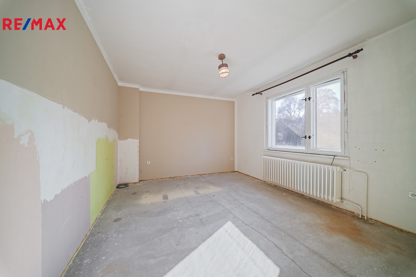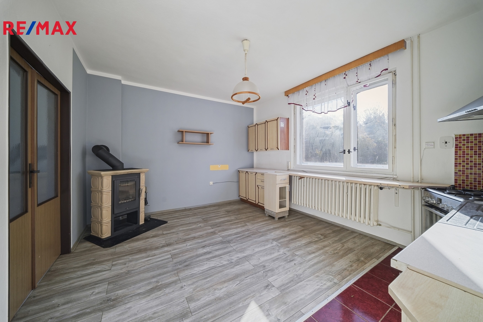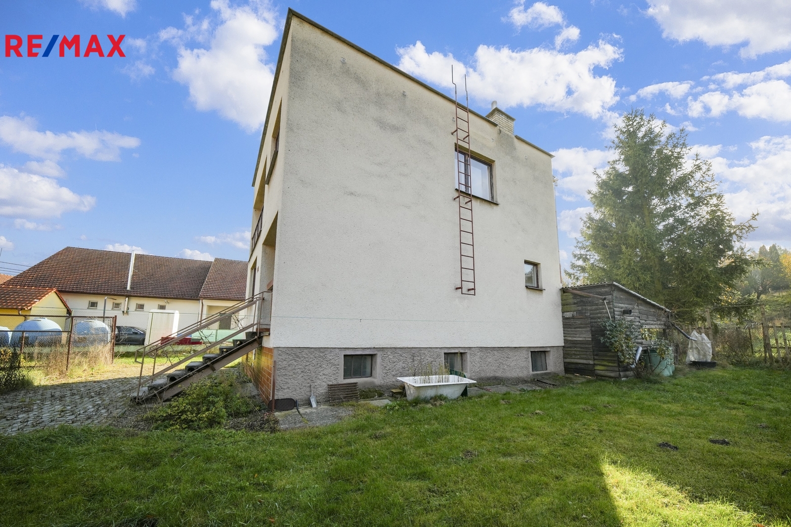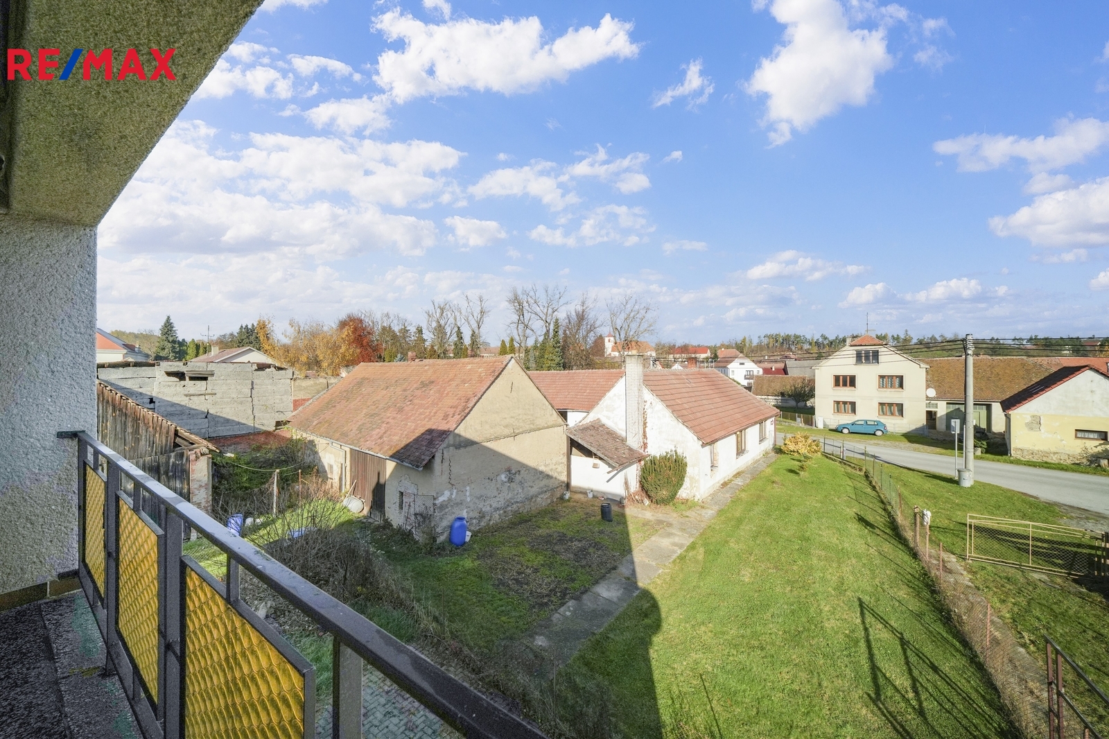 Samostatně stojící, dvoupodlažní rodinný dům o dispozici 4+1 s balkonem, kompletně podsklepený, s velkým rovinatým pozemkem o výměře 1 070 m². To je nabídka pro ty, kteří hledají klidné trvalé bydlení s možností postupné modernizace v klidné obci.