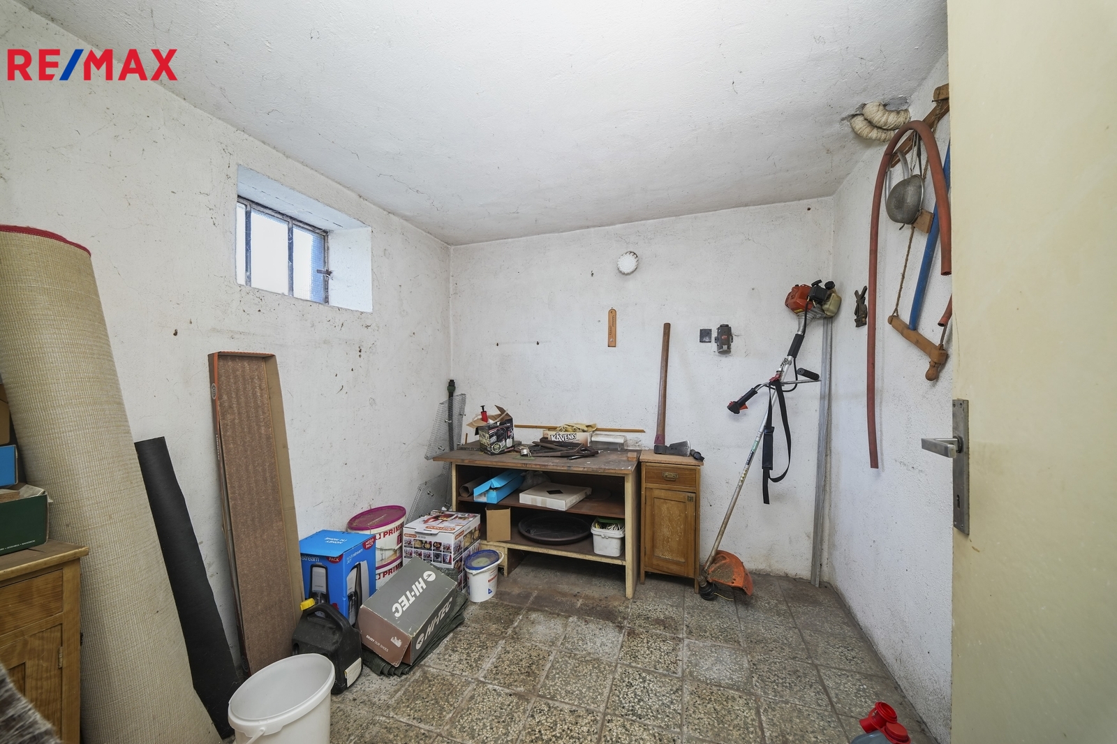 Sklep pod celým domem nabízí praktické využití – od technické místnosti přes sklad až po případnou dílnu. Na pozemku se nachází také samostatně stojící zděný sklep.