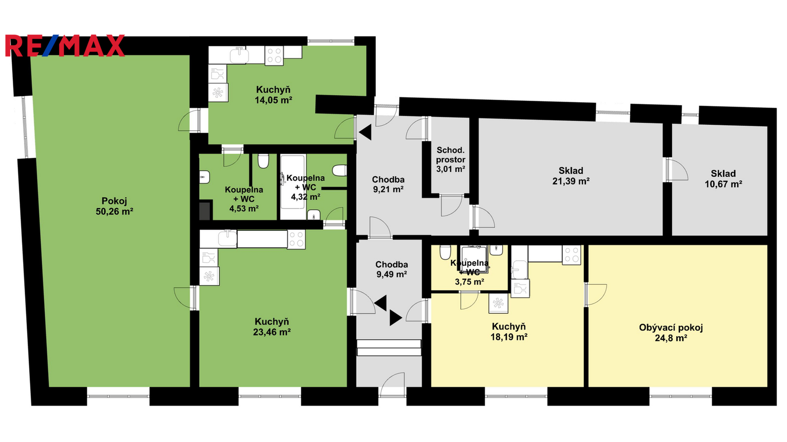V domě jsou dvě bytové jednotky a je určen ke kompletní rekonstrukci. Dle přiloženého návrhu je možné nemovitost upravit až na tři samostatné byty, což nabízí potenciál vytvoření vícegeneračního bydlení nebo menšího nájemního domu. Výhodou je i prostorná půda, která umožňuje další využití nebo rozšíření obytné plochy například o podkrovní byt. Dům je částečně podsklepen.