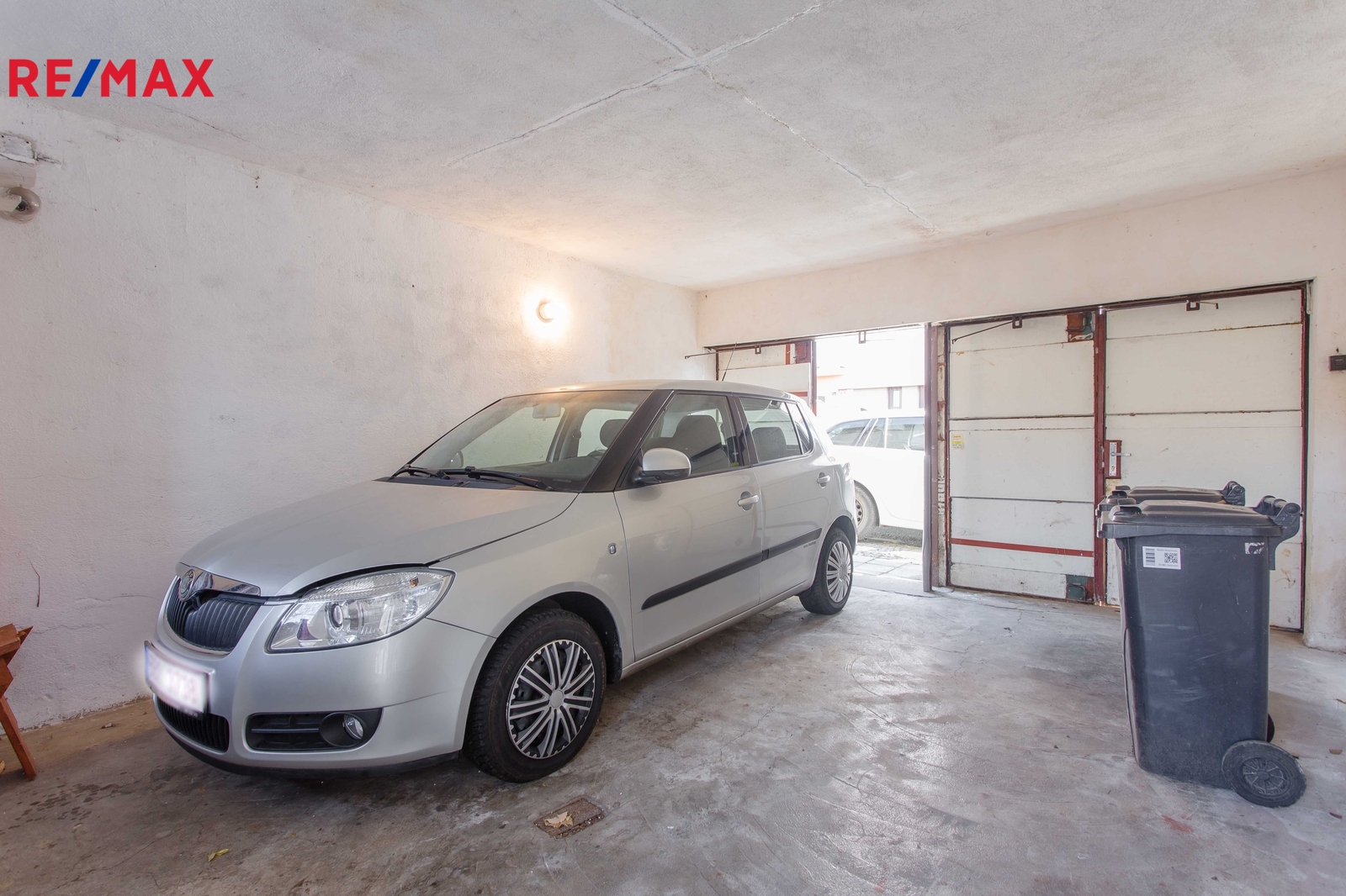 Na dům navazuje sklad zahradního náčiní s dílnou a menší hospodářské prostory. Na východním (zadním) konci pozemku je prostorná zděná garáž (24 m²) s možností parkování pro 2 vozidla, příjezd/výjezd je z/do ulice Sadová. Vnitřní rozměry 4,2 x 5,8 m, výška 2,45 m, sedlová střecha.