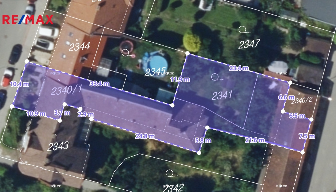 Jedná se o řadový dům, který je určen k rekonstrukci. Původní zděná stavba zabírá plochu asi 230 m², přístavbou se původní dispozice rozšířila o 2 sklady a hospodářské místnosti (málo udržované) v zadním traktu, uliční šíře je 10 m, zastavěná plocha domem a garáží je 270 m², celková plocha pozemku je 729 m². Vnitřní dispozice domu v přízemí je 3+1+veranda, celková podlahová plocha je asi 120 m² (pokoje: 24, 17 a 8 m², kuchyň 13 m², hala 24 m², koupelna 5 m²), k dispozici je malý sklep.