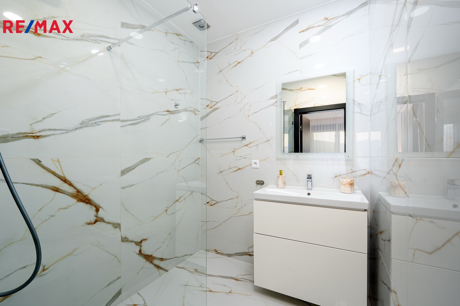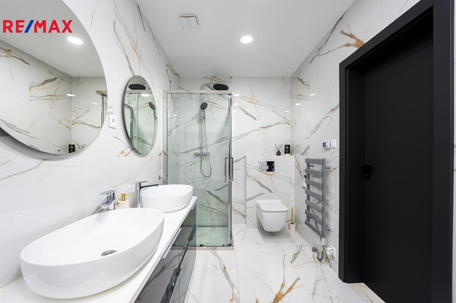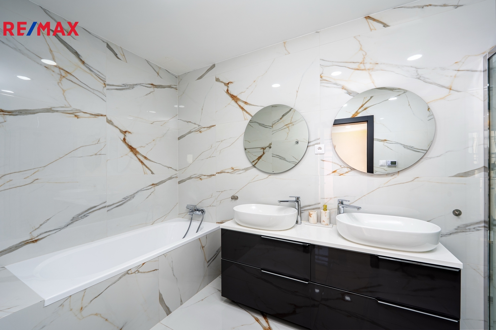 Soukromá master bedroom nabízí vlastní koupelnu, šatnu a terasu, ideální pro relaxaci, kterou lze využít například pro umístění vířivky, lehátek či posezení venku.