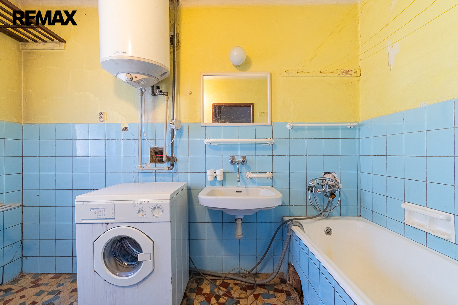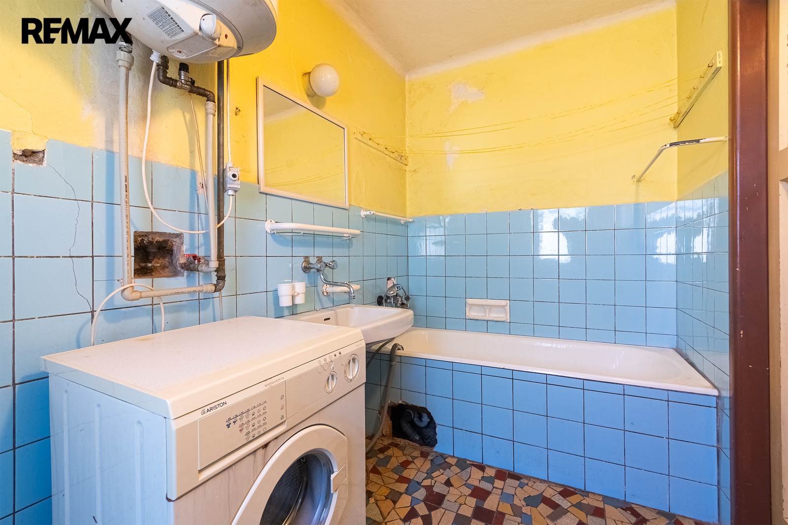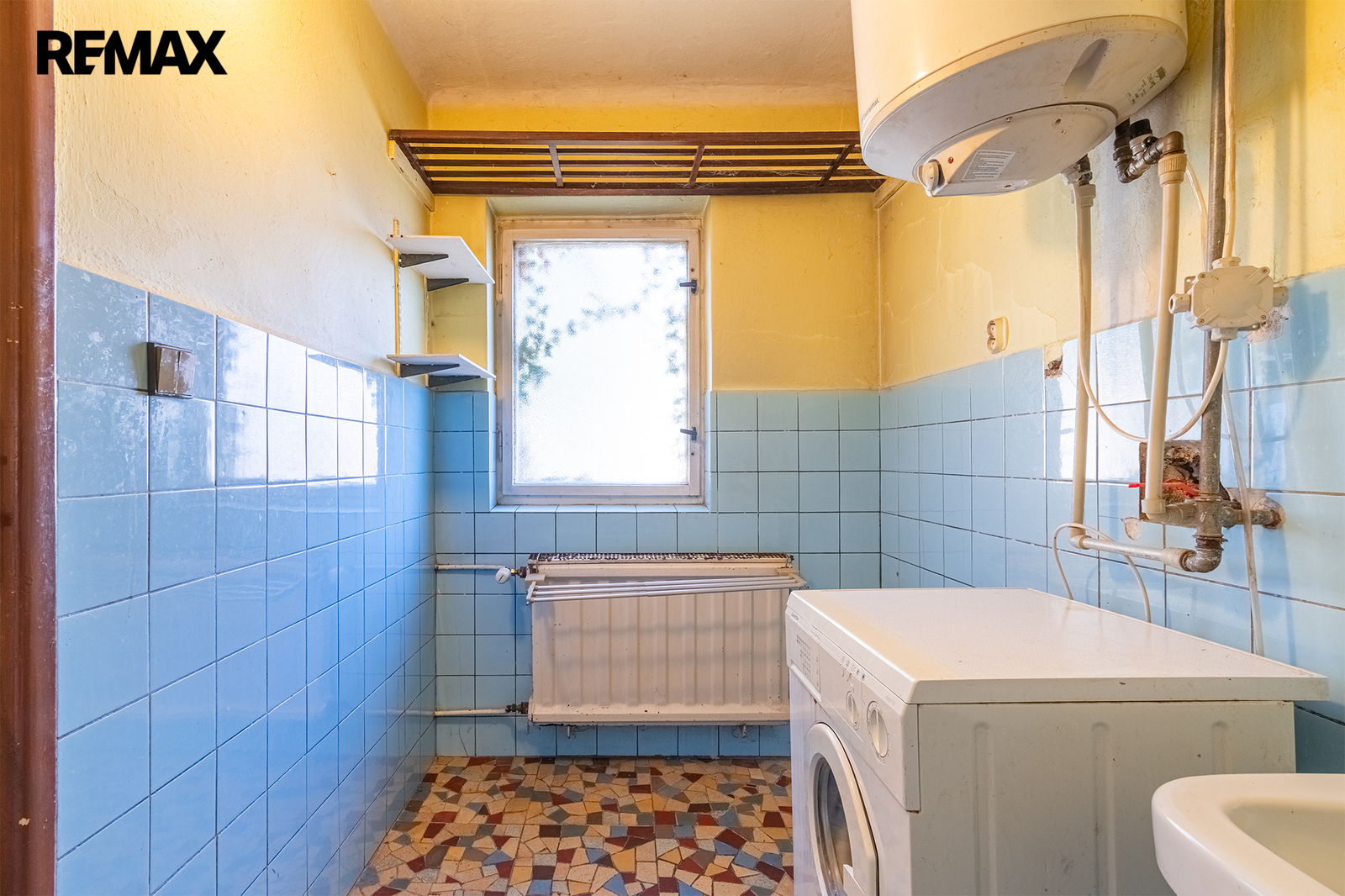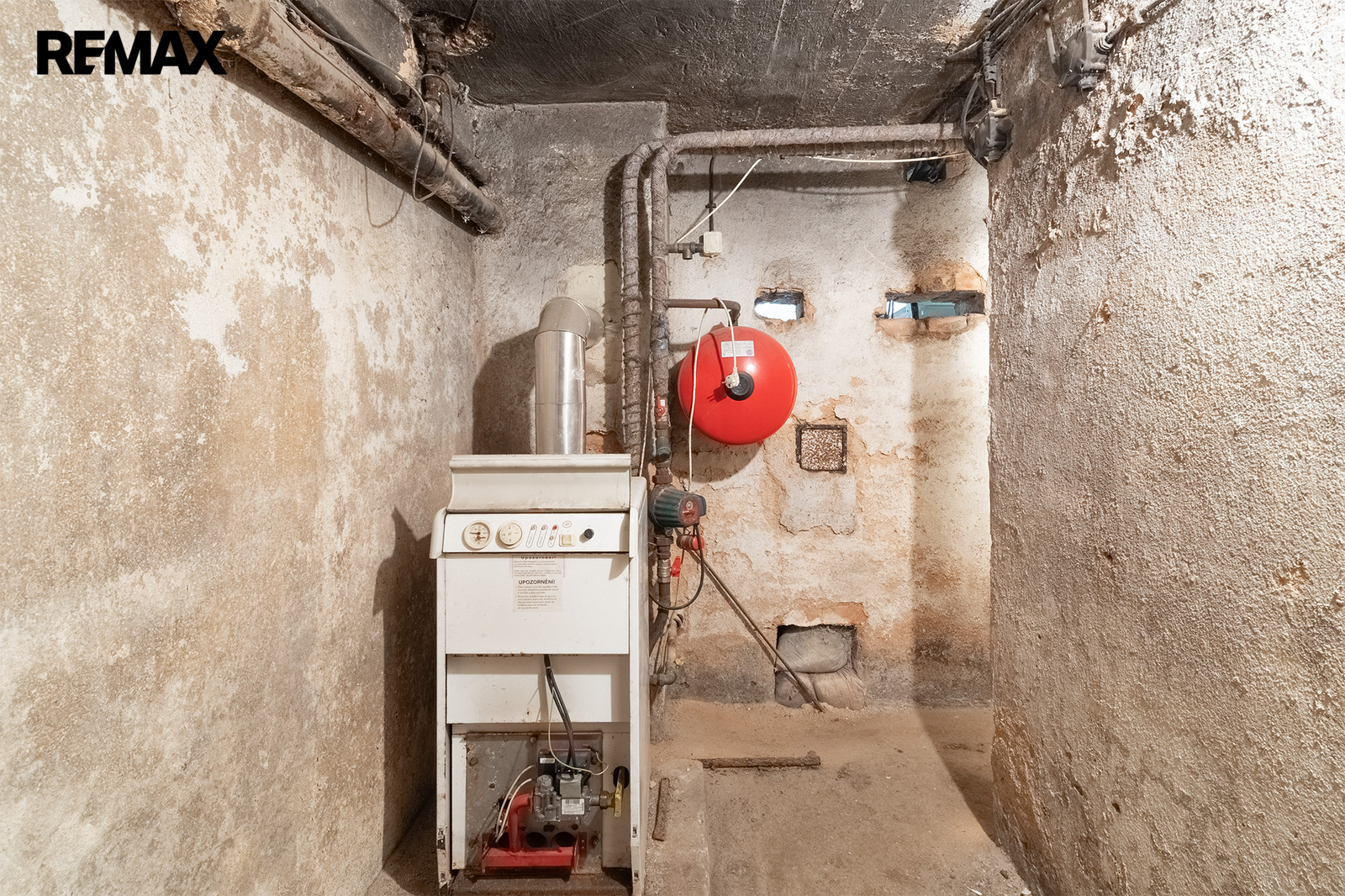 Vytápění je zajištěno plynovým kotlem, ohřev vody řešen elektrickým bojlerem.