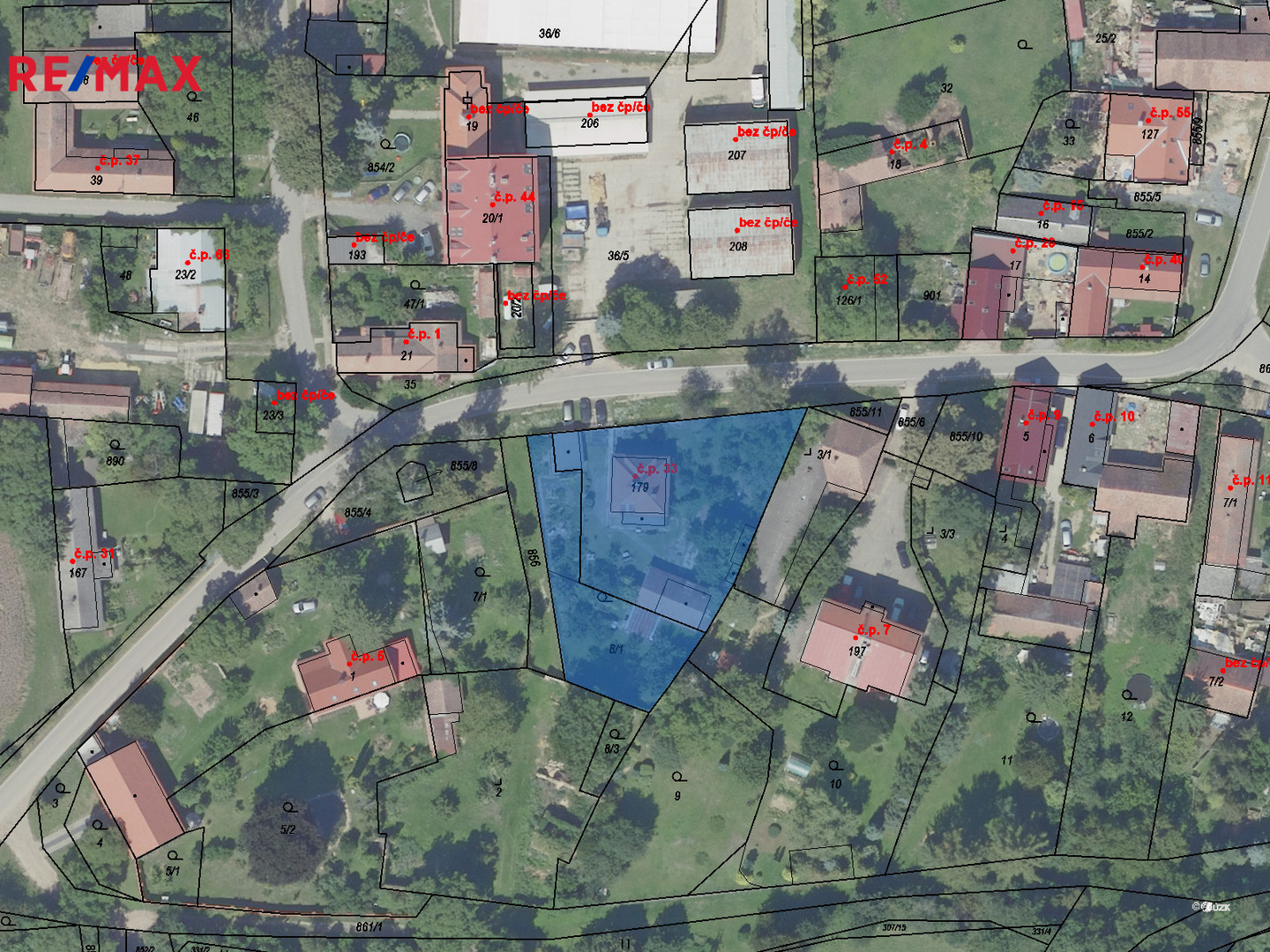 Na pozemku se dále nachází: garáž o výměře cca 23 m², původní vejminek s obytnou částí cca 48 m² (dva pokoje, kuchyň)