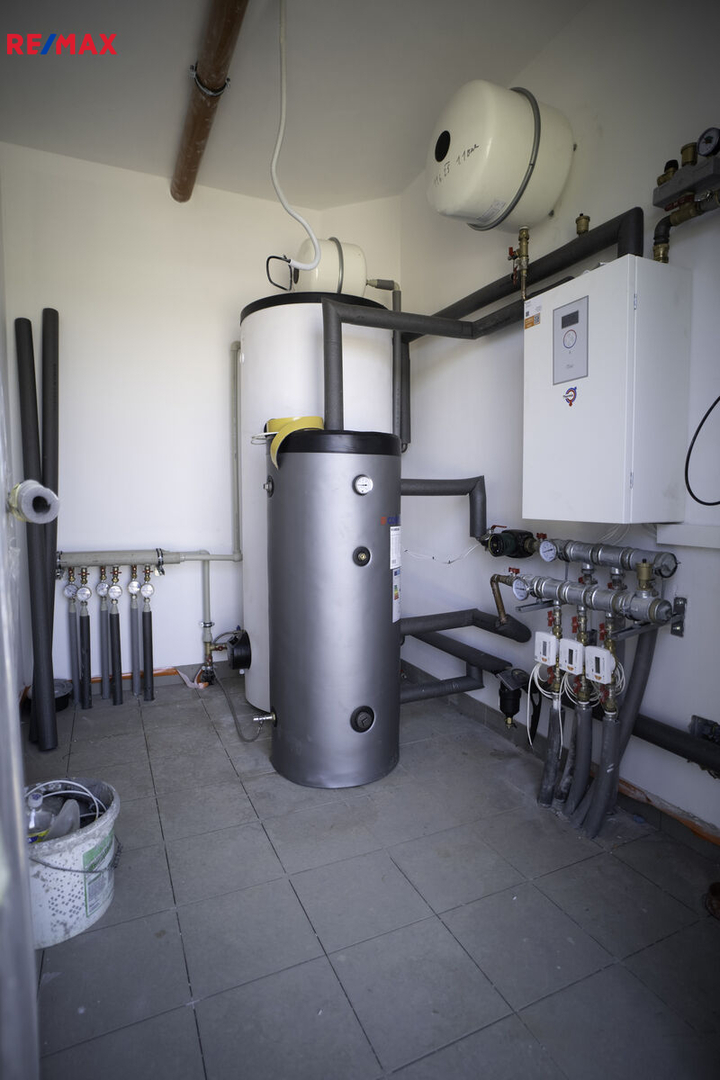 Technické řešení odpovídá současným nárokům na úsporné bydlení – dům je vybaven tepelným čerpadlem a kvalitní izolací, což zajišťuje nízké provozní náklady a příjemné klima po celý rok. Samozřejmostí je příprava na venkovní žaluzie i možnost instalace fotovoltaiky.