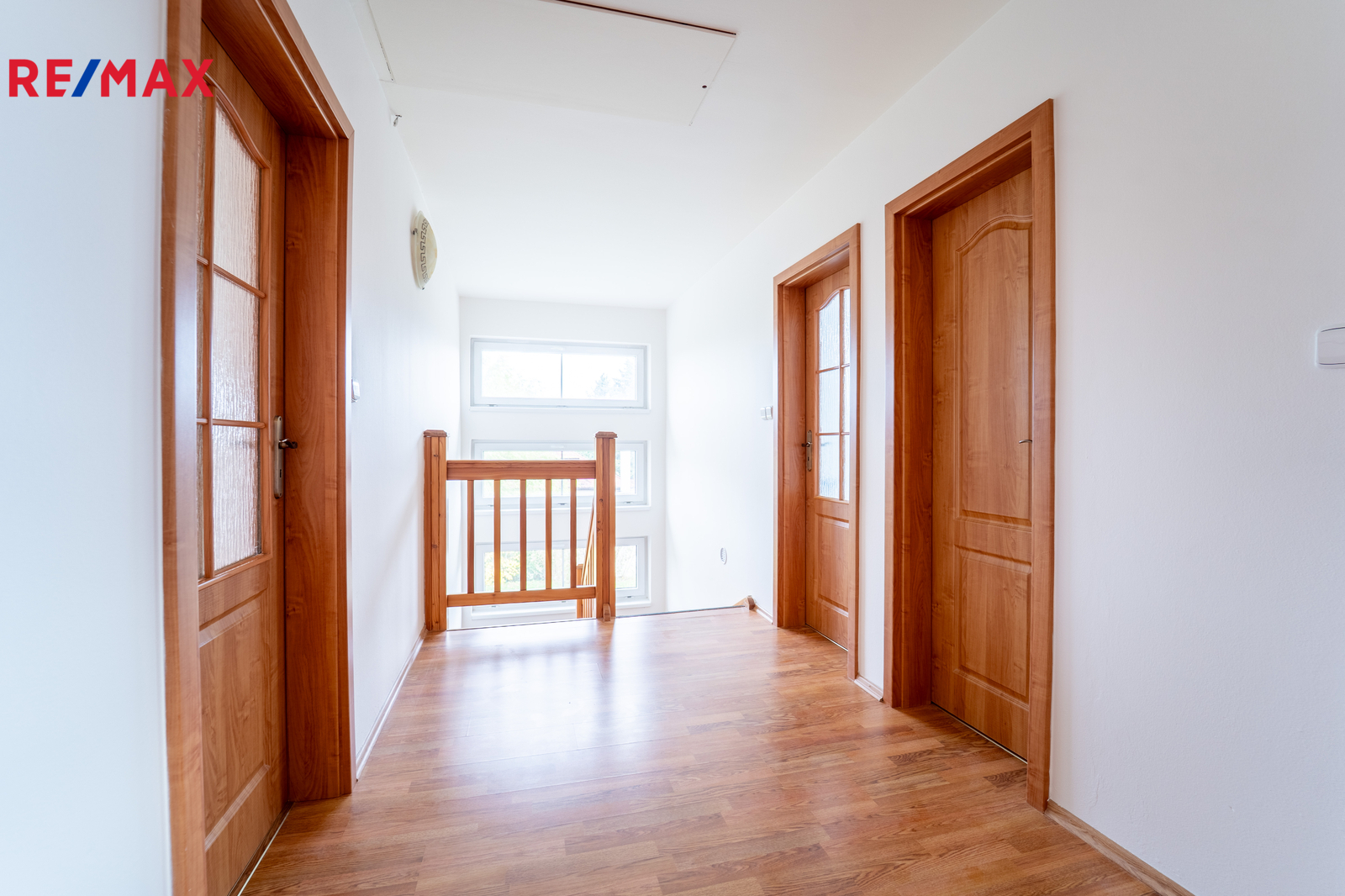 Dovolujeme si Vám nabídnout k prodeji dvoupodlažní rodinný dům o užitné ploše 146,7 m² + balkon 11,25 m2 s rovinatým pozemkem o velikosti 747 m² v klidné části Dolního Bousova, ulice V Končinách. Dům byl kolaudován v roce 2008 a je v dobrém technickém stavu. V přízemí se nachází prostorný obývací pokoj s jídelnou a kuchyňským koutem se vstupem na terasu a zahradu, dále samostatný pokoj, koupelna se sprchovým koutem a WC, komora a technická místnost. Do podkroví vede dřevěné schodiště, kde jsou tři samostatné pokoje, koupelna s rohovou vanou, samostatné WC a dva pokoje mají vstup na balkon. Pod střechou je úložný půdní prostor. Dům je napojen na vodovod a kanalizaci, vytápění zajišťuje plynový kotel s rozvodem do radiátorů. Okna jsou plastová, podlahy plovoucí a dlažba. Na zahradě se nachází dřevěný zahradní domek, část pozemku je zpevněna zámkovou dlažbou, zbytek tvoří udržovaný travnatý terén, celý pozemek je oplocený. Dolní Bousov nabízí výbornou občanskou vybavenost – mateřskou i základní školu, obchody, restaurace, lékaře, poštu i sportovní areály. Město má také skvělé dopravní spojení – autobusové i vlakové linky do Mladé Boleslavi a Jičína, dobrý přístup na dálnici D10. Tento dům představuje ideální volbu pro rodinné bydlení v klidném prostředí s výbornou dostupností všech služeb.
