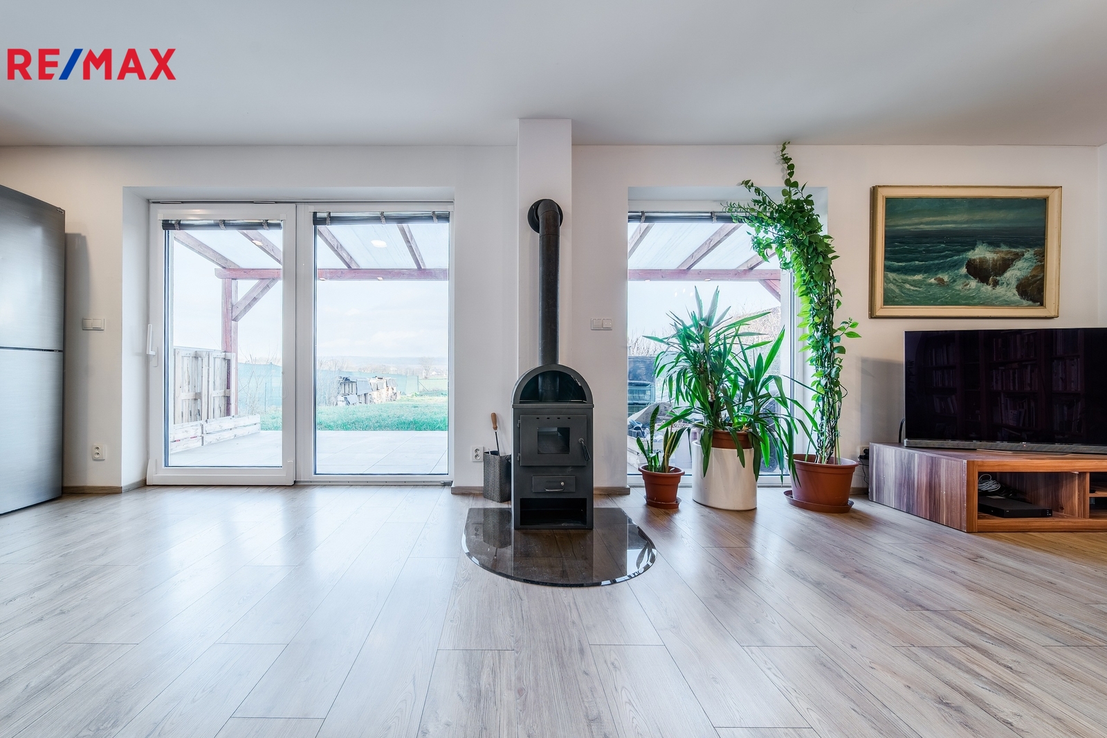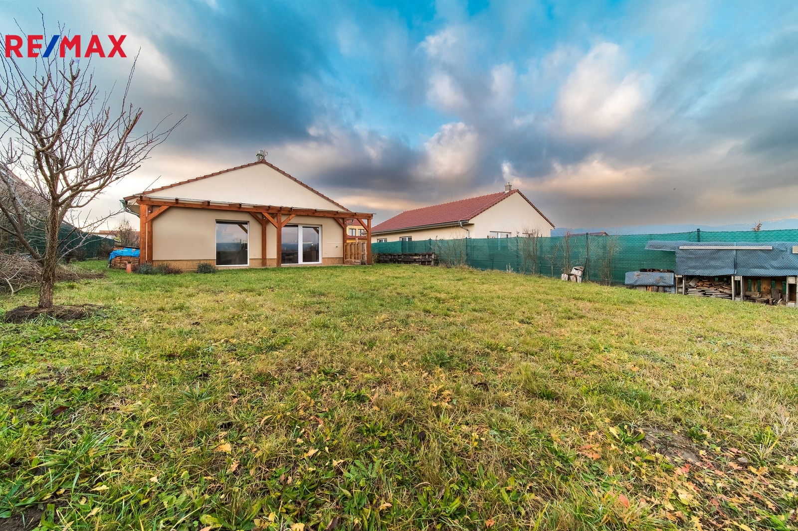 Dispozice domu nabízí prostorný obývací pokoj s kuchyňským koutem, ze kterého je přímý vstup na venkovní terasu a zahradu, dále tři samostatné ložnice, koupelnu a další praktické zázemí. Pod střechou se nachází úložný prostor.