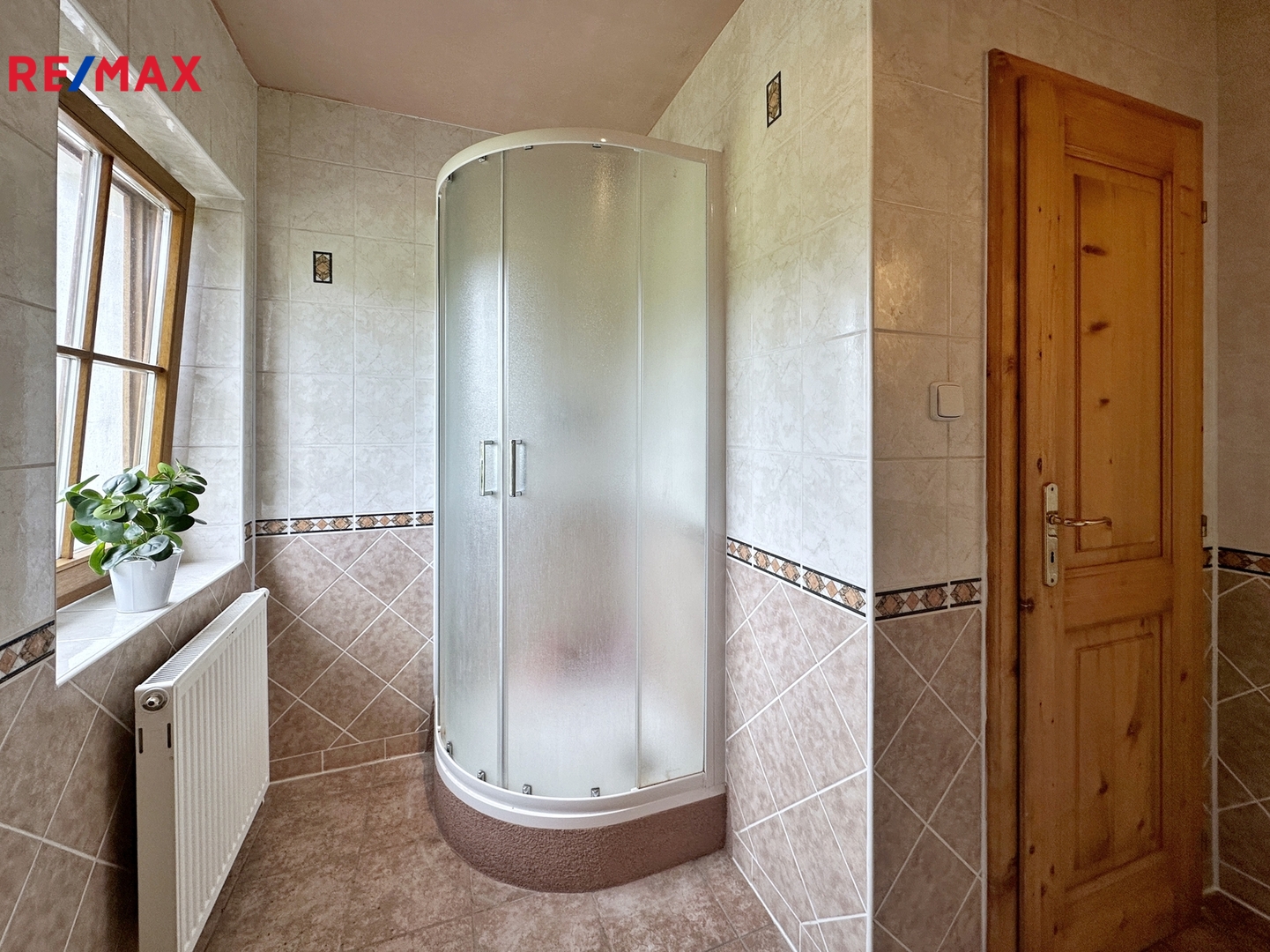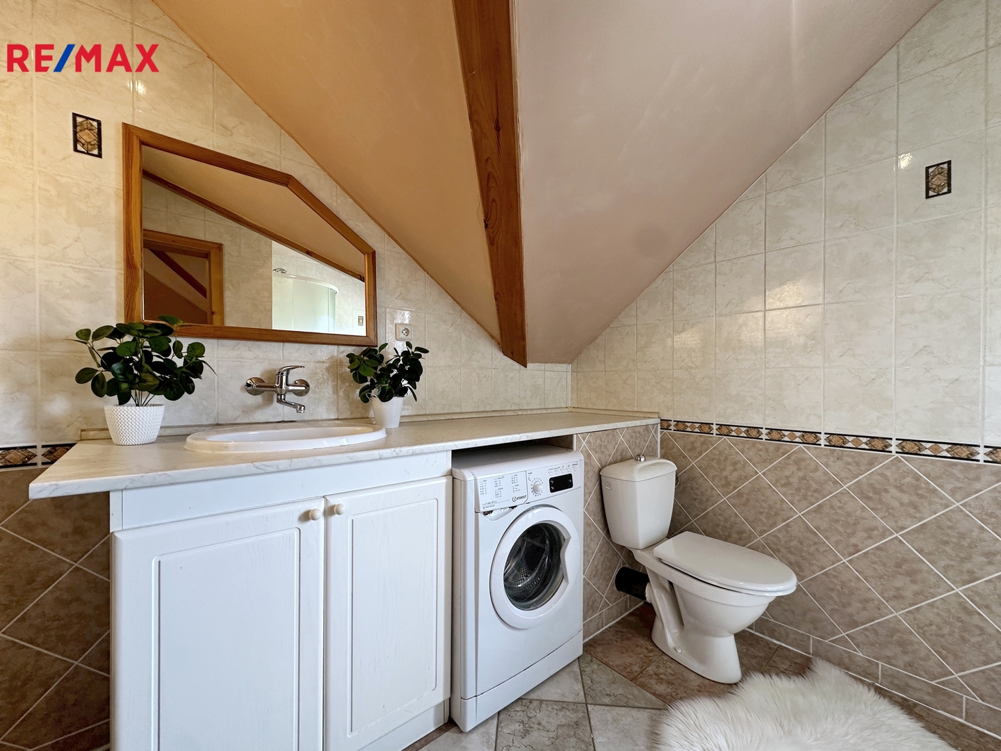 V přízemí se dále nachází koupelna s vanou, samostatné WC a technické zázemí (kotelna, komora, spíž).