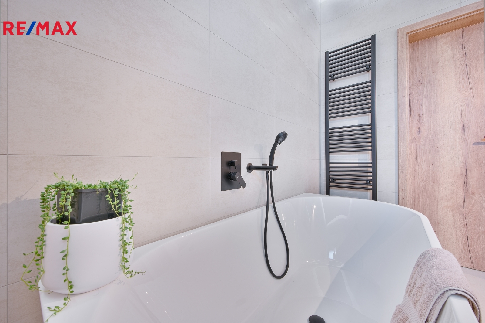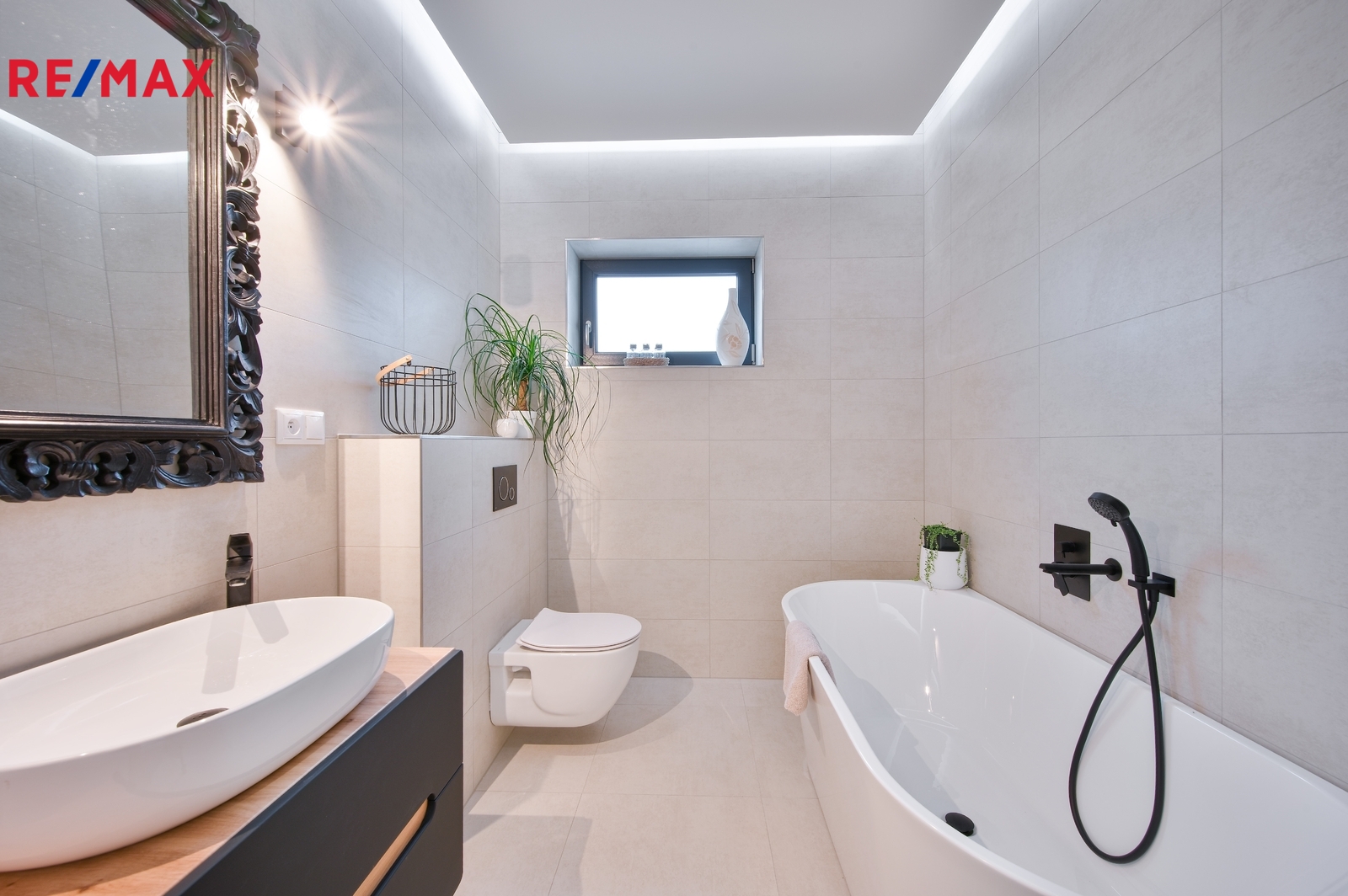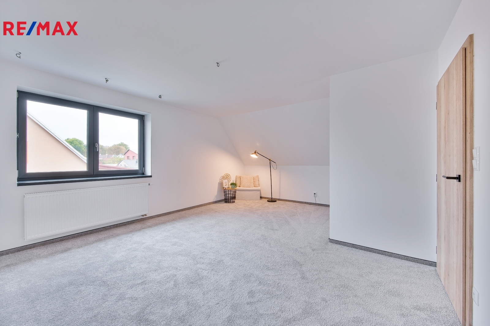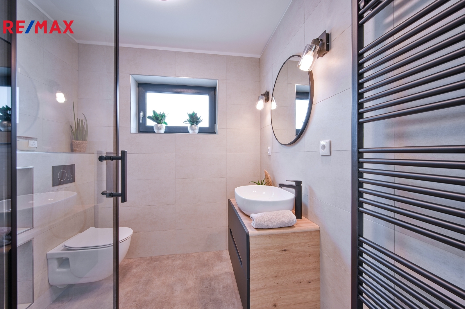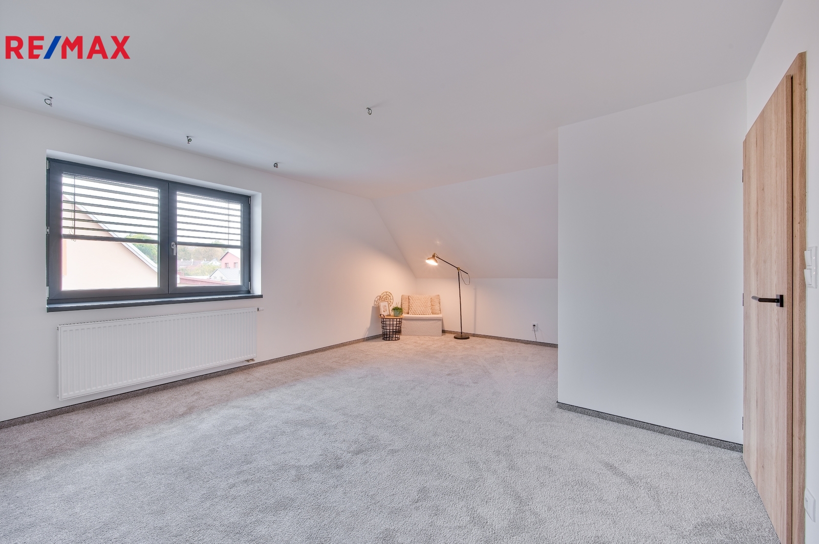 Dům je vytápěný tepelným čerpadlem, disponuje v obytných místnostech elektrickými žaluziemi, v přízemí je položeno kvalitní lino, v patře pak měkký koberec pro pohodlí a útulnost. Vše je promyšleno do posledního detailu. Dům nabízí sklep o velikosti 64 m², rozdělený do tří místností, který nabízí široké možnosti využití (dílna, sklad, wellness apod.) a také velkorysou půdu, díky které budete moci uskladnit všechny potřebné věci.