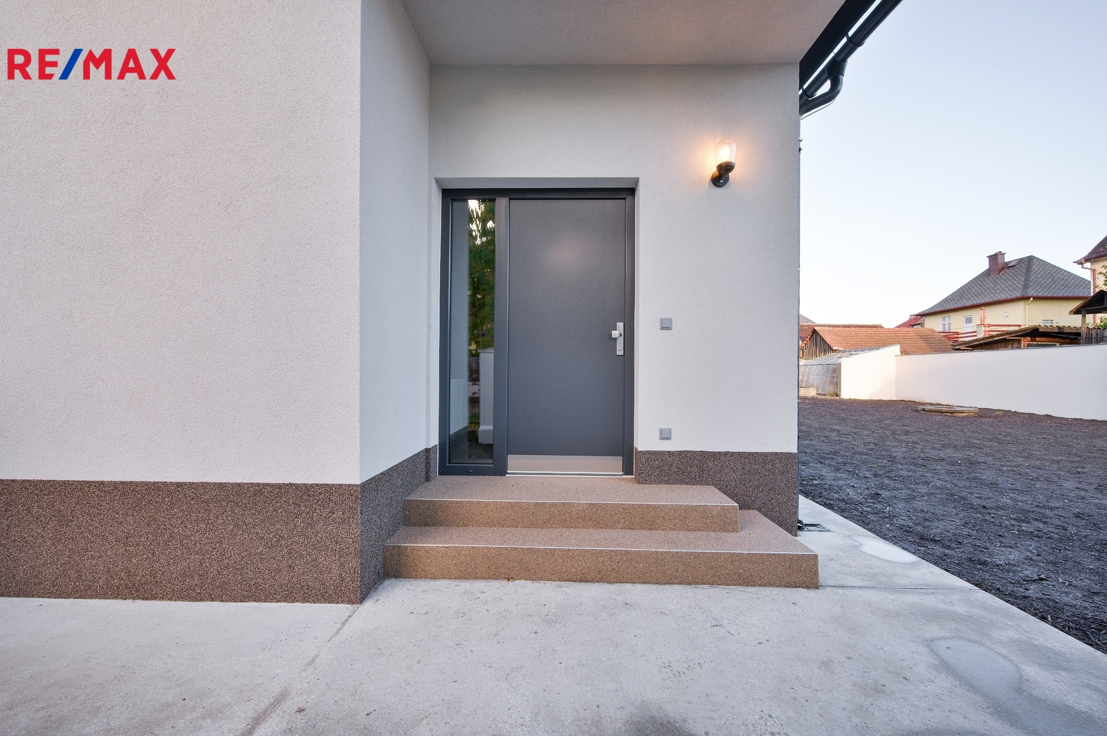 V přízemí domu nalezneme velkou vstupní chodbu, prostorný obývací pokoj propojený s kuchyní, ze které je přímý vstup na terasu. Dále se zde nachází ložnice, technická místnost určená pro pohodlné praní a moderní koupelna s částečně volně stojící vanou, designovými doplňky a světelným podhledem, který umožňuje vytvořit si příjemnou atmosféru při relaxaci.