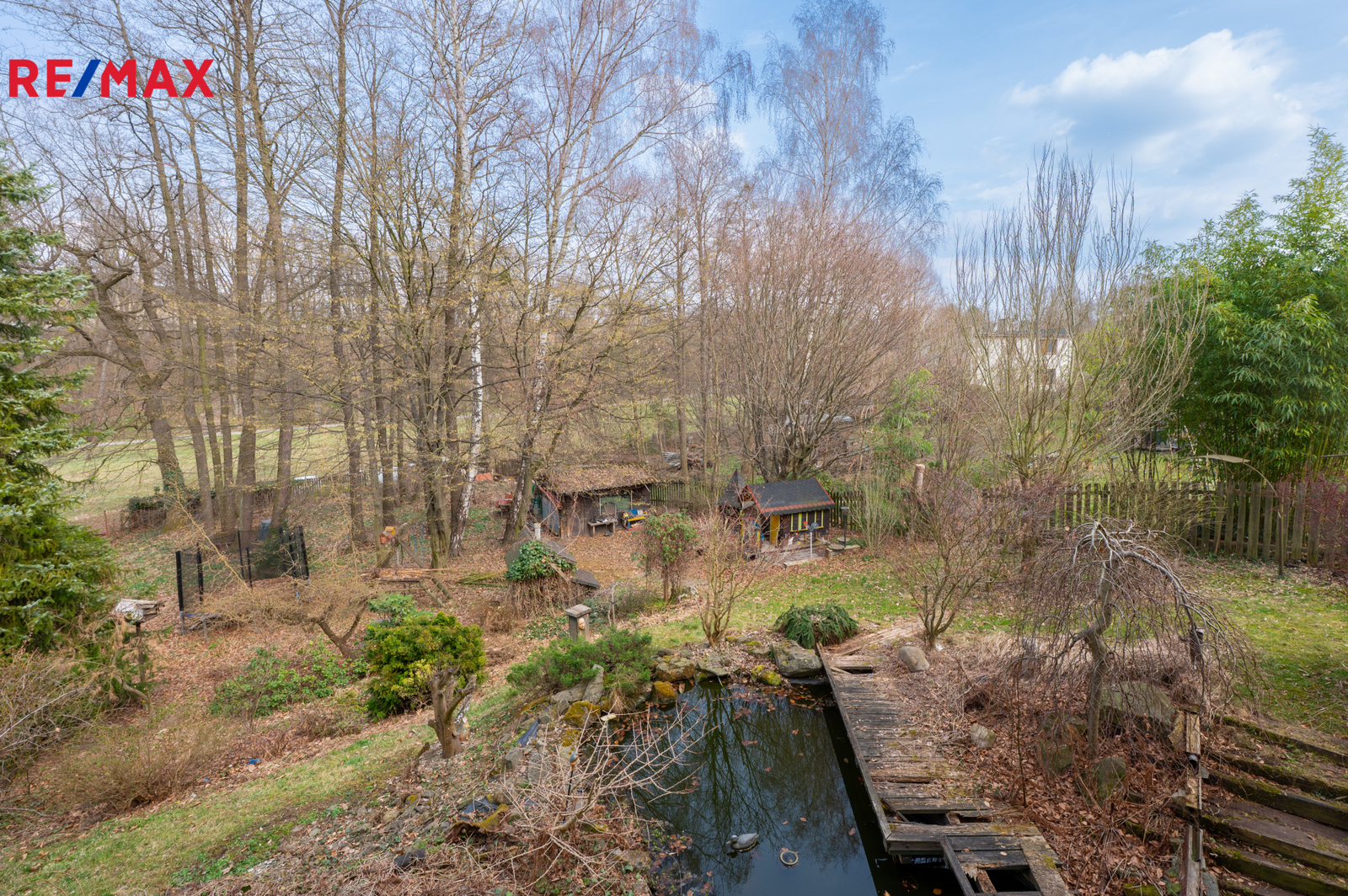 Velkou předností nemovitosti je prostorný pozemek o celkové výměře cca 1 511 m² (z toho dva pozemky o velikosti 1 368 m² a zastavěná plocha domu 143 m²), který nabízí dostatek místa pro děti, odpočinek i rodinné aktivity. Zahrada má příjemnou atmosféru, nachází se zde okrasné jezírko, vzrostlé stromy i klidná zákoutí. Přestože aktuálně vyžaduje úpravy, pro novou rodinu představuje skvělou příležitost vytvořit si vlastní venkovní zázemí přesně podle svých představ. Nechybí kůlna, venkovní posezení ani oplocení zajišťující soukromí.