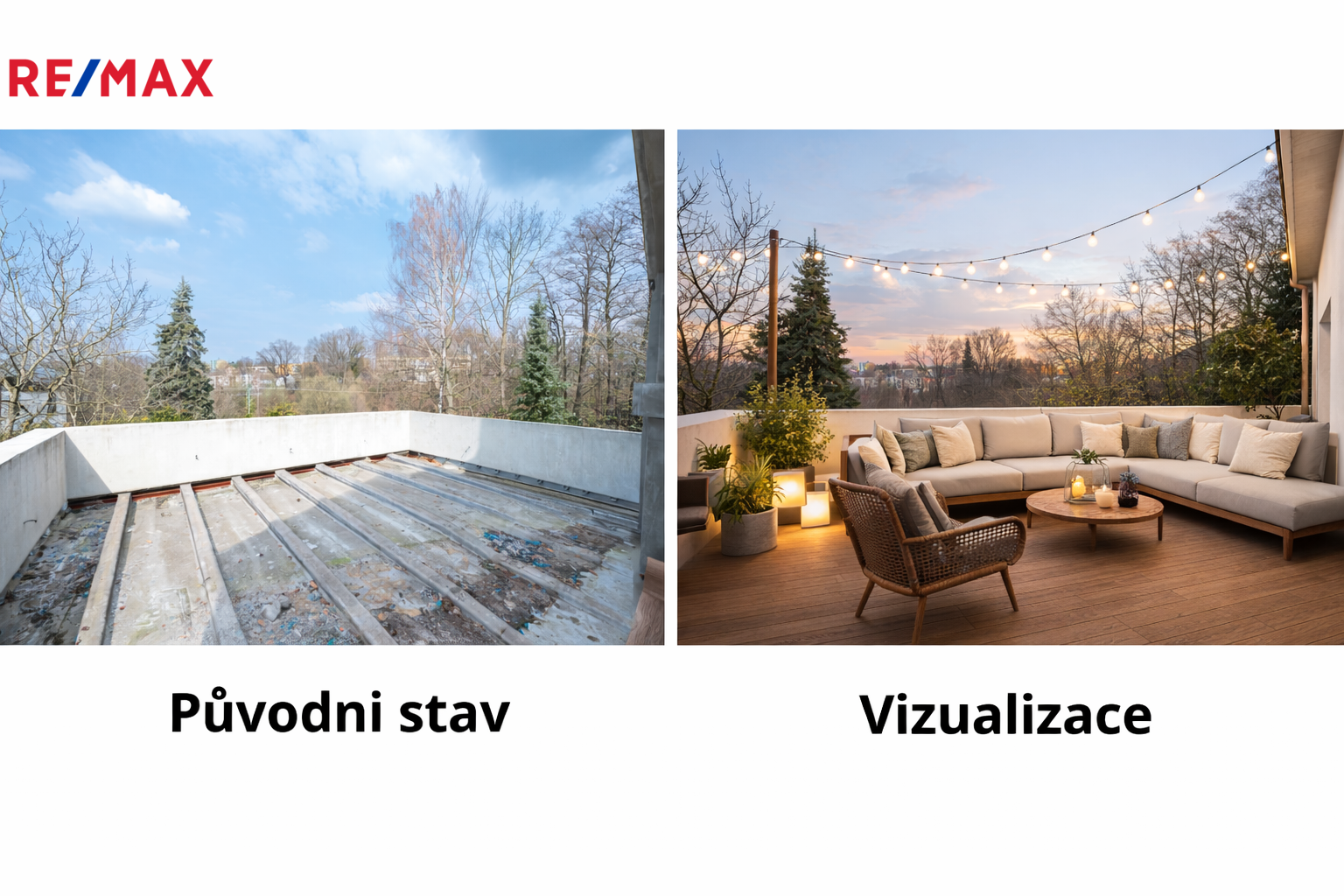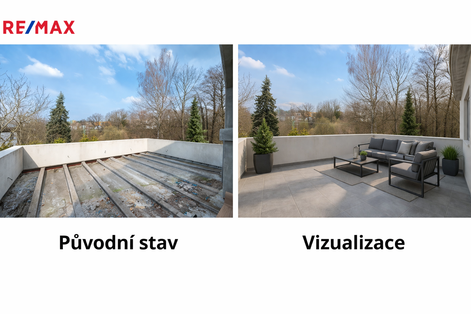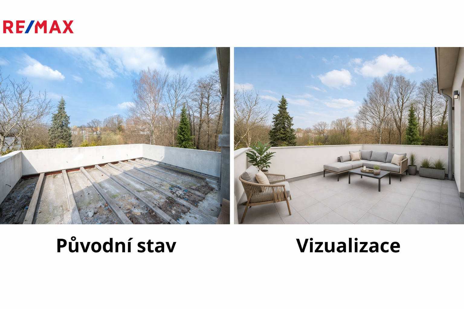 V 1.patře (III.NP) se nachází druhá bytová jednotka rovněž se samostatným vstupem. Nabízí světlý a prostorný obývací pokoj propojený s kuchyňským koutem a přímým vstupem na terasu, dále dětský pokoj, ložnici, koupelnu a samostatné WC – ideální zázemí pro pohodlné rodinné bydlení.