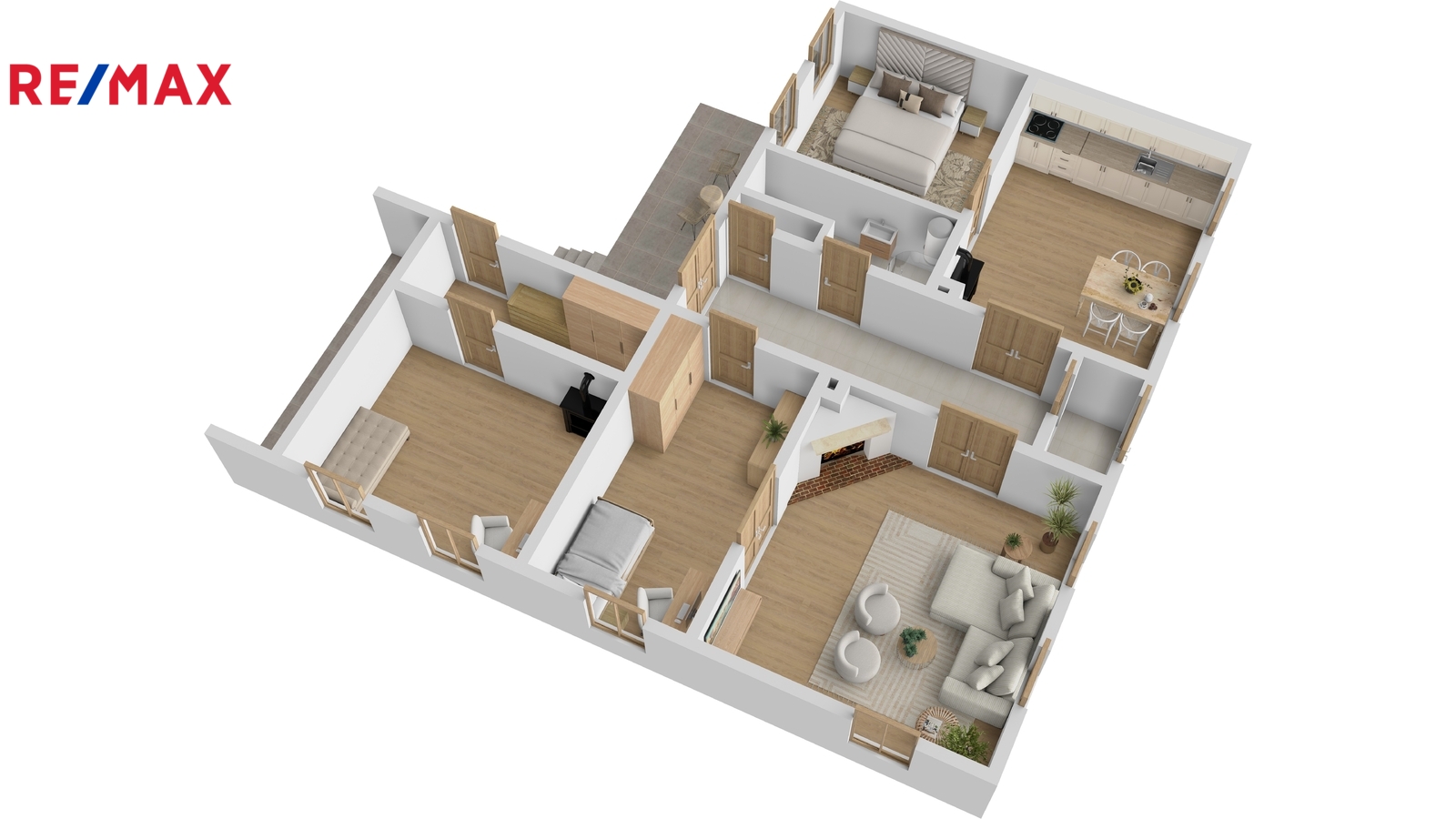 ✅ Dům je přízemní s užitnou plochou 109 m2 a dispozicí 3+1. Za malým zádveřím je centrální chodba procházející celým domem. Vpravo je umístěna velkorysá kuchyně s jídelnou. Designová dlažba s historickým vzorem dodává prostoru neopakovatelný šmrnc, zatímco moderní linka a stylová kachlová kamna slibují teplo a pohodu při rodinných večeřích. Z kuchyně plynule projdete do menšího útulného pokoje s dřevěnou podlahou, který je jako stvořený pro dětský smích nebo vaši novou ložnici.