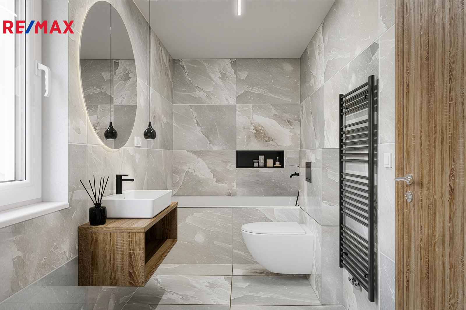 Dům splňuje parametry energetické třídy A. Vytápění je řešeno tepelným čerpadlem typu vzduch/voda. V přízemí je instalováno podlahové vytápění, v patře radiátory. Technické řešení objektu umožňuje stabilní, úsporný a dlouhodobě efektivní provoz. Příprava na připojení fotovoltaické elektrárny umožňuje další optimalizaci energetických nákladů.