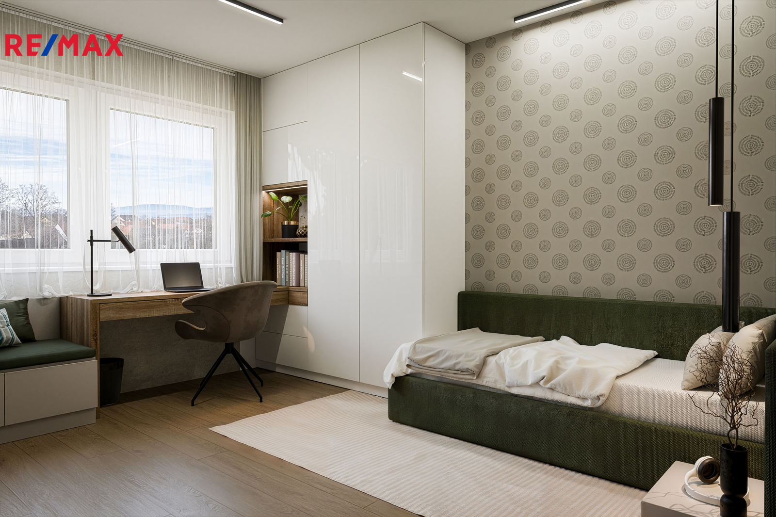 Dokončení interiéru probíhá dle výběru klienta v rámci standardů developera, které zahrnují podlahové krytiny, velkoformátové dlažby, interiérové dveře a dubové schodiště. Volitelně lze zajistit dodávku kuchyňské linky se spotřebiči a kompletní vybavení koupelny.