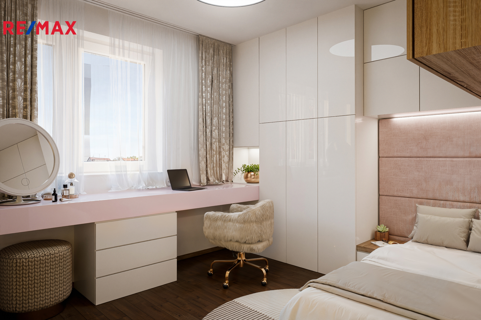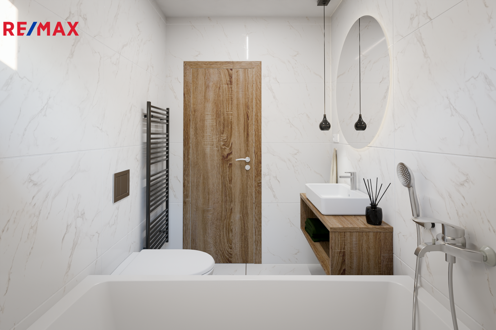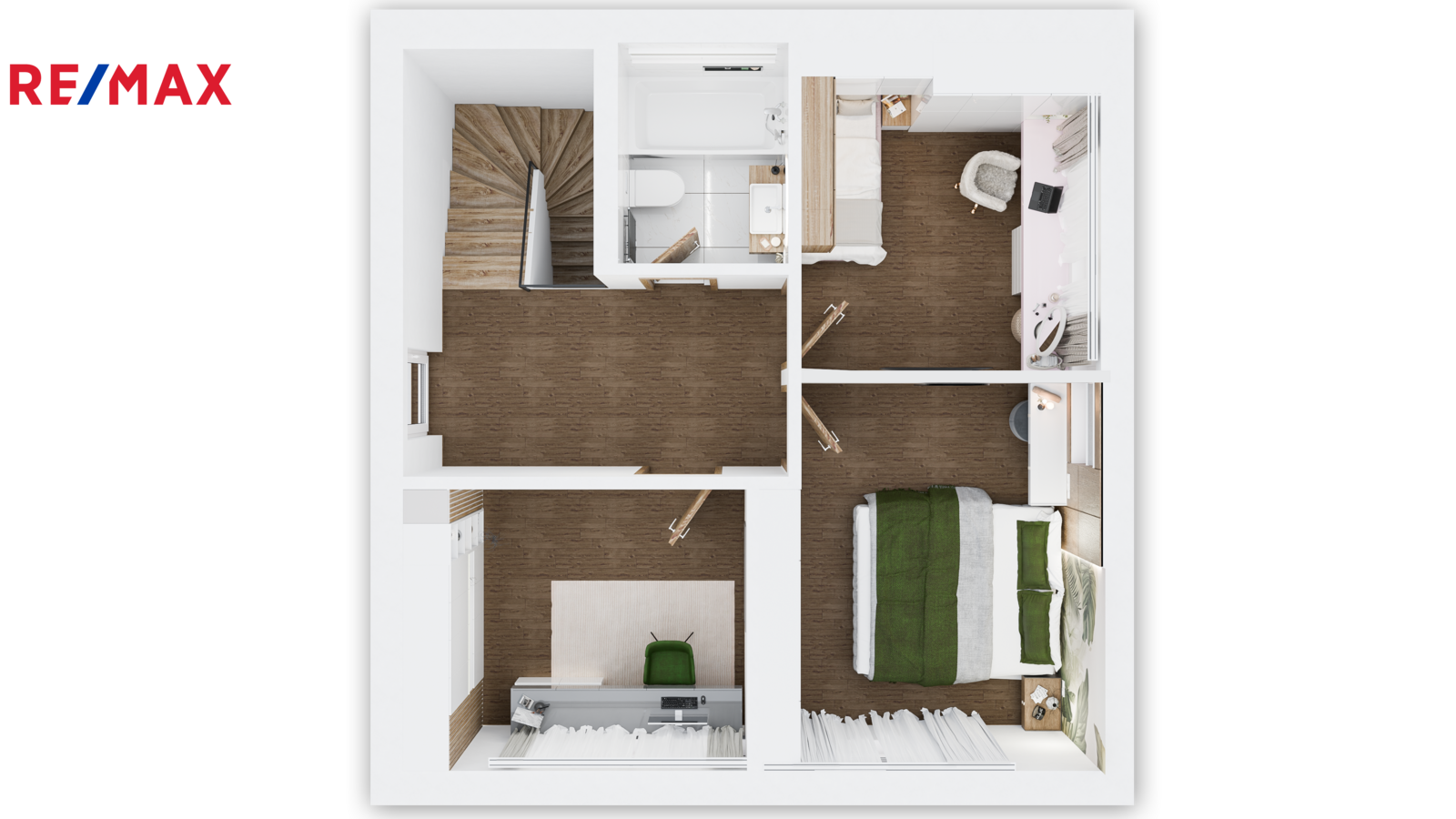 Interiér je možné dokončit na klíč podle výběru klienta. Developer nabízí širokou škálu kvalitních podlahových krytin, velkoformátové dlažby i moderní interiérové dveře. Elegantní dubové schodiště propojuje obě patra. V ceně je zahrnuta i moderní kuchyňský linka bez spotřebičů i kompletně vybavená koupelna s designovým podsvíceným zrcadlem.
