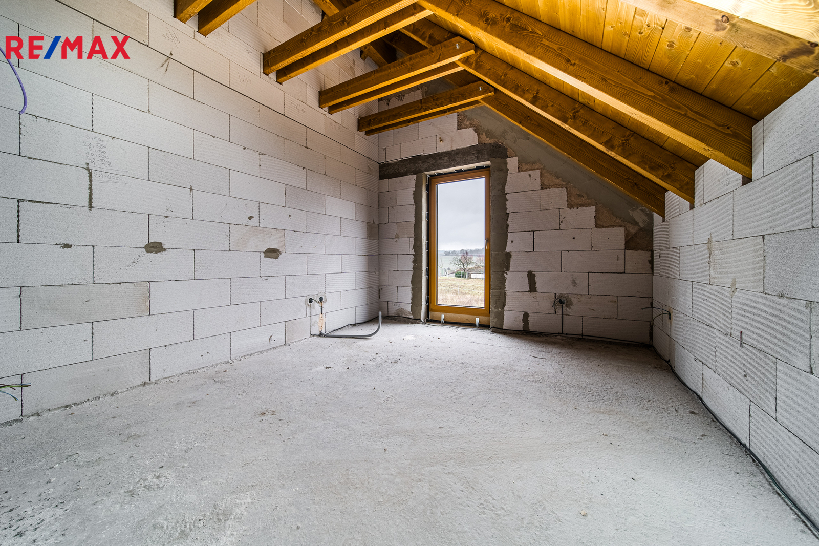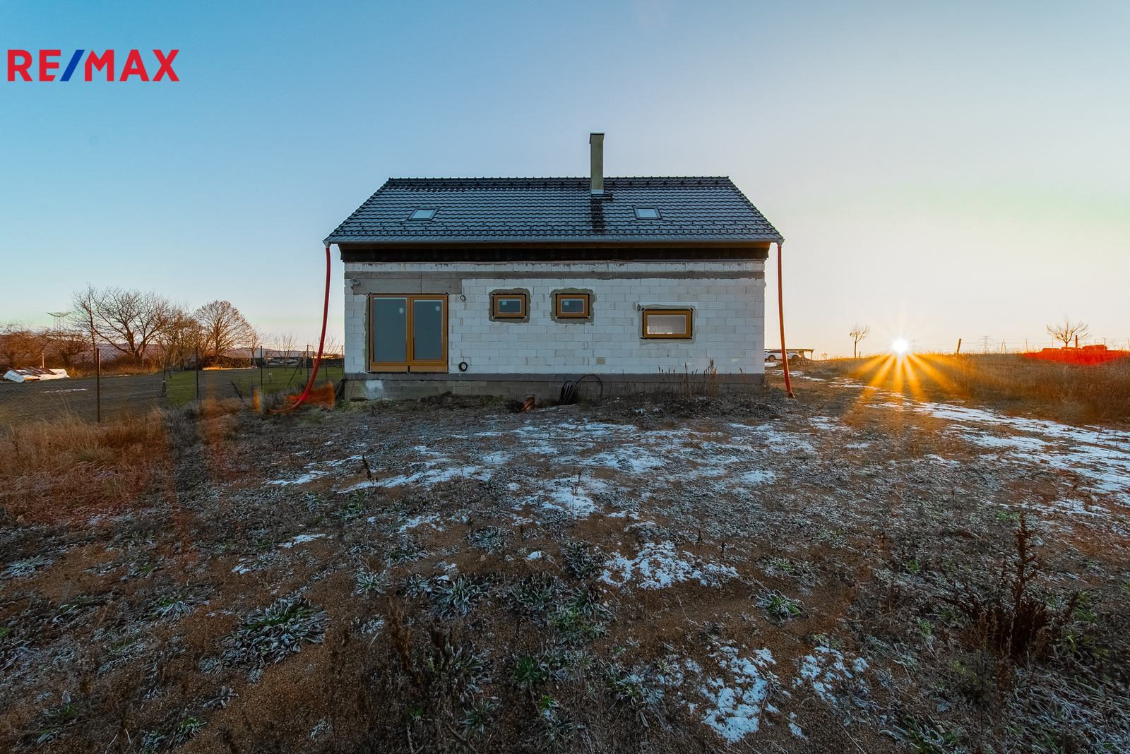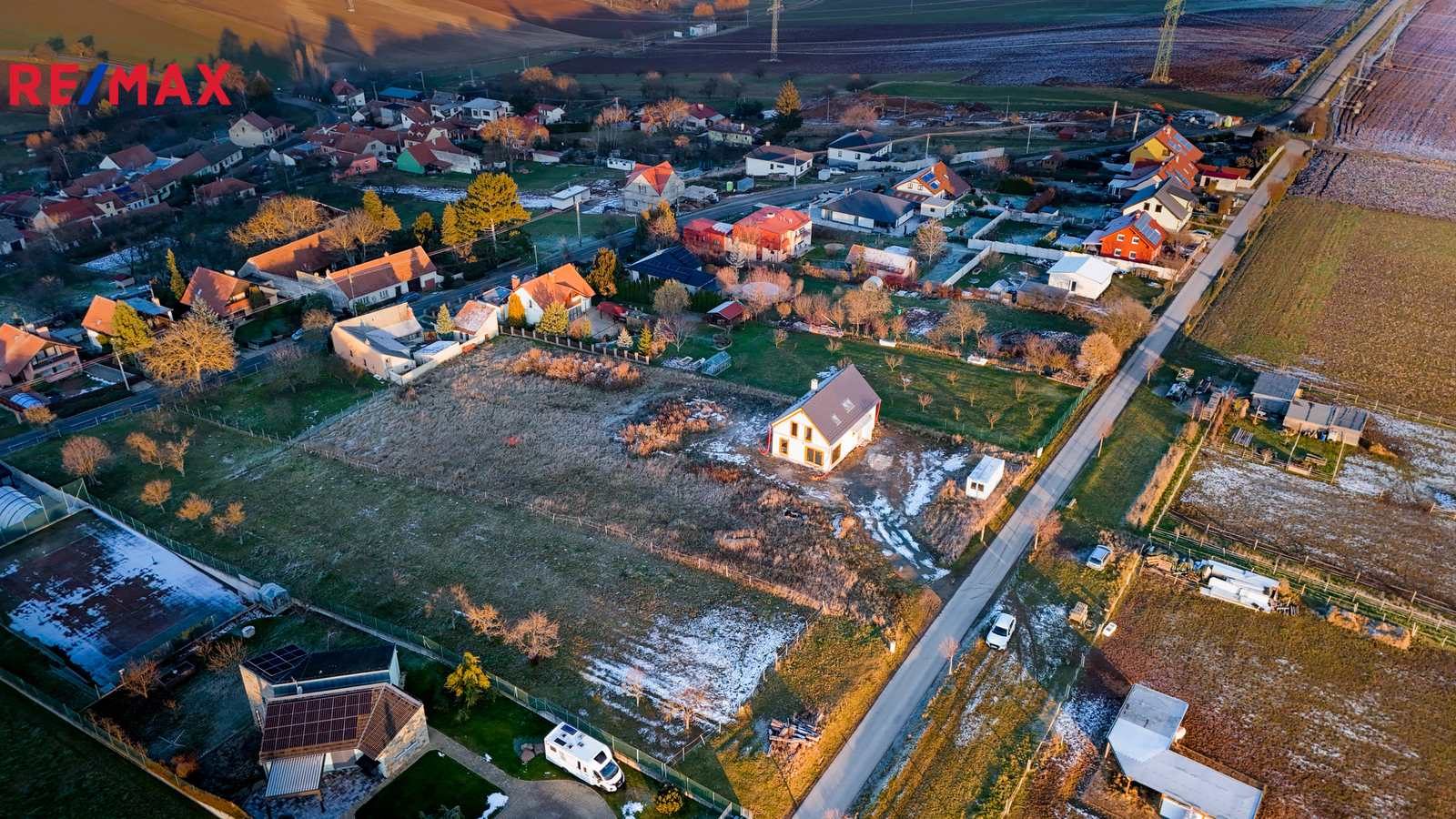 Ve výhradním zastoupení majitele nabízíme ke koupi pozemek o výměře 2068m2, jehož součástí je hrubá stavba rodinného domu o dispozici 5+1 s užitnou plochou 155,6m2 a platným stavebním povolením. Na webových stránkách nemovitosti je Vám k dispozici veškerá projektová dokumentace. Realizační firma nabízí novému majiteli možnost dokončení za původních podmínek. Pozemek má uliční šíři velkorysých 22m. Dalším benefitem této parcely je 50% zastavitelnost, což umožňuje komfortní návrh okolí domu i zahrady přesně podle vašich představ.