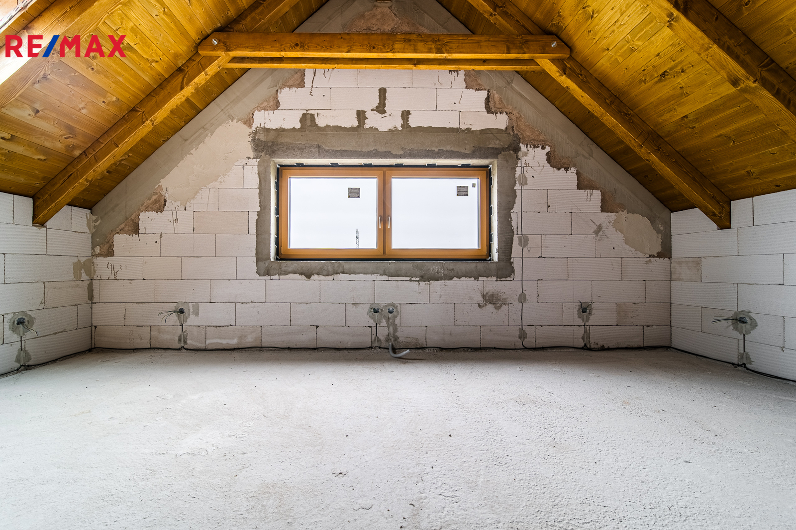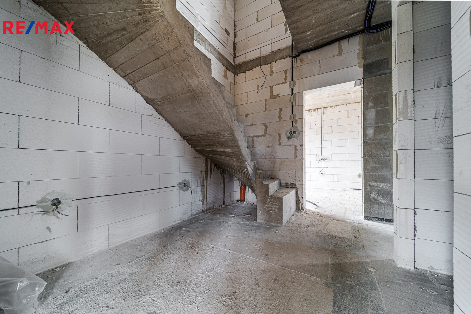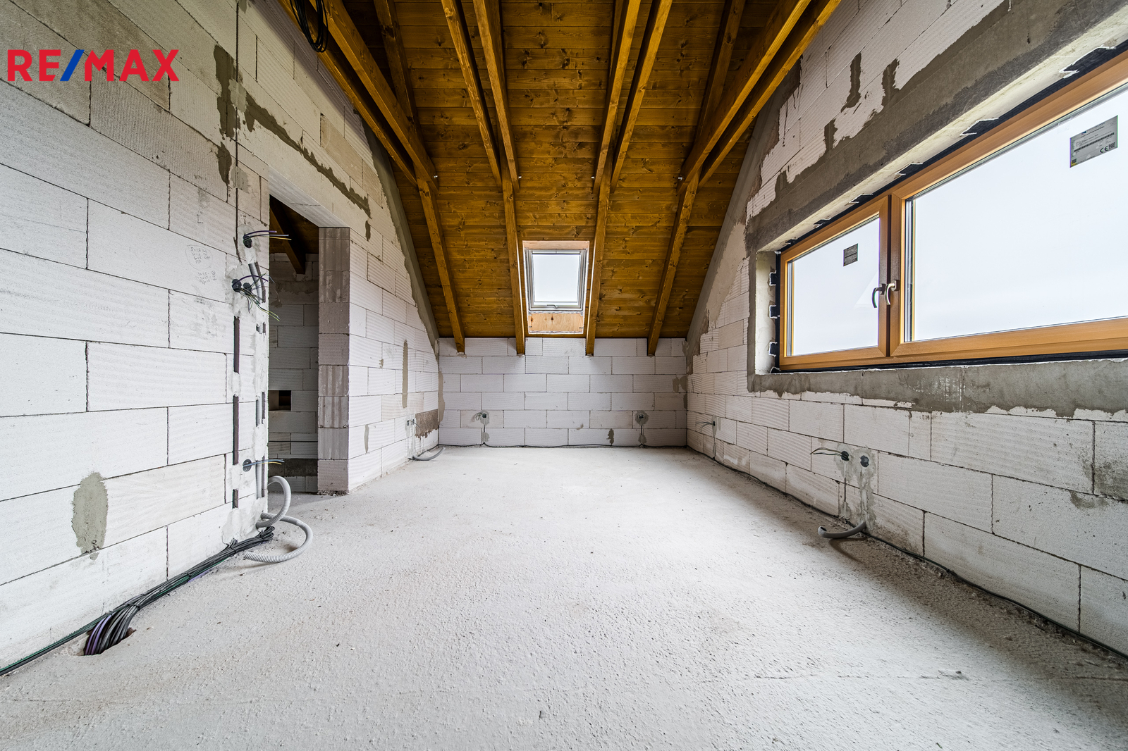 Ve výhradním zastoupení majitele nabízíme ke koupi pozemek o výměře 2068m2, jehož součástí je hrubá stavba rodinného domu o dispozici 5+1 s užitnou plochou 155,6m2 a platným stavebním povolením. Na webových stránkách nemovitosti je Vám k dispozici veškerá projektová dokumentace. Realizační firma nabízí novému majiteli možnost dokončení za původních podmínek. Pozemek má uliční šíři velkorysých 22m. Dalším benefitem této parcely je 50% zastavitelnost, což umožňuje komfortní návrh okolí domu i zahrady přesně podle vašich představ.