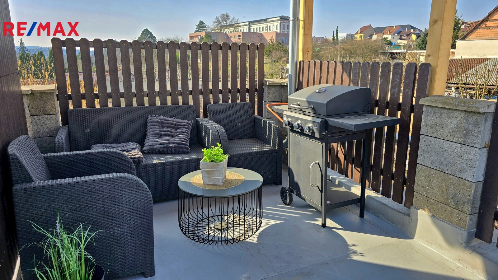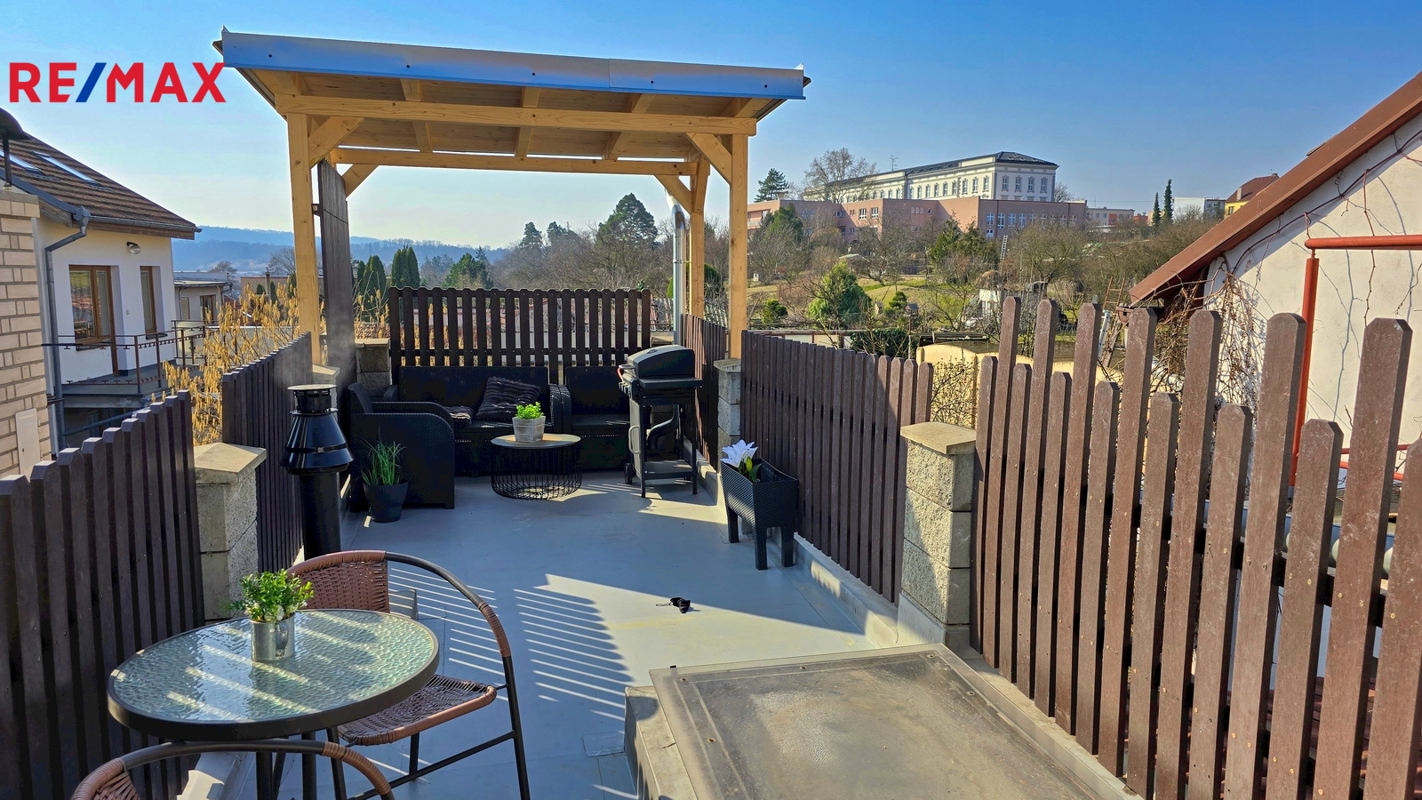 V patře se nachází útulná ložnice s přímým vstupem na terasou o velikosti 8 m², ideální pro ranní kávu i večerní odpočinek.