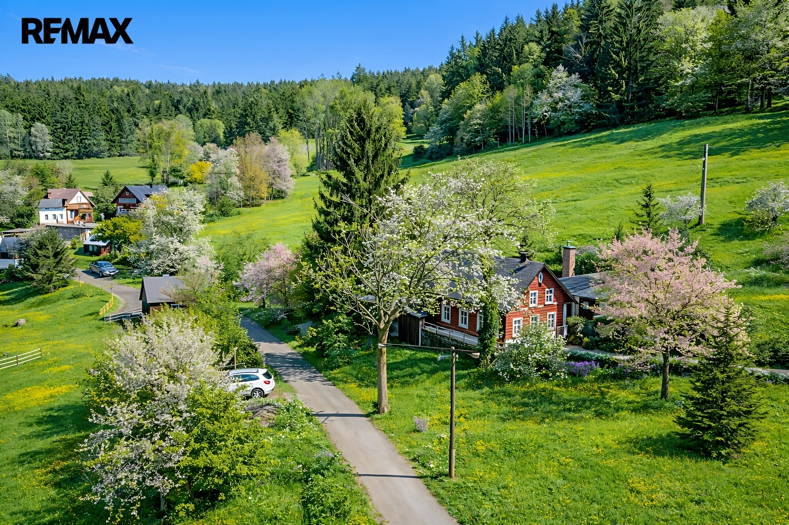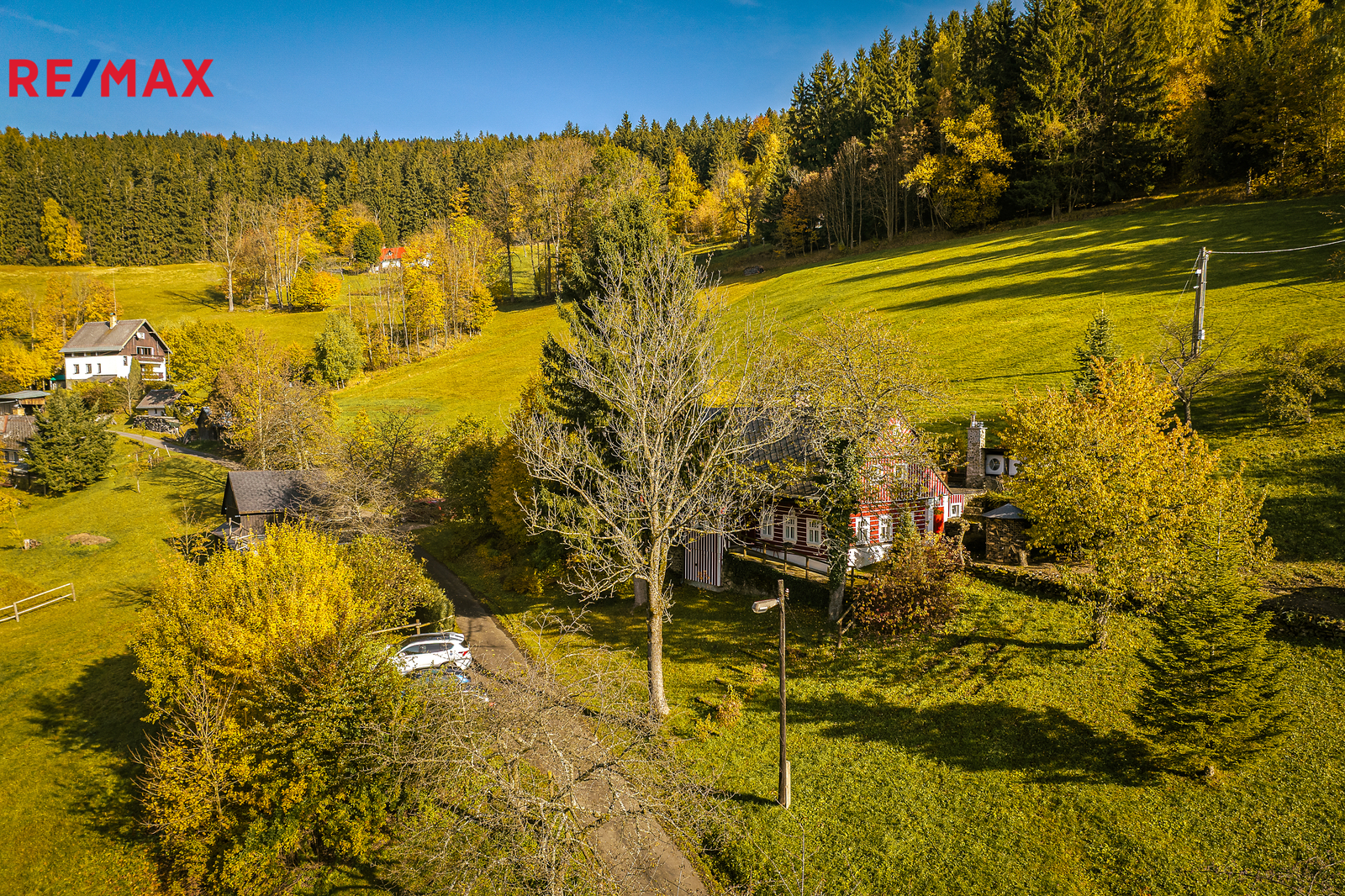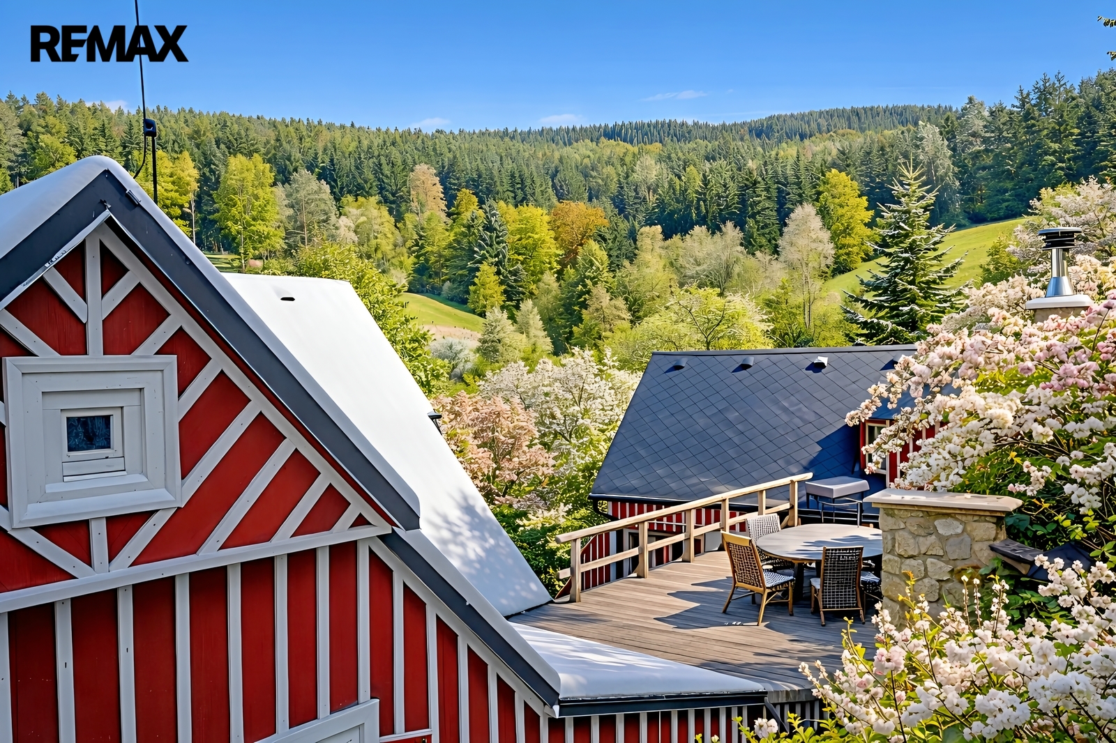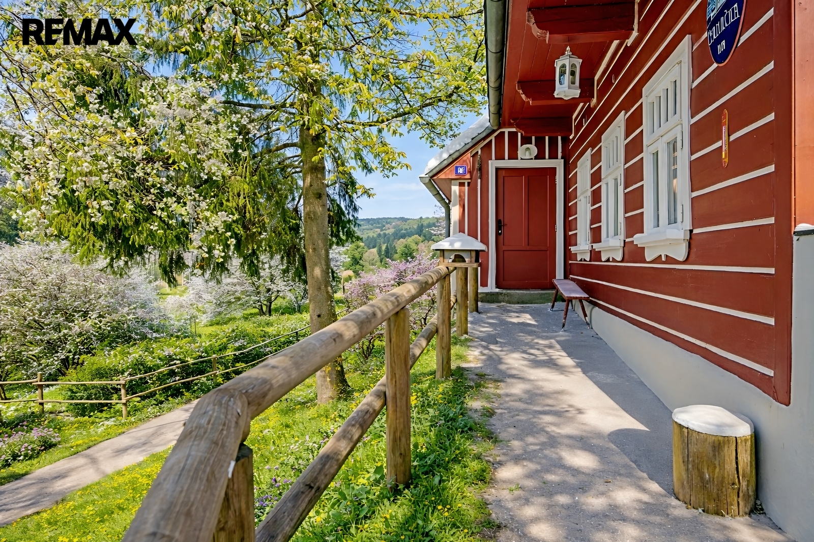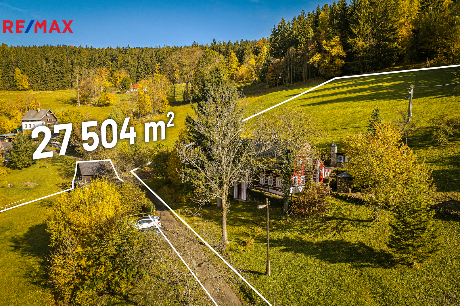 U domu se nacházejí tři venkovní terasy, hlavní je s venkovním krbem, v patře je terasa s ohništěm a třetí relaxační terasa s vířivkou HotSpring. Součástí je garáž pro 4 vozy. Chalupu obklopuje pozemek o velikosti 27.504m2, jedná se o jedno z nejzachovalejších krkonošských údolí, kde naleznete pouze původní chalupy a klid. Nemovitost stojí v klidné neprůjezdné části obce Horní Dušnice obklopená lesy a loukami. Nejbližší lyžařské středisko je Horní Rokytnice, kde se nově buduje nový špičkový lyžařský areál, přes kopec se nachází lokalita Vítkovice s nočním lyžováním a možností SkiAlpy přímo od chalupy.