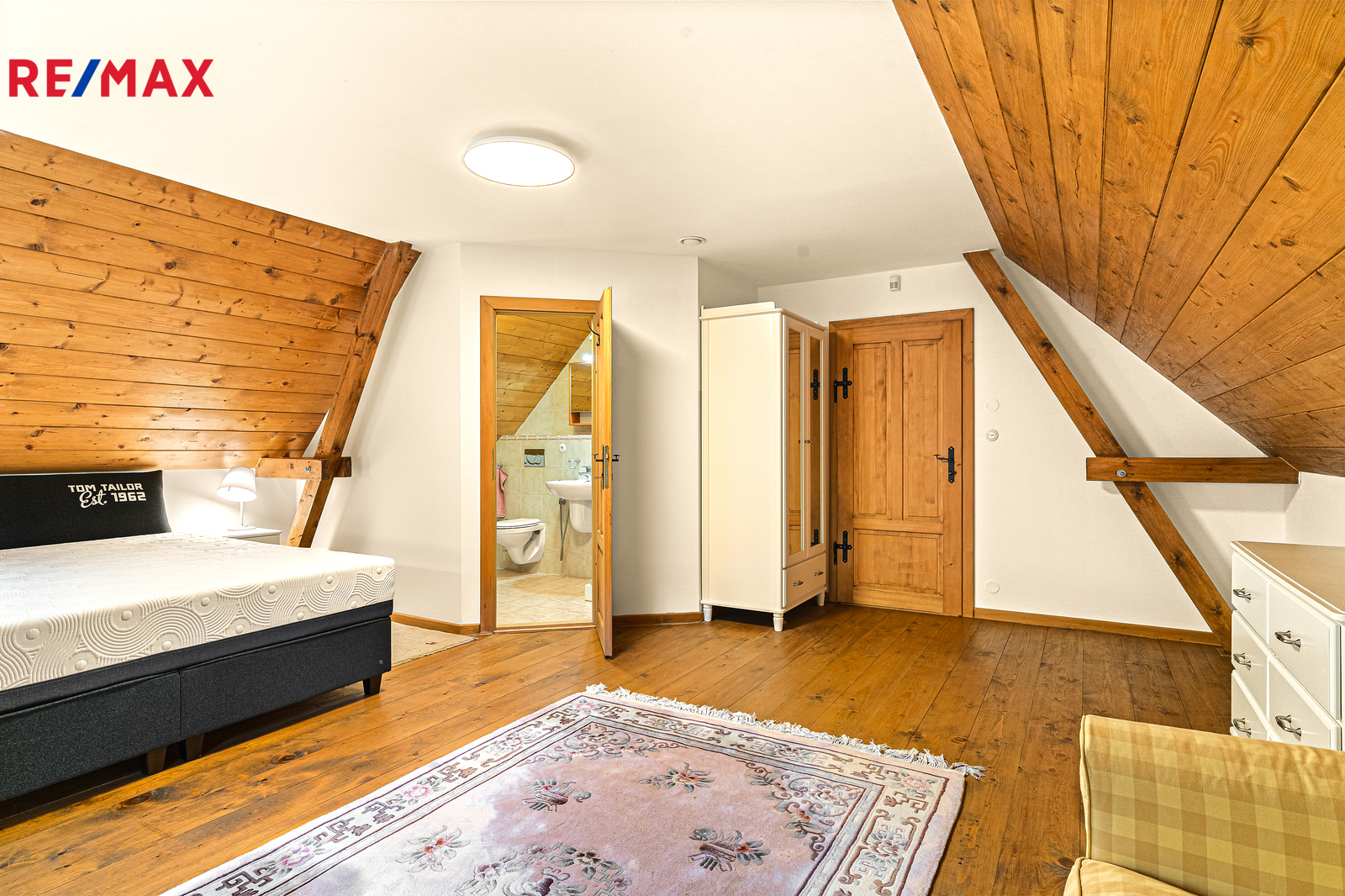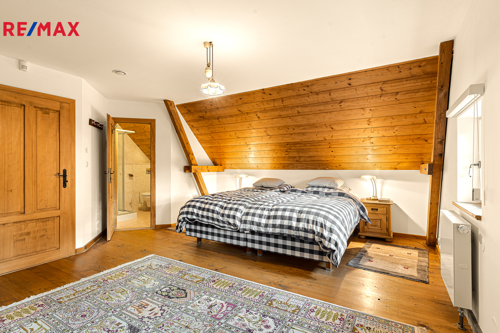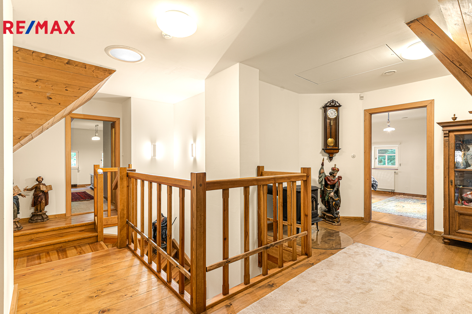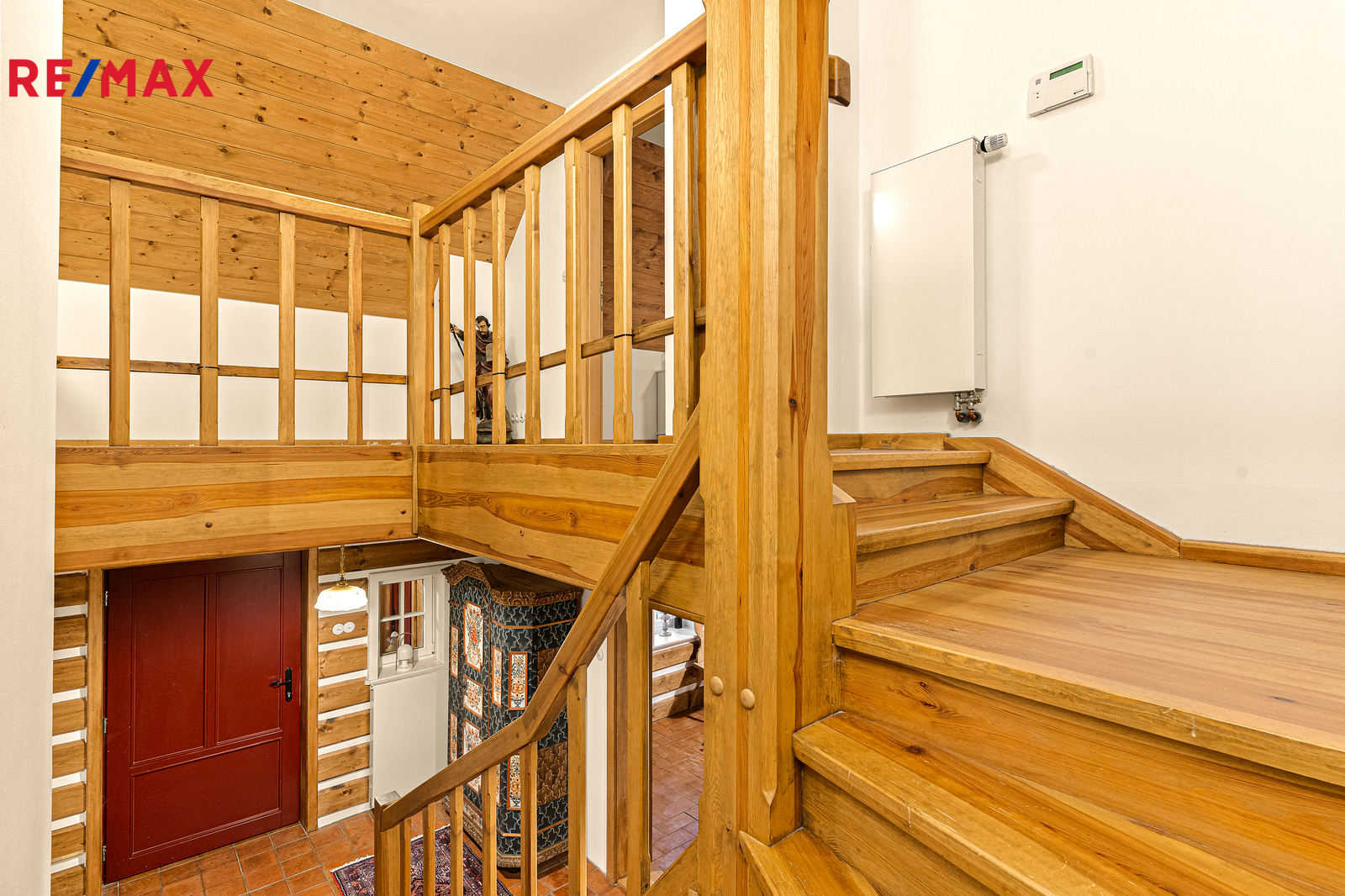 Dominantou hlavní chodby chalupy je masivní dubové schodiště, v patře nad hlavní částí chalupy se nacházejí tři samostatné ložnice s vlastní koupenou. Dispozice chalupy tímto zajišťuje dostatek soukromí pro vícečlennou rodinu nebo početnější návštěvu. V interiéru naleznete řadu originálních i rekonstruovaných prvků tradičního krkonošského nábytku, které dodávají chalupě jedinečný charakter. Chalupa byla rekonstruovaná v roce 2006, s důrazem na kvalitu materiálů a dlouhodobou životnost. Měděné rozvody podlahového vytápění Rehau, speciální střešní krytina Capacco, designové vypínače a zásuvky Berker, dveřní kování ruční výroby. Vytápění zajišťují dvě tepelná čerpadla Stiebel Eltron, nechybí ani kotel na dřevo či možnost využít plyn (2t zásobník propan-butan). V chalupě jsou dvě rekuperace, dvě klimatizace Haier, bezpečností kamerový systém a vysokorychlostní DSL internet. Součástí komfortního vybavení je chytrý systém vytápění s možností dálkového ovládání přes internet.