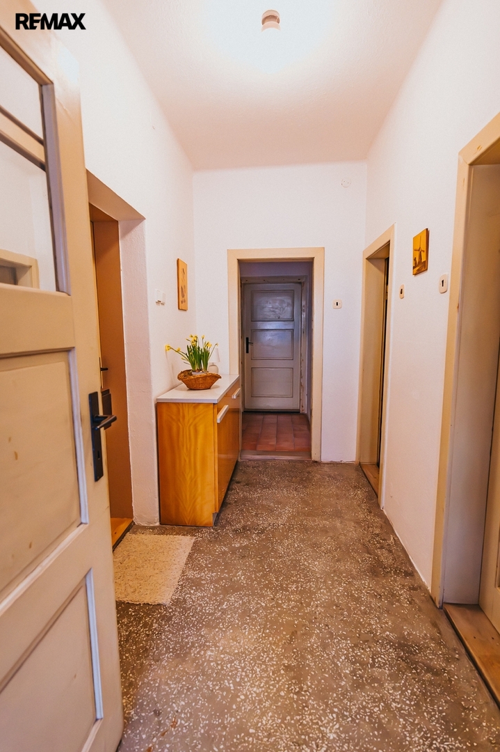 Dům je částečně podsklepen — sklep, kde dřív zimovaly brambory a jablka. Průjezd pojme až dvě auta, sekačku i všechno, co k zahradě patří. Dílna schová všechno nářadí a je prostor pro vaše tvoření, a samozřejmě nechybí 3fázová elektřina pro cirkulárku i další stroje.