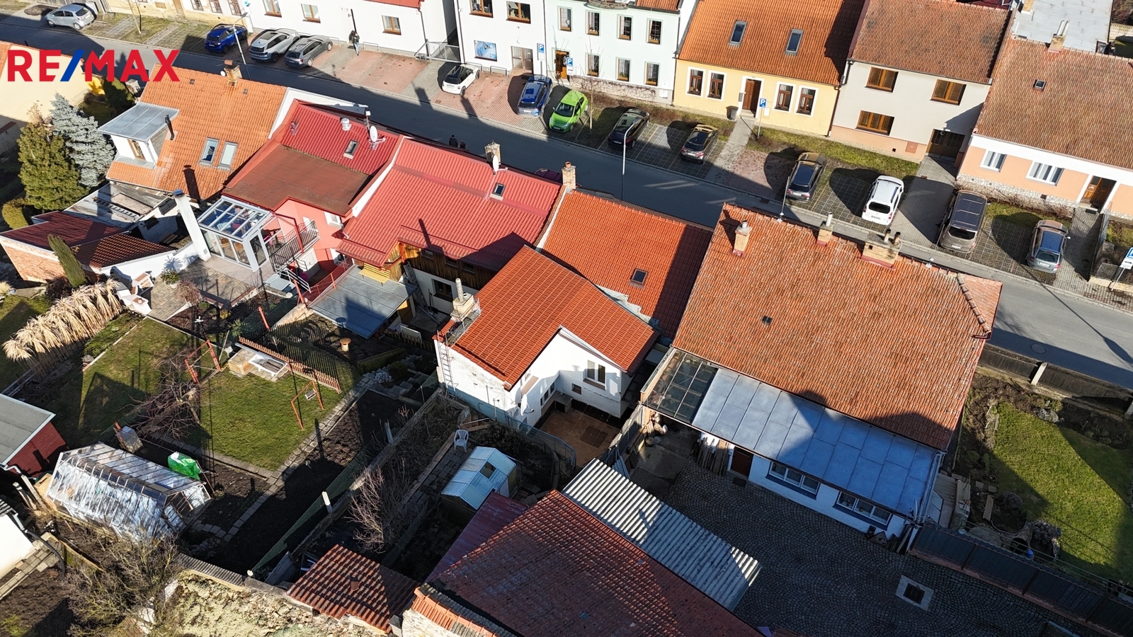 V přízemí domu se nachází 2 pokoje, kuchyň, spíž, koupelna a samostatné WC. Vchod do domu vede z ulice přes prostorná velká vrata, za kterými se nachází průjezd. V přední části průjezdu je možné parkování menšího vozidla, zadní část nabízí chodbu s úložným prostorem. Z průjezdu jsou pak dveře do domu a výstup na dvorek a zahradu.