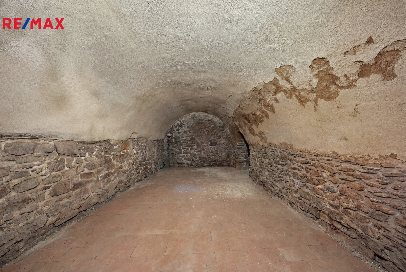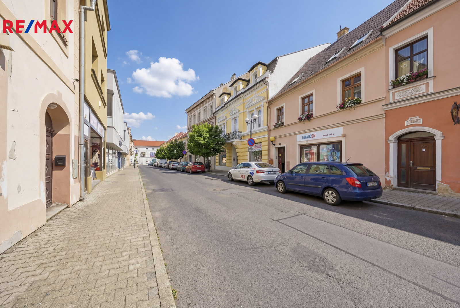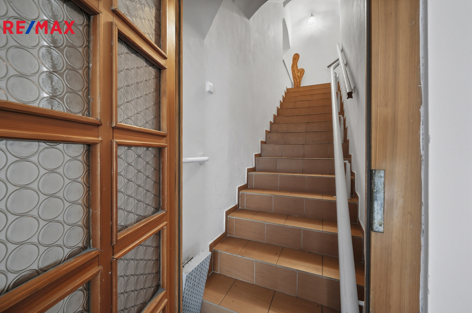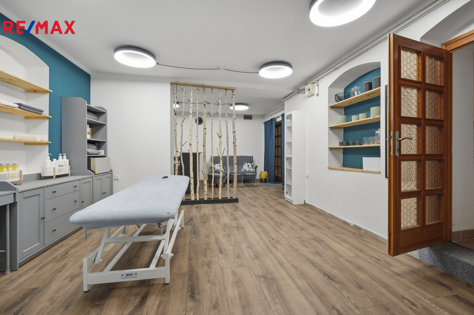 Přízemí domu je koncipováno jako funkční obchodní zóna o celkové výměře 80 m2. Po pravé straně od vstupu se nachází zavedená a aktuálně pronajatá trafika o ploše 24 m2, za níž se nachází moderní masážní salon. Ten disponuje prostornou recepcí, klimatizační jednotkou, vlastním zázemím a přímým vstupem do klidné zahrady. Skutečným pokladem je pak částečné podsklepení o rozloze 53 m2, kde historické klenby přímo vybízejí k vybudování stylového vinného sklípku, popř. skladovacích prostor. Obytná část domu se rozkládá v horních patrech a poskytuje tak dostatečný komfort pro vlastní bydlení i pronájem. Ve druhém podlaží naleznete světlý byt 2+1 s terasou a plně vybavenou kuchyní, koupelnou s vanou a samostatnou toaletou. A po pravé straně byt 1+1 s prostorným obývacím pokojem, vybavenou kuchyní do L, koupelnou se sprchovým koutem a samostatnou toaletou. Byt je propojen s třetím podlažím a nabízí tak celkem dispozici 4+1. Tento byt, který je momentálně v pronájmu, navíc disponuje další terasou. Celková podlahová plocha všech obytných částí činí úctyhodných 187 m2.
