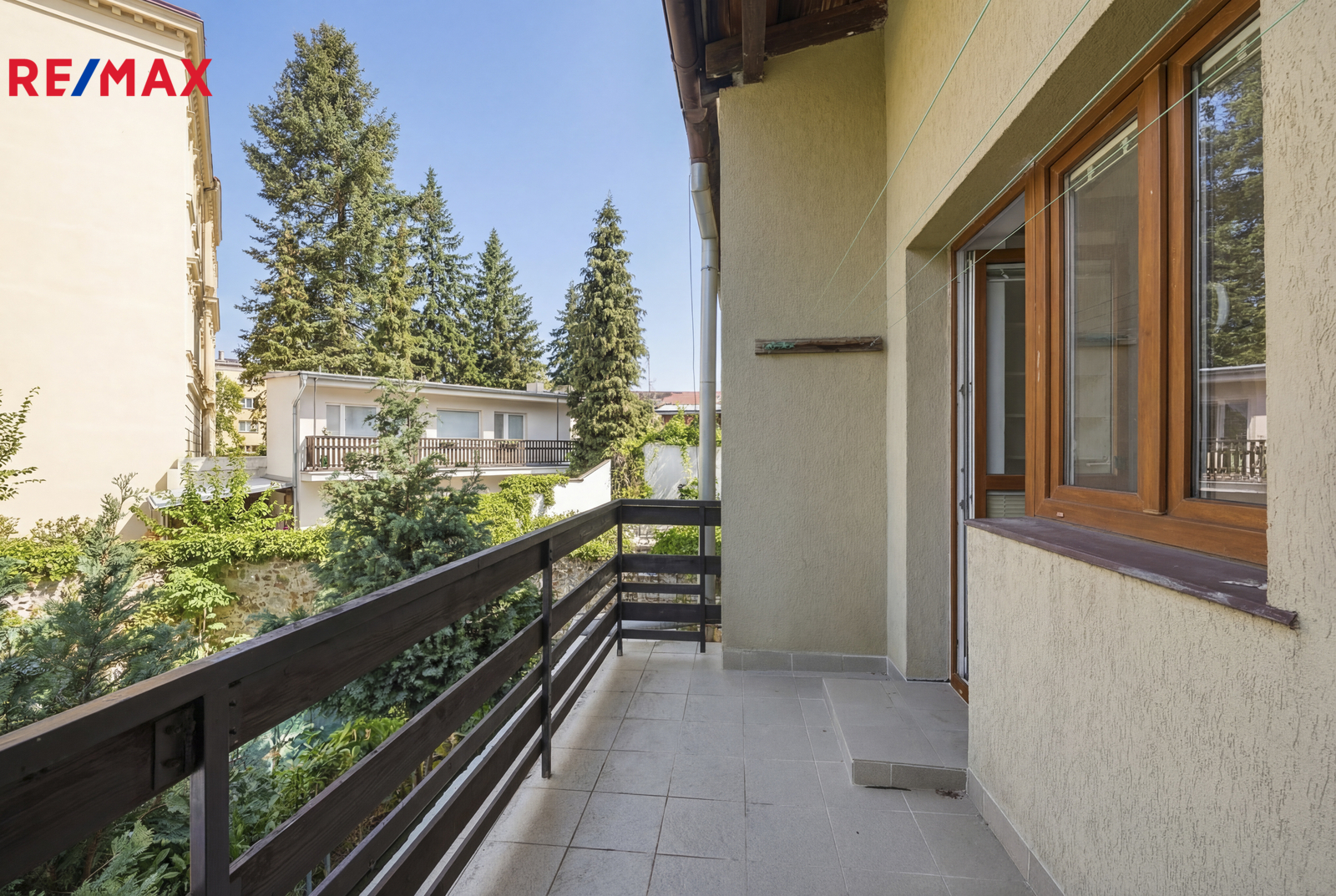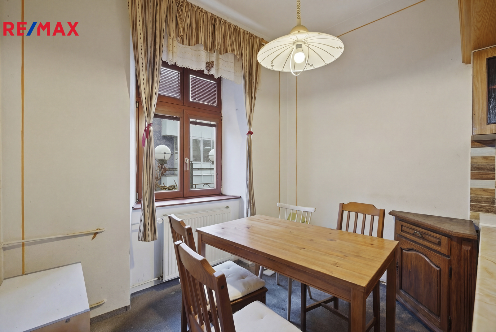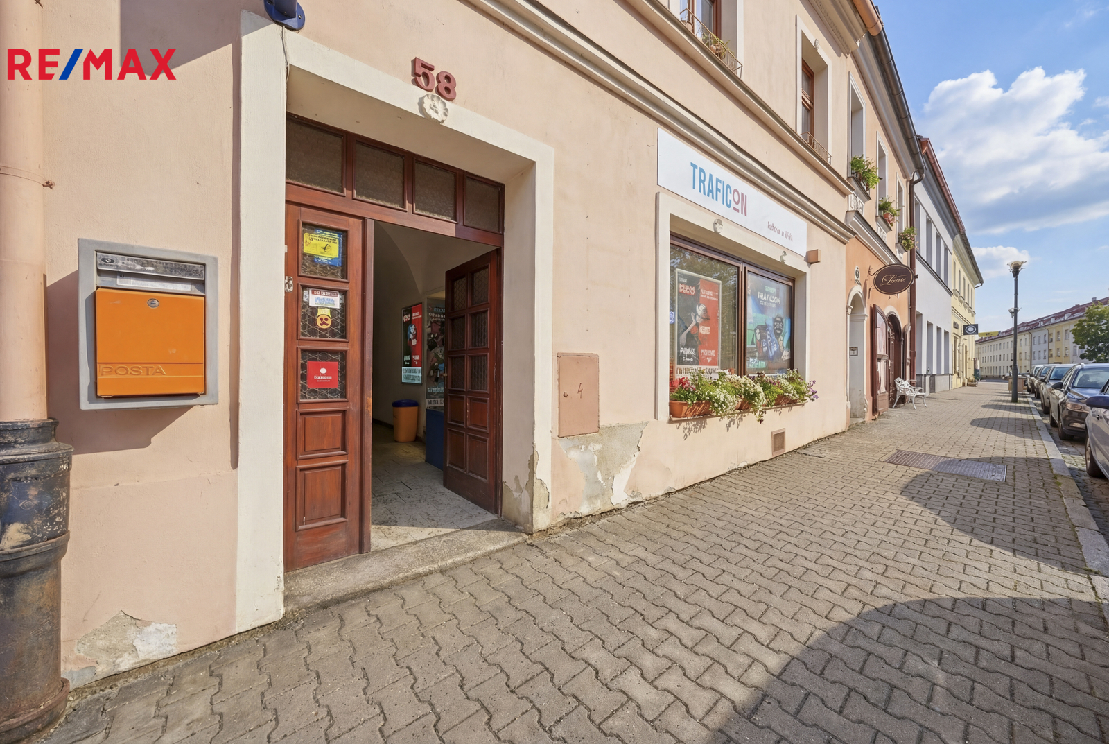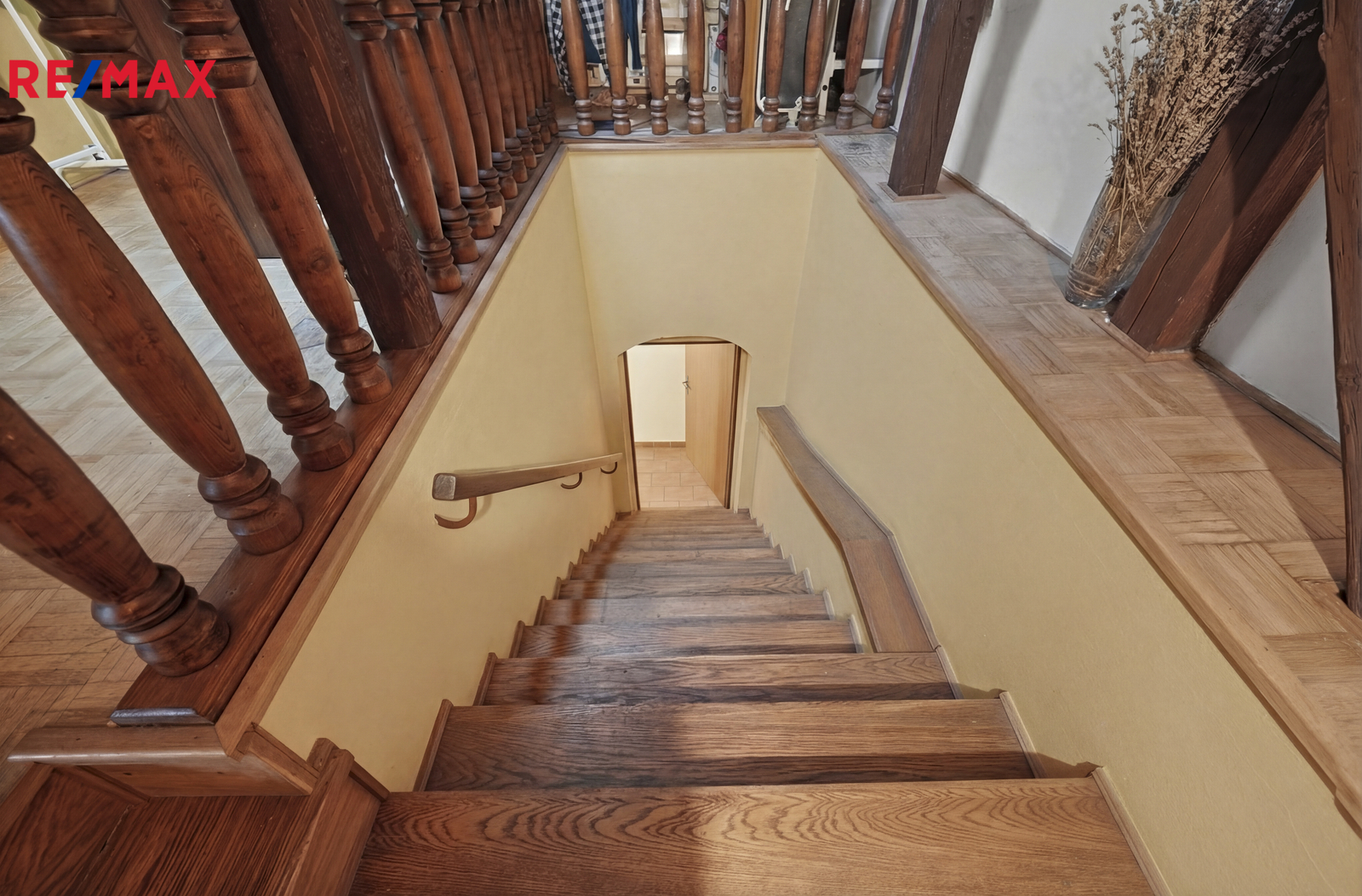 Přízemí domu je koncipováno jako funkční obchodní zóna o celkové výměře 80 m2. Po pravé straně od vstupu se nachází zavedená a aktuálně pronajatá trafika o ploše 24 m2, za níž se nachází moderní masážní salon. Ten disponuje prostornou recepcí, klimatizační jednotkou, vlastním zázemím a přímým vstupem do klidné zahrady. Skutečným pokladem je pak částečné podsklepení o rozloze 53 m2, kde historické klenby přímo vybízejí k vybudování stylového vinného sklípku, popř. skladovacích prostor. Obytná část domu se rozkládá v horních patrech a poskytuje tak dostatečný komfort pro vlastní bydlení i pronájem. Ve druhém podlaží naleznete světlý byt 2+1 s terasou a plně vybavenou kuchyní, koupelnou s vanou a samostatnou toaletou. A po pravé straně byt 1+1 s prostorným obývacím pokojem, vybavenou kuchyní do L, koupelnou se sprchovým koutem a samostatnou toaletou. Byt je propojen s třetím podlažím a nabízí tak celkem dispozici 4+1. Tento byt, který je momentálně v pronájmu, navíc disponuje další terasou. Celková podlahová plocha všech obytných částí činí úctyhodných 187 m2.