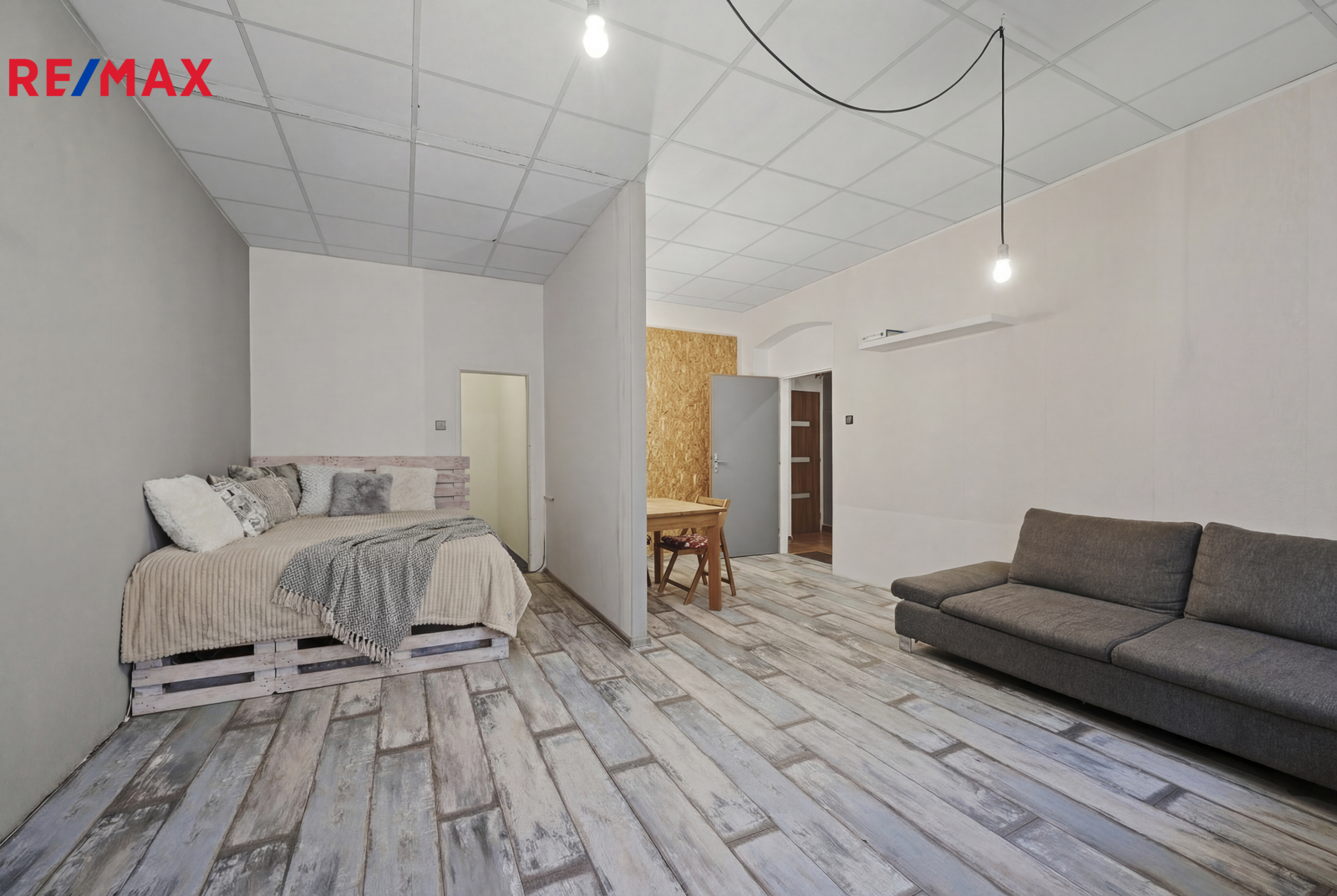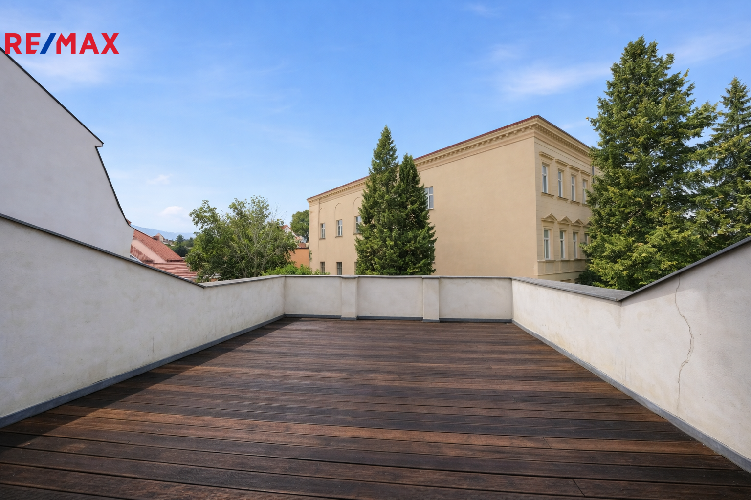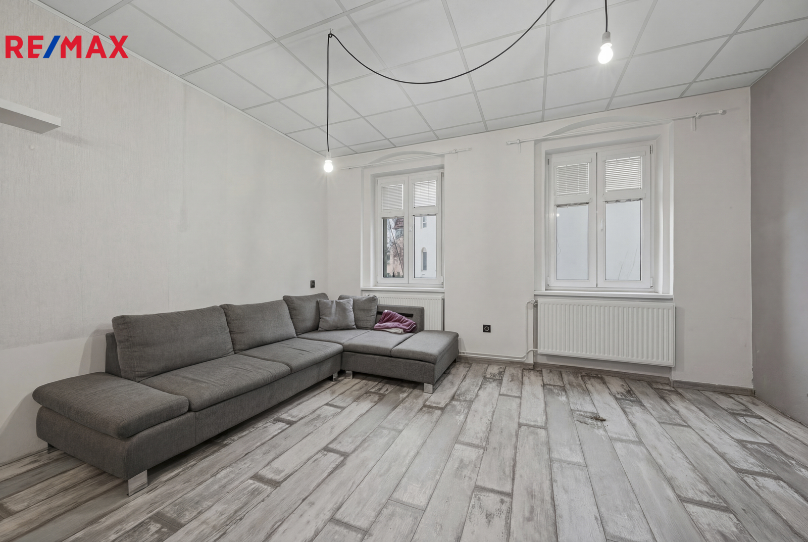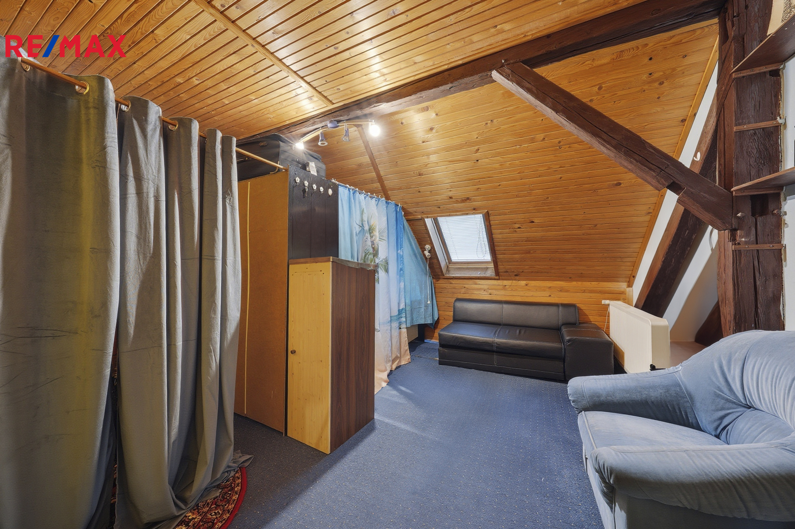 Přízemí domu je koncipováno jako funkční obchodní zóna o celkové výměře 80 m2. Po pravé straně od vstupu se nachází zavedená a aktuálně pronajatá trafika o ploše 24 m2, za níž se nachází moderní masážní salon. Ten disponuje prostornou recepcí, klimatizační jednotkou, vlastním zázemím a přímým vstupem do klidné zahrady. Skutečným pokladem je pak částečné podsklepení o rozloze 53 m2, kde historické klenby přímo vybízejí k vybudování stylového vinného sklípku, popř. skladovacích prostor. Obytná část domu se rozkládá v horních patrech a poskytuje tak dostatečný komfort pro vlastní bydlení i pronájem. Ve druhém podlaží naleznete světlý byt 2+1 s terasou a plně vybavenou kuchyní, koupelnou s vanou a samostatnou toaletou. A po pravé straně byt 1+1 s prostorným obývacím pokojem, vybavenou kuchyní do L, koupelnou se sprchovým koutem a samostatnou toaletou. Byt je propojen s třetím podlažím a nabízí tak celkem dispozici 4+1. Tento byt, který je momentálně v pronájmu, navíc disponuje další terasou. Celková podlahová plocha všech obytných částí činí úctyhodných 187 m2.
