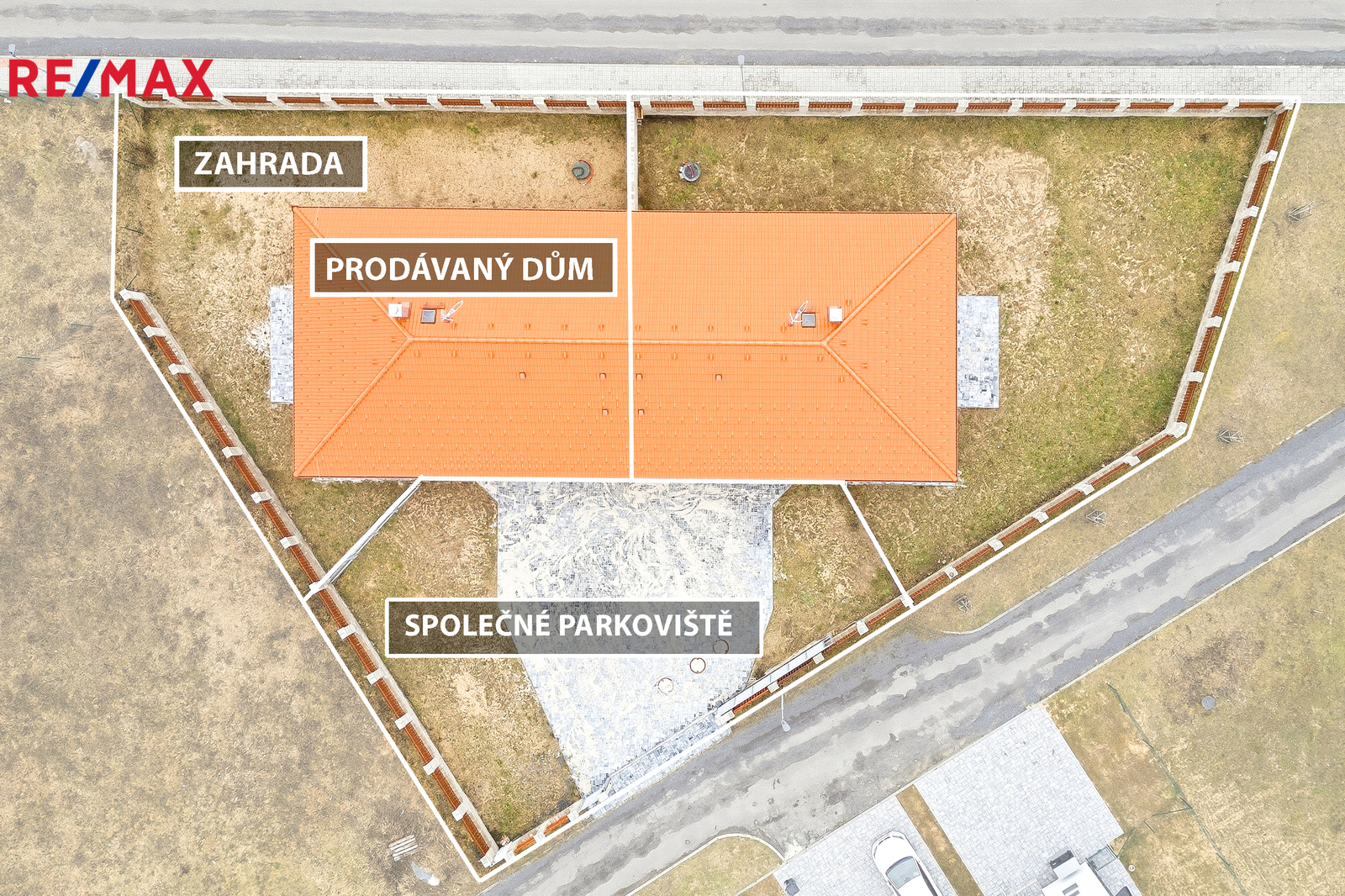 Pozemek a parkování: nové a solidní oplocení vlastního pozemku (366 m²) , zahrada s terénní úpravou + společný prostor (290 m²), pohodlné parkování s vjezdem přes automatickou bránu pro 2 auta, zámková dlažba, retenční nádrž na dešťovou vodu (4800 l)