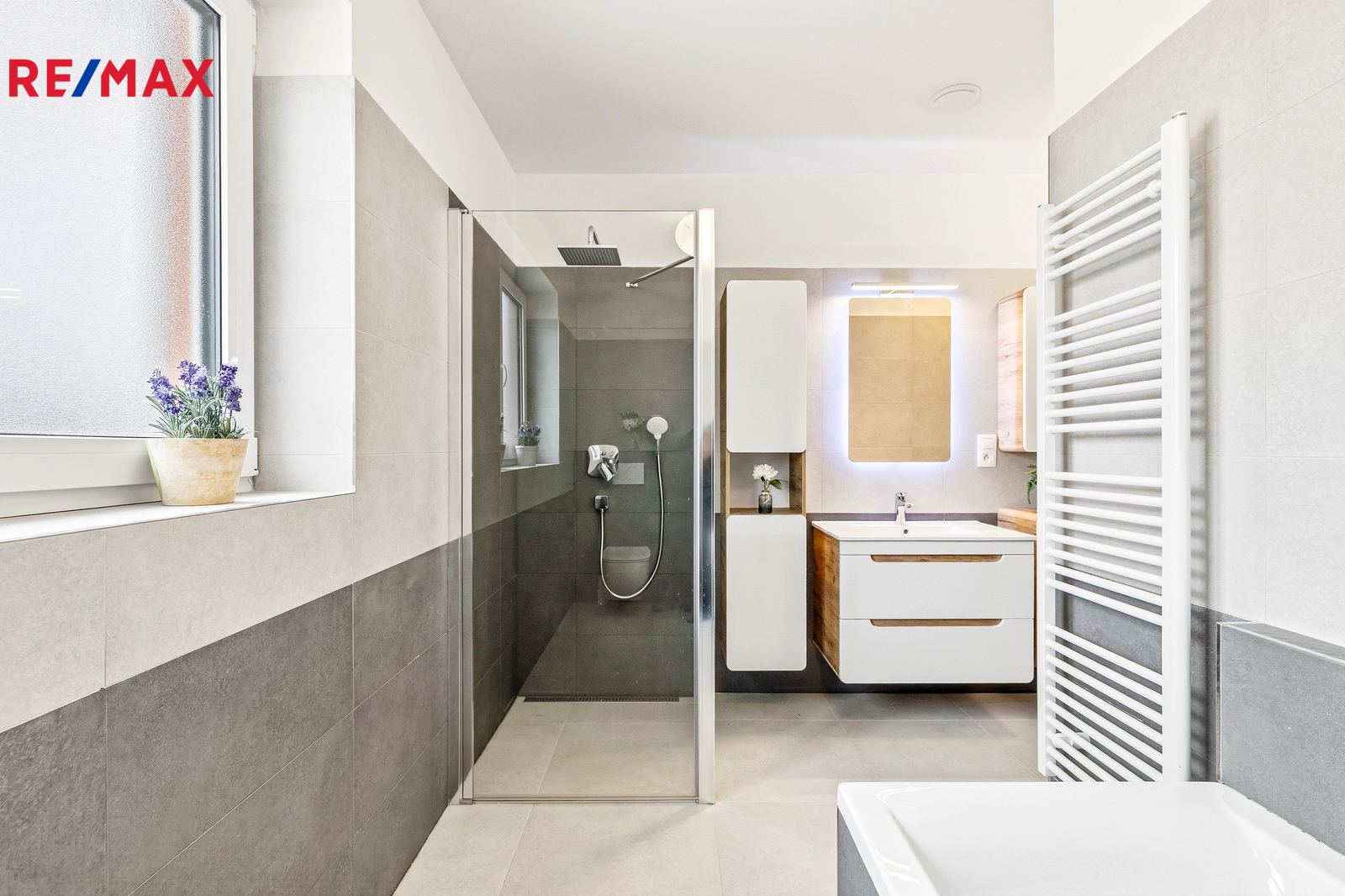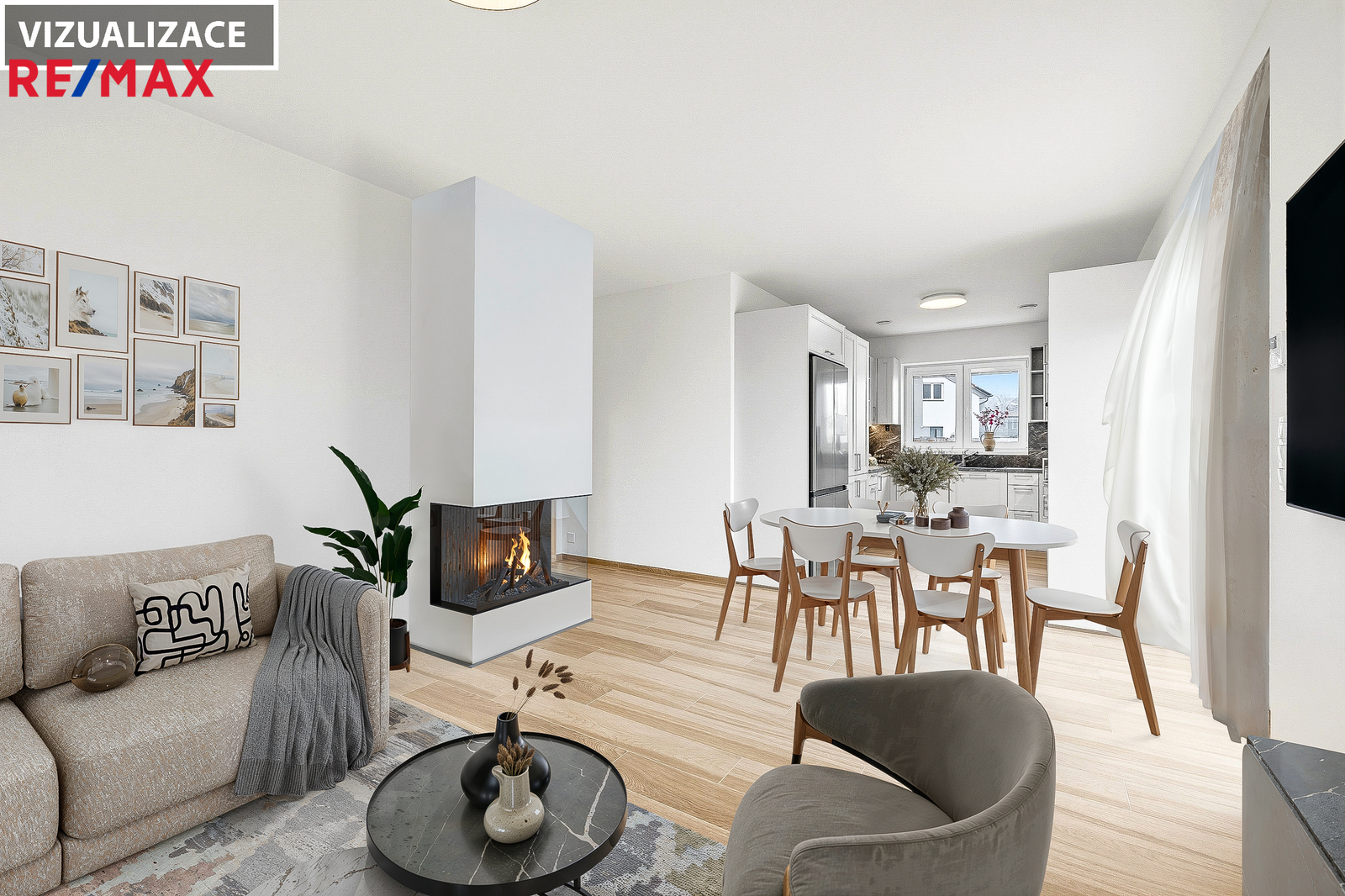Energetická úspornost (třída B): Vytápění a chlazení tepelným čerpadlem, centrální rekuperace vzduchu a klimatizace v obývacím pokoji.