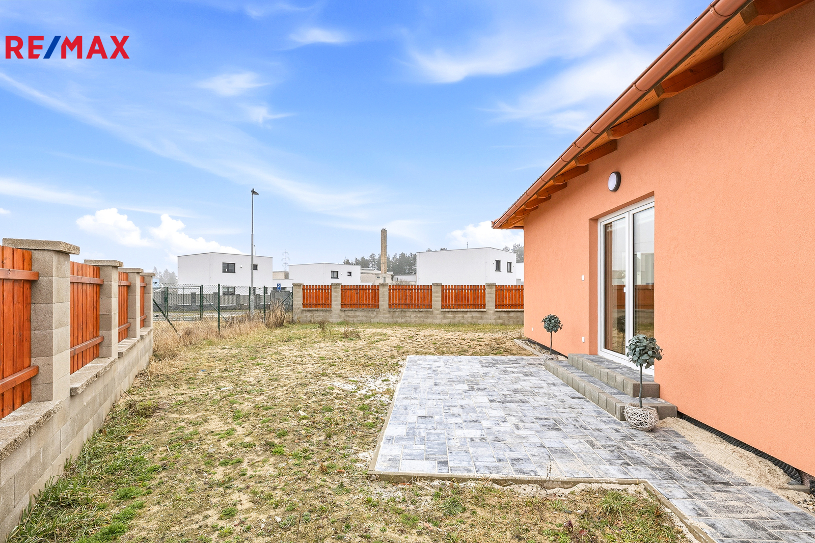 Zcela oddělená levá polovina rodinného domu s oplocenou zahradou (dům o 2 bytových jednotkách) – funkčně samostatné bydlení. Dům čerstvě zkolaudován a připraven k nastěhování.