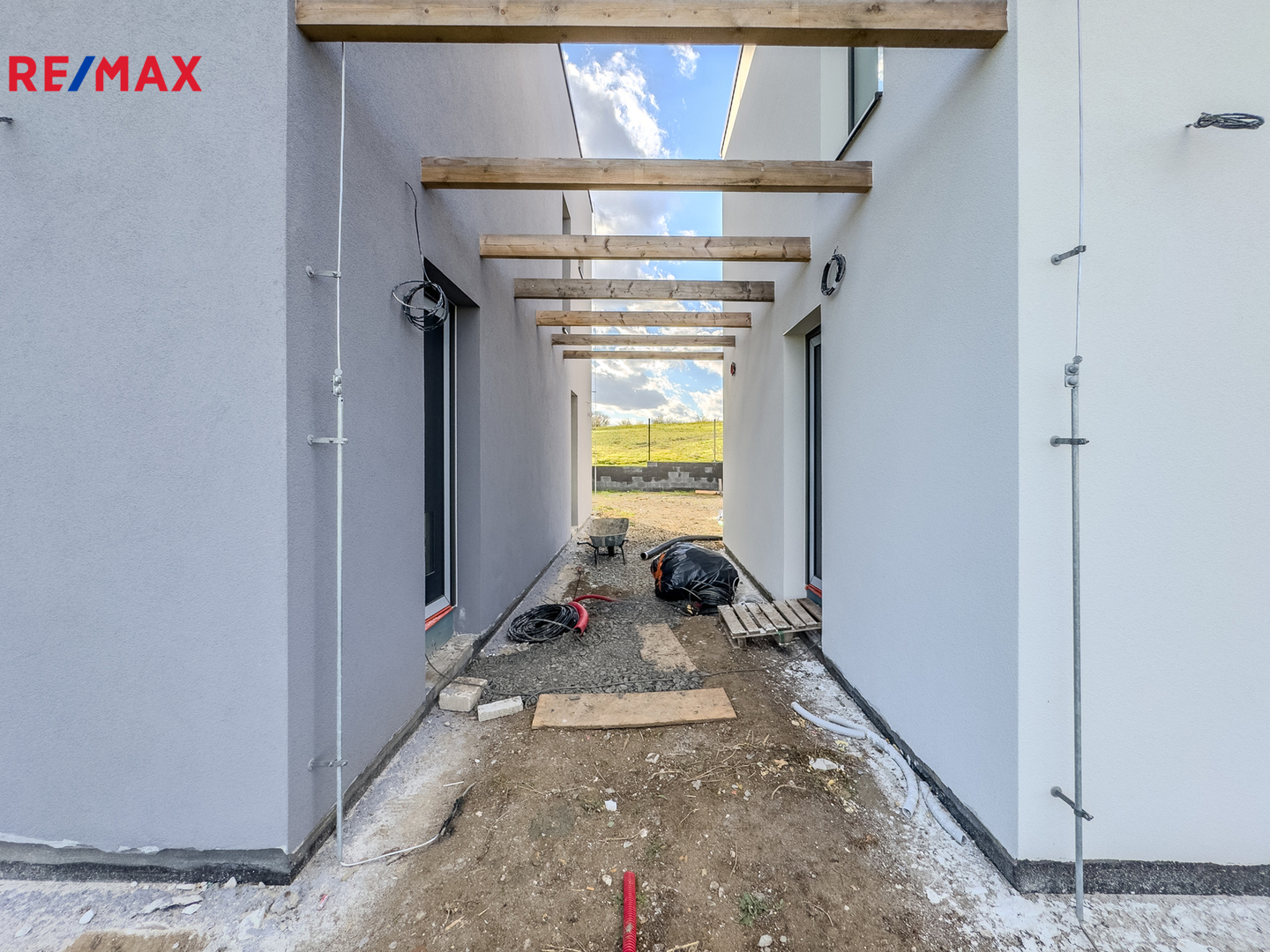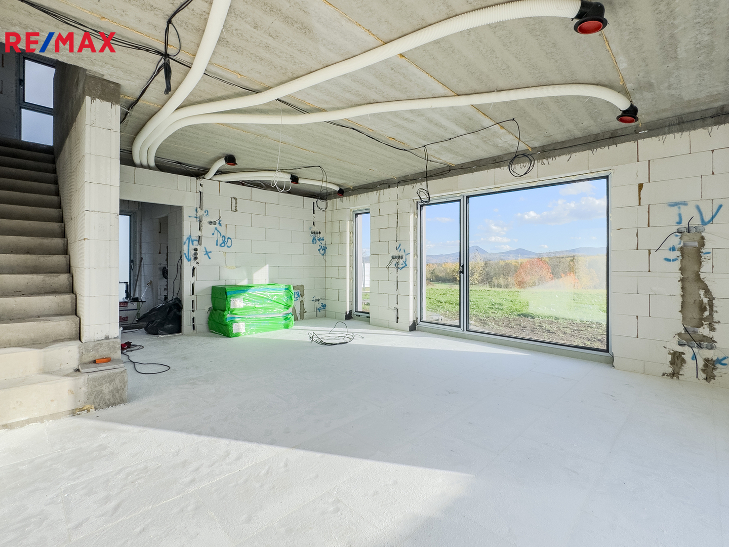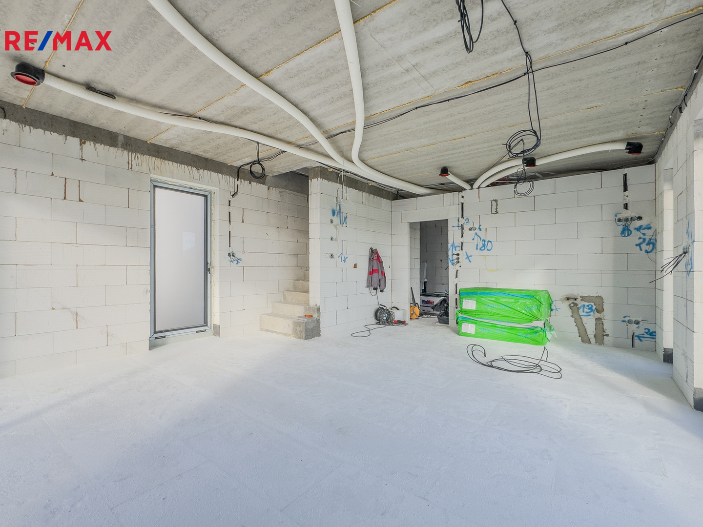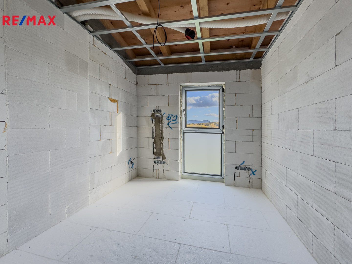 Stavba je realizována z kvalitních tvárnic Ytong a osazena okny s trojskly. O tepelný komfort se stará tepelné čerpadlo vzduch–voda s teplovodním podlahovým vytápěním, které společně s centrální rekuperační jednotkou zajišťuje příjemné klima a nízké provozní náklady po celý rok. Interiér bude dokončen ve vysokém standardu – sádrové omítky, lepené vinylové a keramické podlahy a podhledy s integrovaným LED osvětlením.