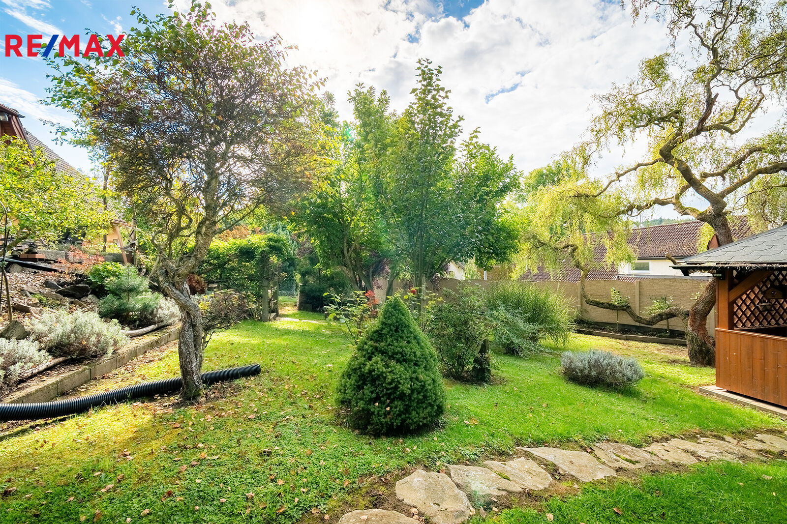 Nádherná, vzrostlá zahrada obklopující pozemek vás uchvátí a zajistí naprosté soukromí. Najdeme zde dřevěnou pergolu, kde je možno vybudovat venkovní kuchyň a nabízí tak místo ke grilování a posezení s přáteli.