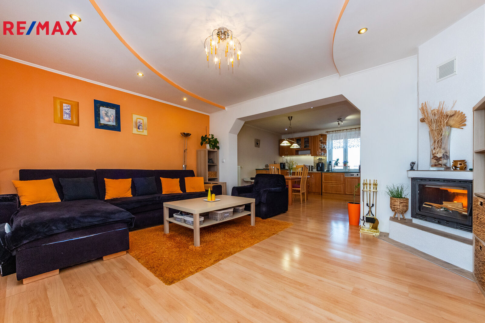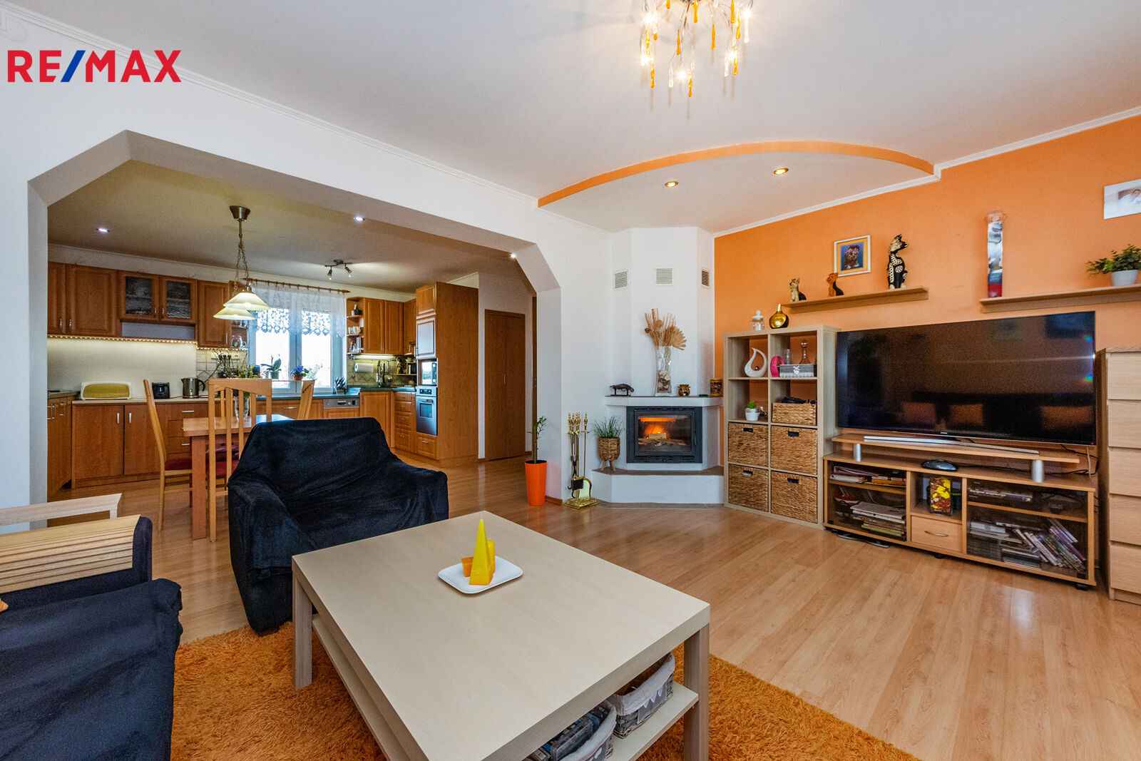 2. NP: obývací pokoj s krbovou vložkou, kuchyň s jídelnou, ložnice s vestavěnou skříní, koupelna s vanou a toaletou