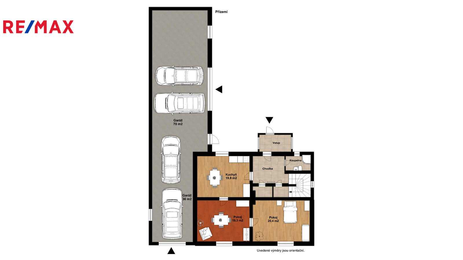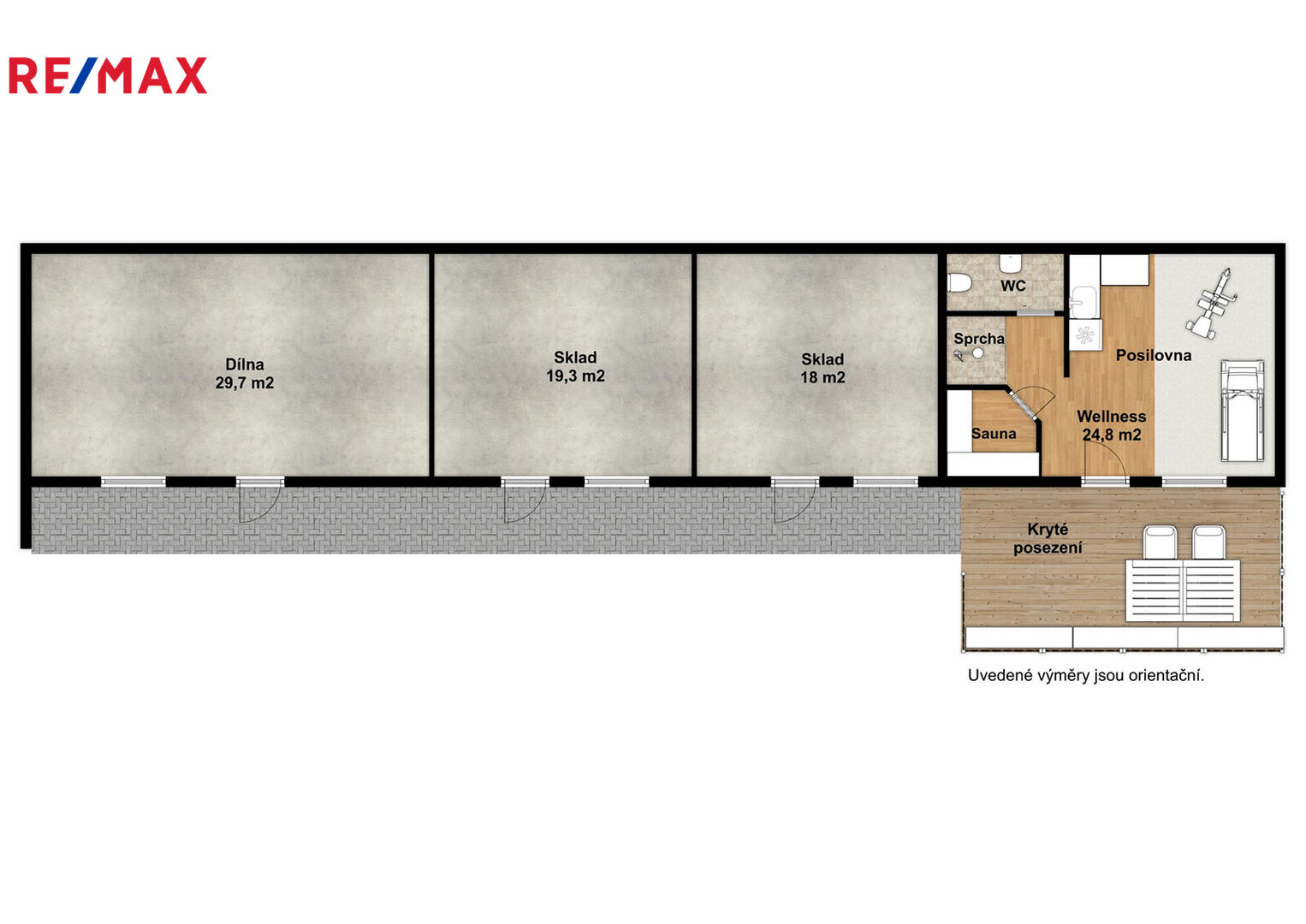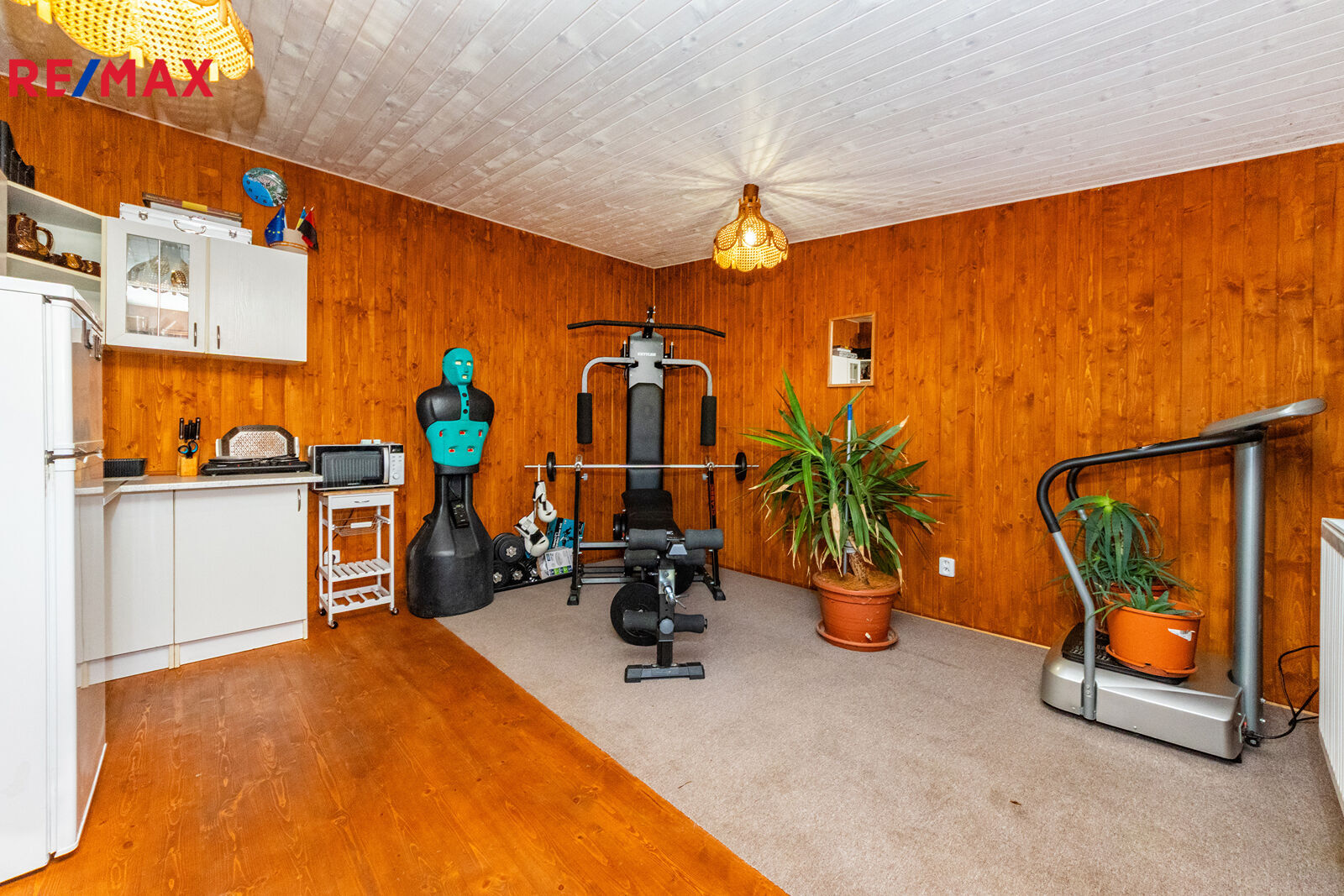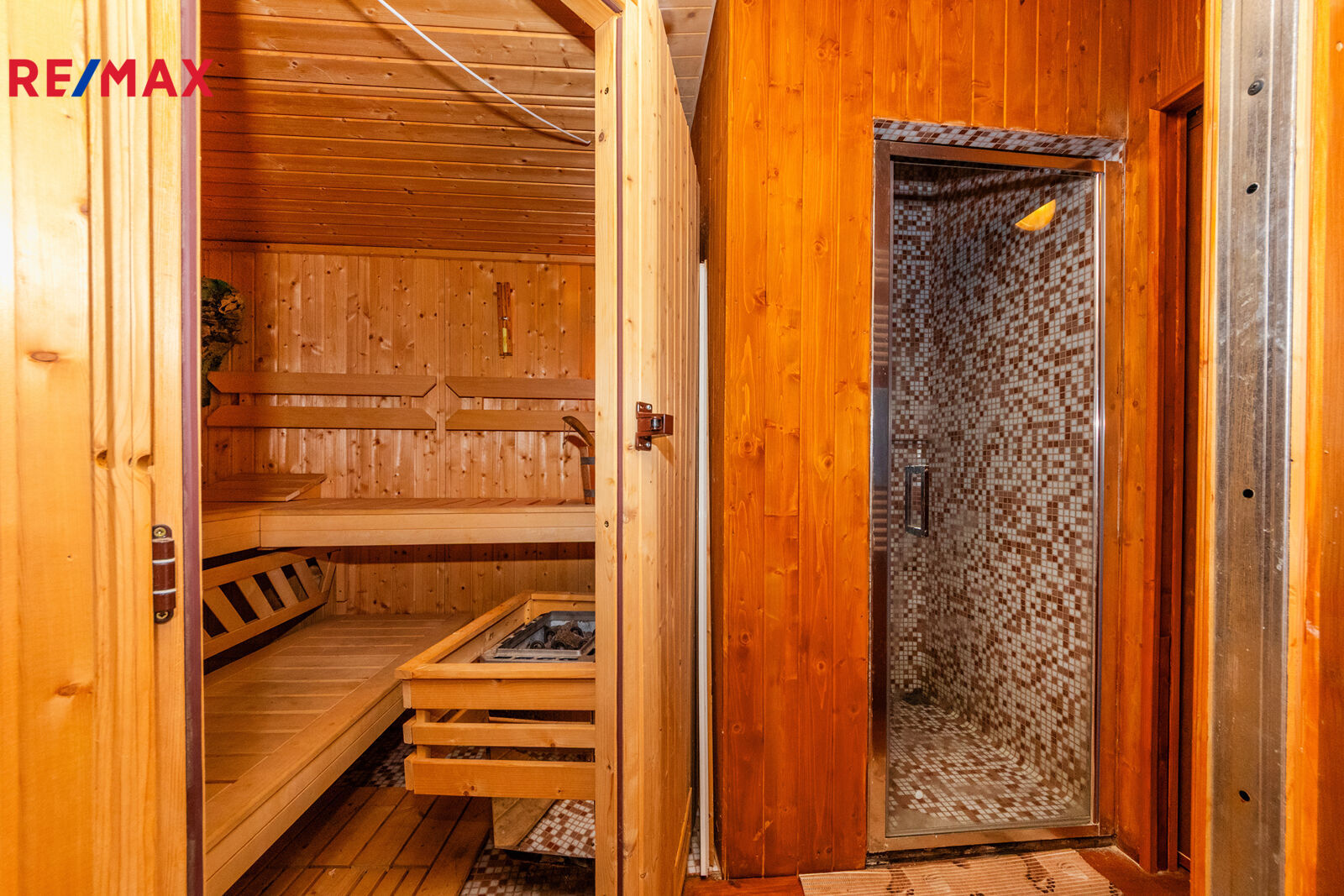 Velkým benefitem je samostatná garáž pro až 4 automobily (106 m²), dále wellness zóna se saunou a posilovnou a tři místnosti vhodné například pro krátkodobý pronájem nebo podnikání. Tato část má vlastní vytápění elektro kotlem.