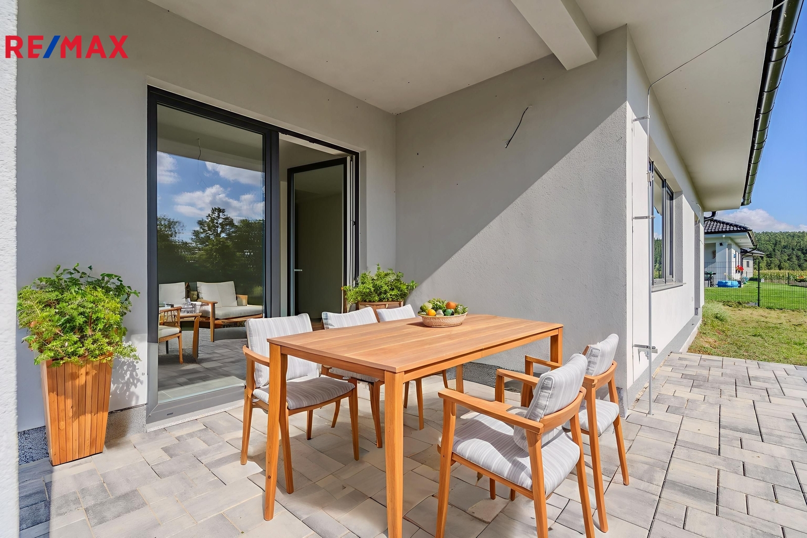 Dům má velmi krásný prostor pro obývací pokoj spojený s jídelnou a kuchyní. Velká okna na jih, z jídelny je východ přímo na terasu 36,53m2.