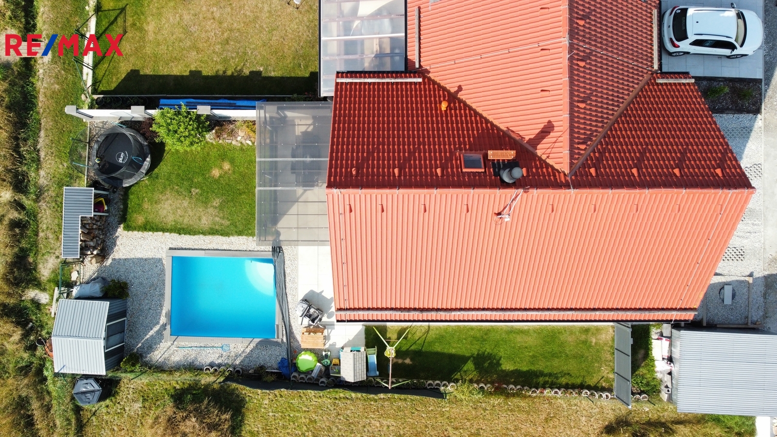 Nabízíme k prodeji prostornou bytovou jednotku o dispozici 5+kk, která je součástí novostavby rodinného domu (rok výstavby 2020). Byt se nachází ve dvou podlažích a disponuje vlastní zahradou, terasou, venkovním bazénem a parkovacím stáním.